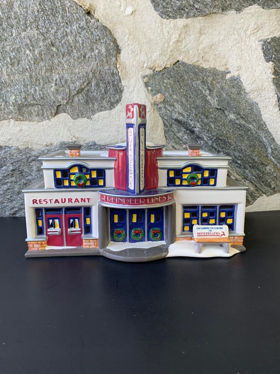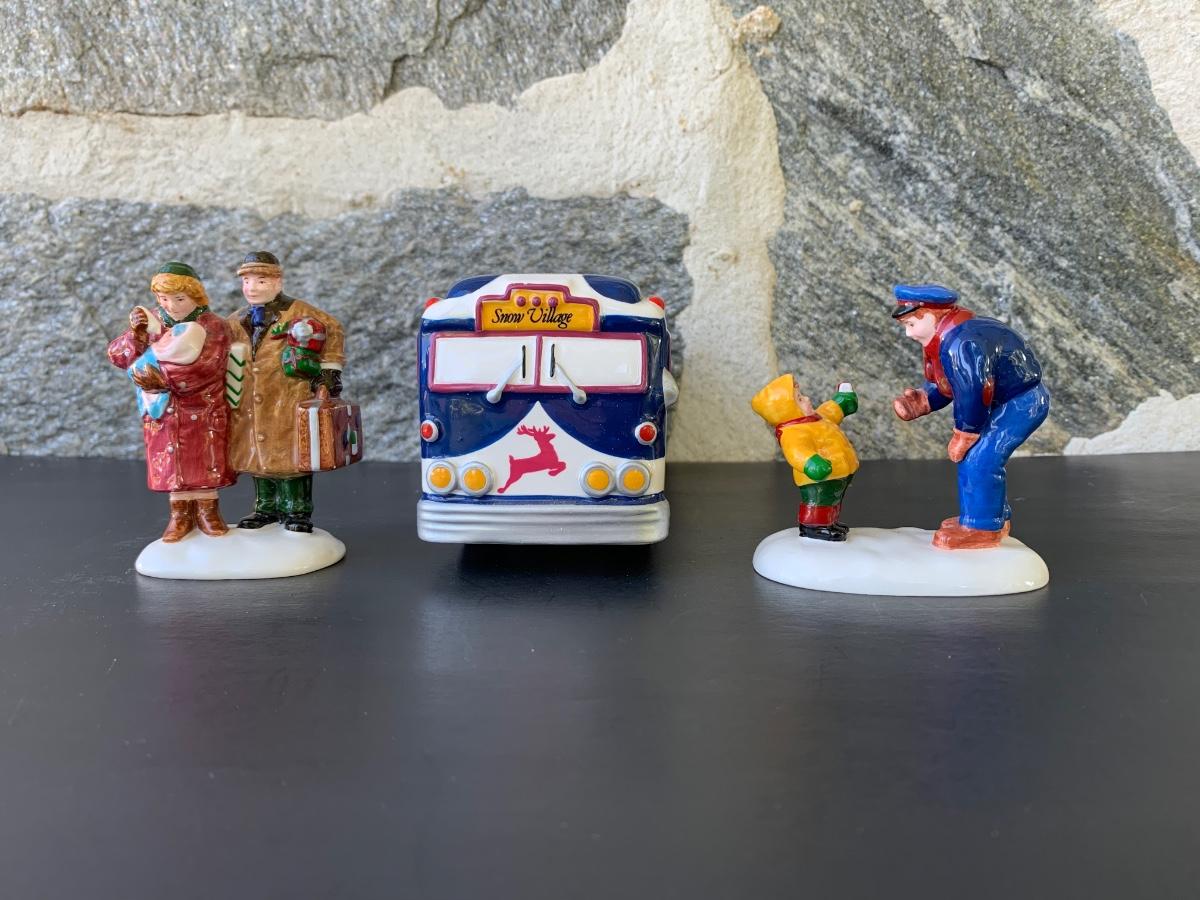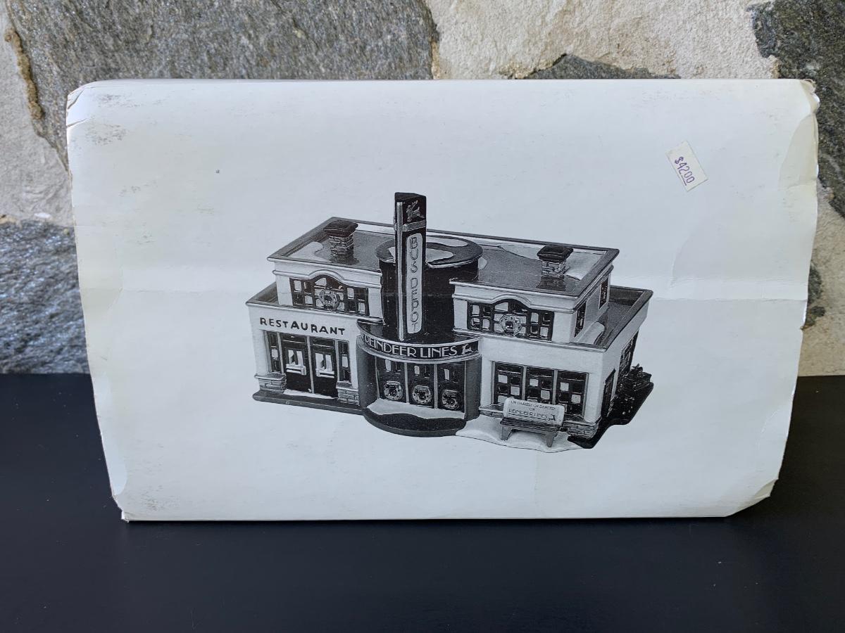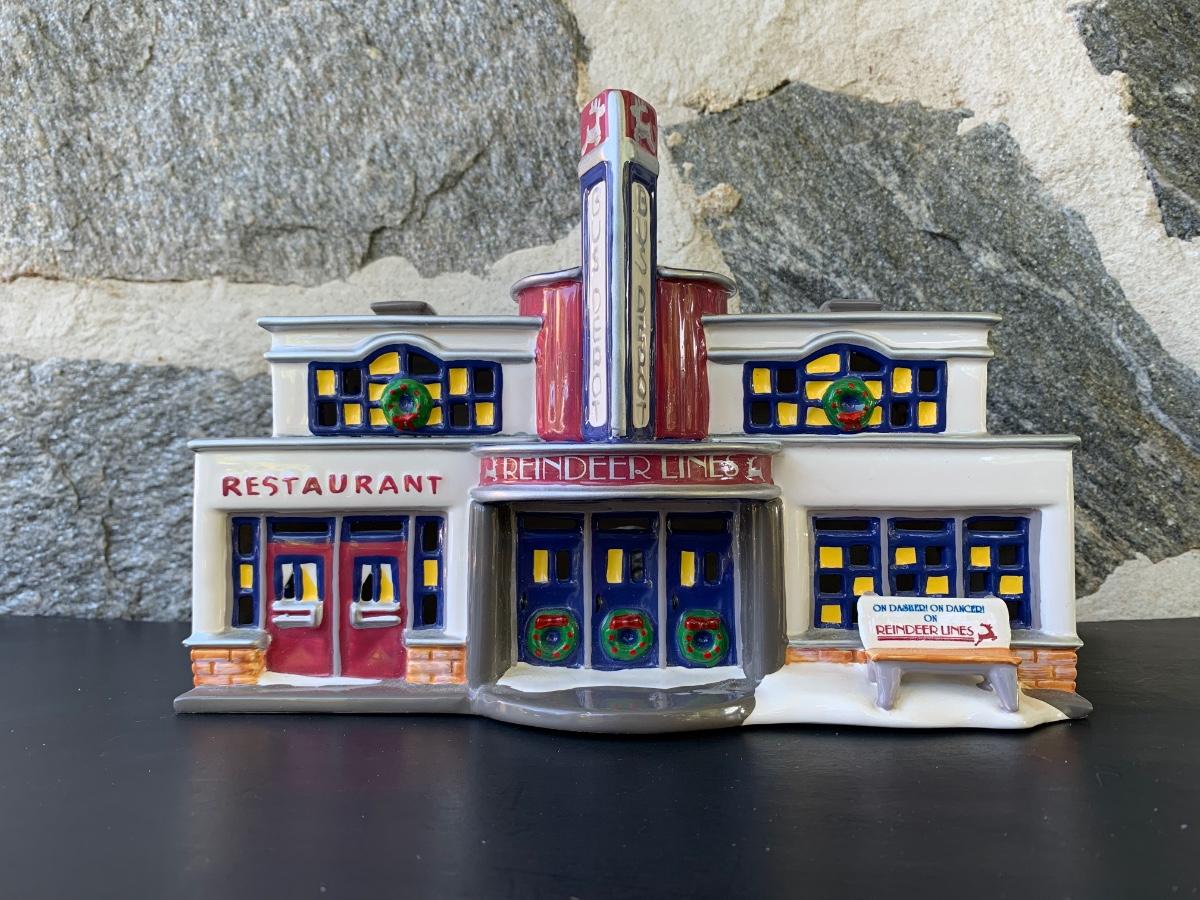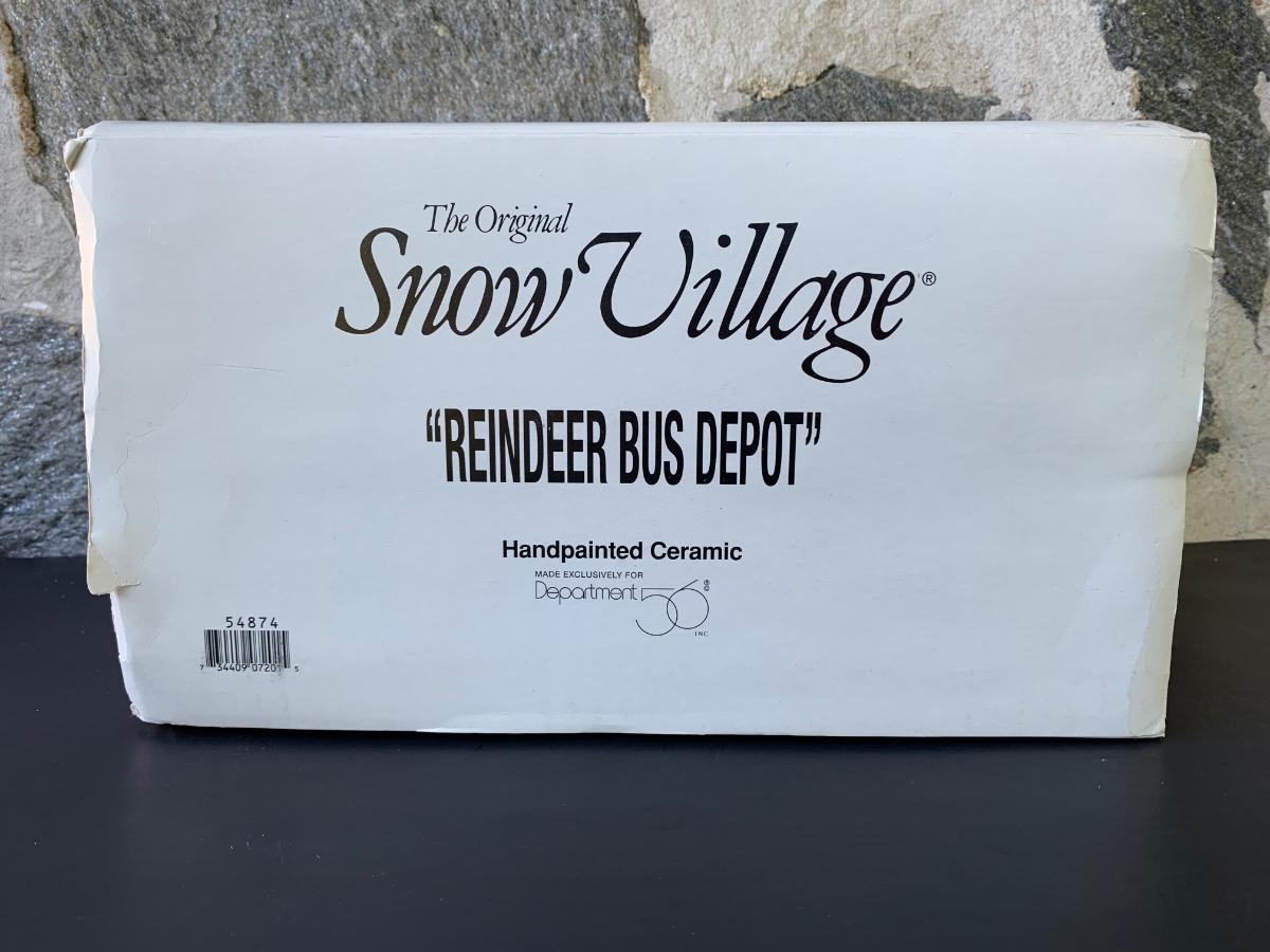 LOT 107: Dept 56: Reindeer Bus Stop & Ride on the Reindeer Lines w/Boxes & Light Cord