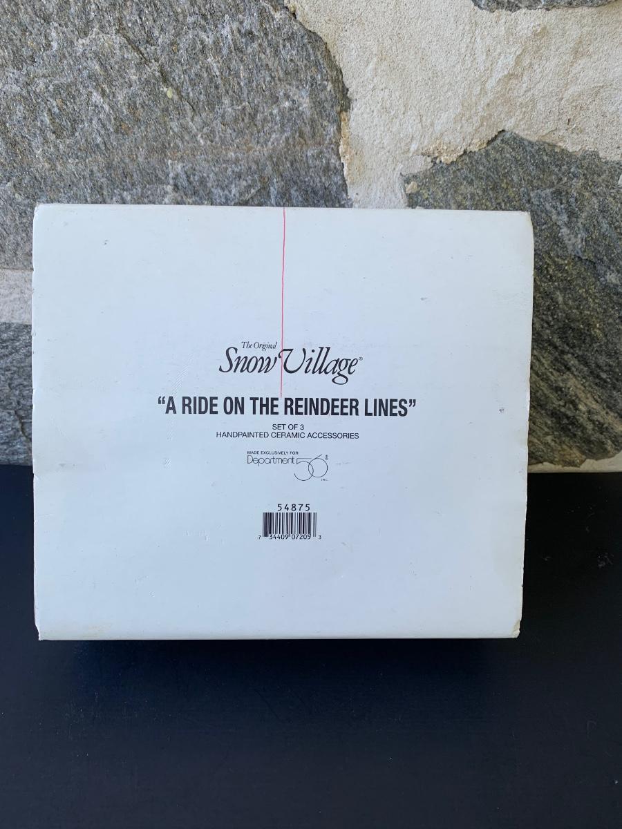 LOT 107: Dept 56: Reindeer Bus Stop &  Ride on the Reindeer Lines w/Boxes & Light Cord