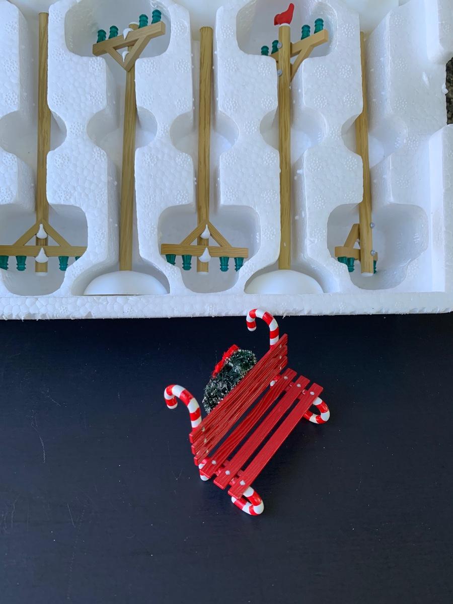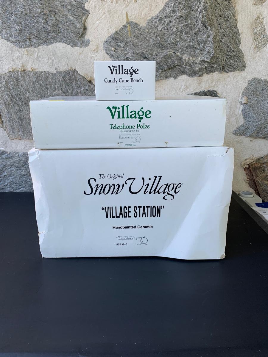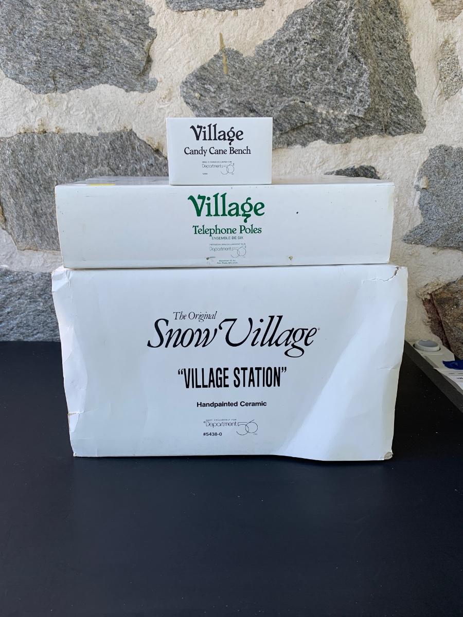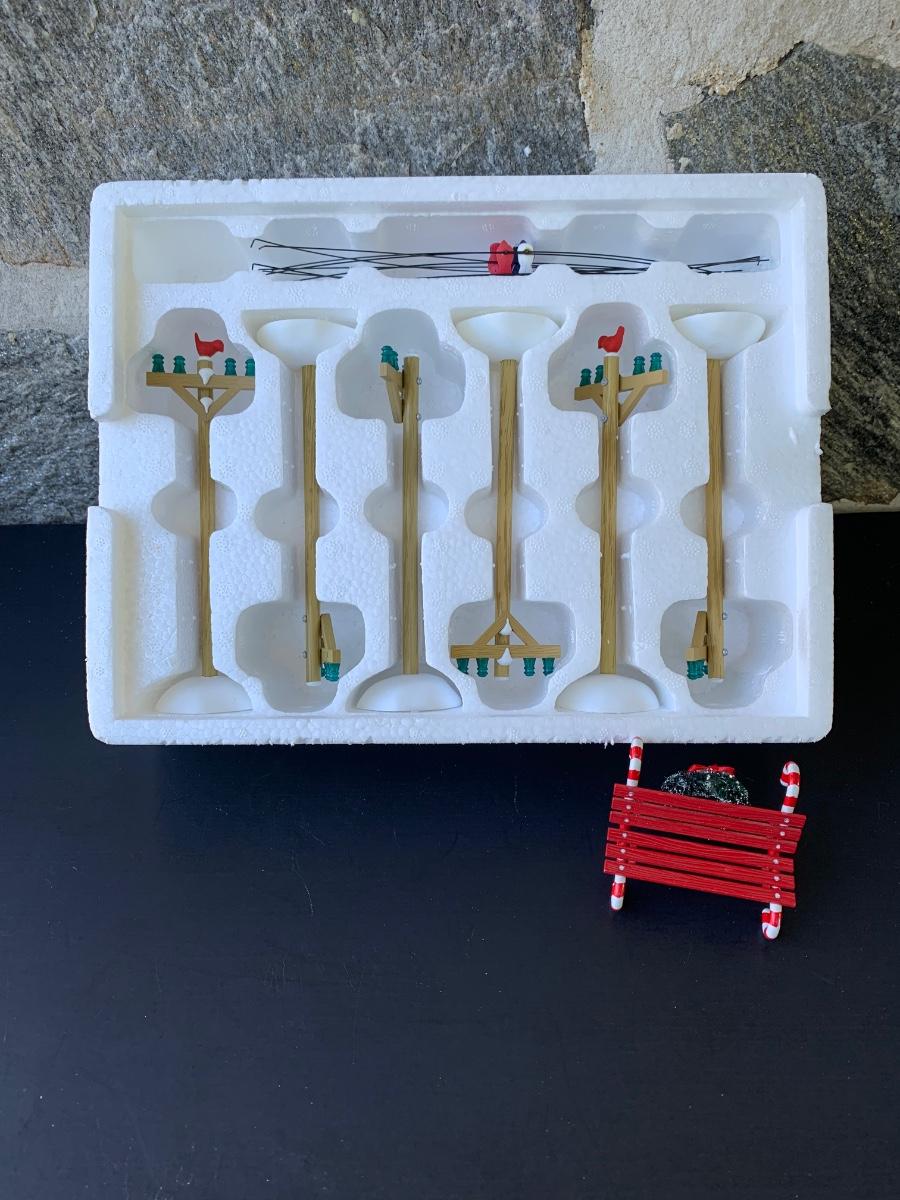 LOT 108R: Dept 56: Village Station, Telephone Poles & Candy Cane Bench