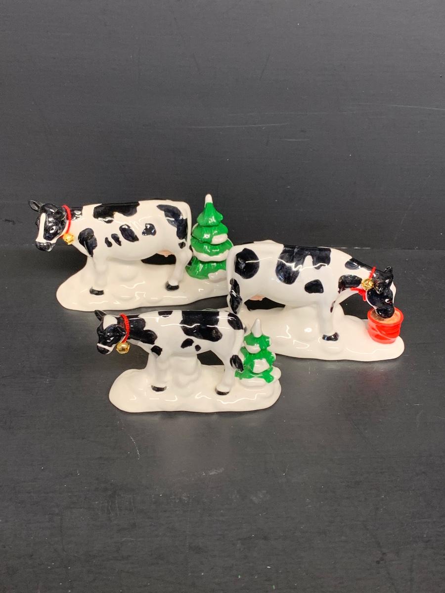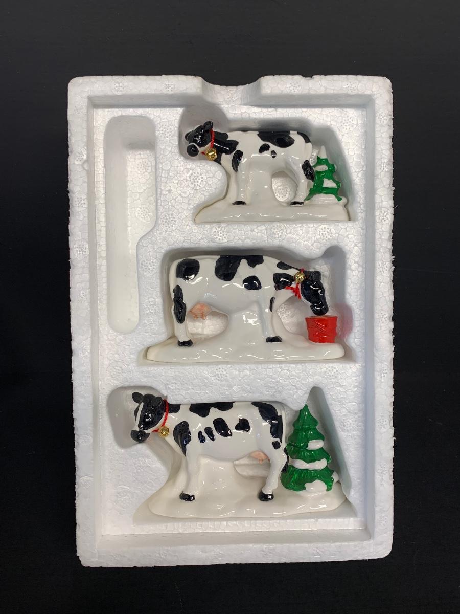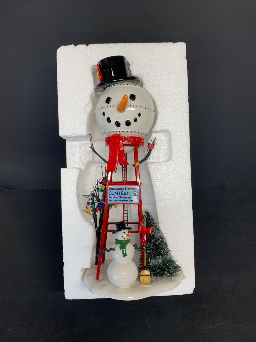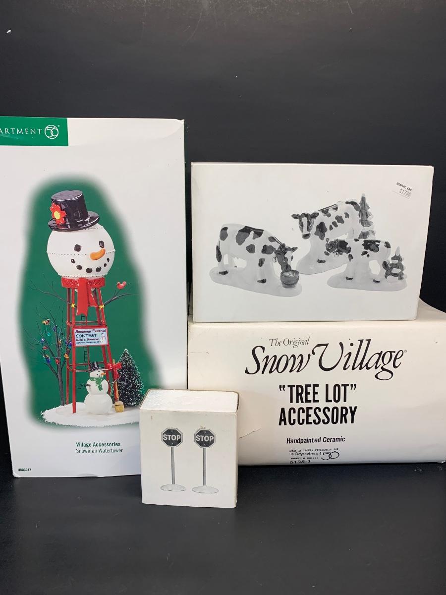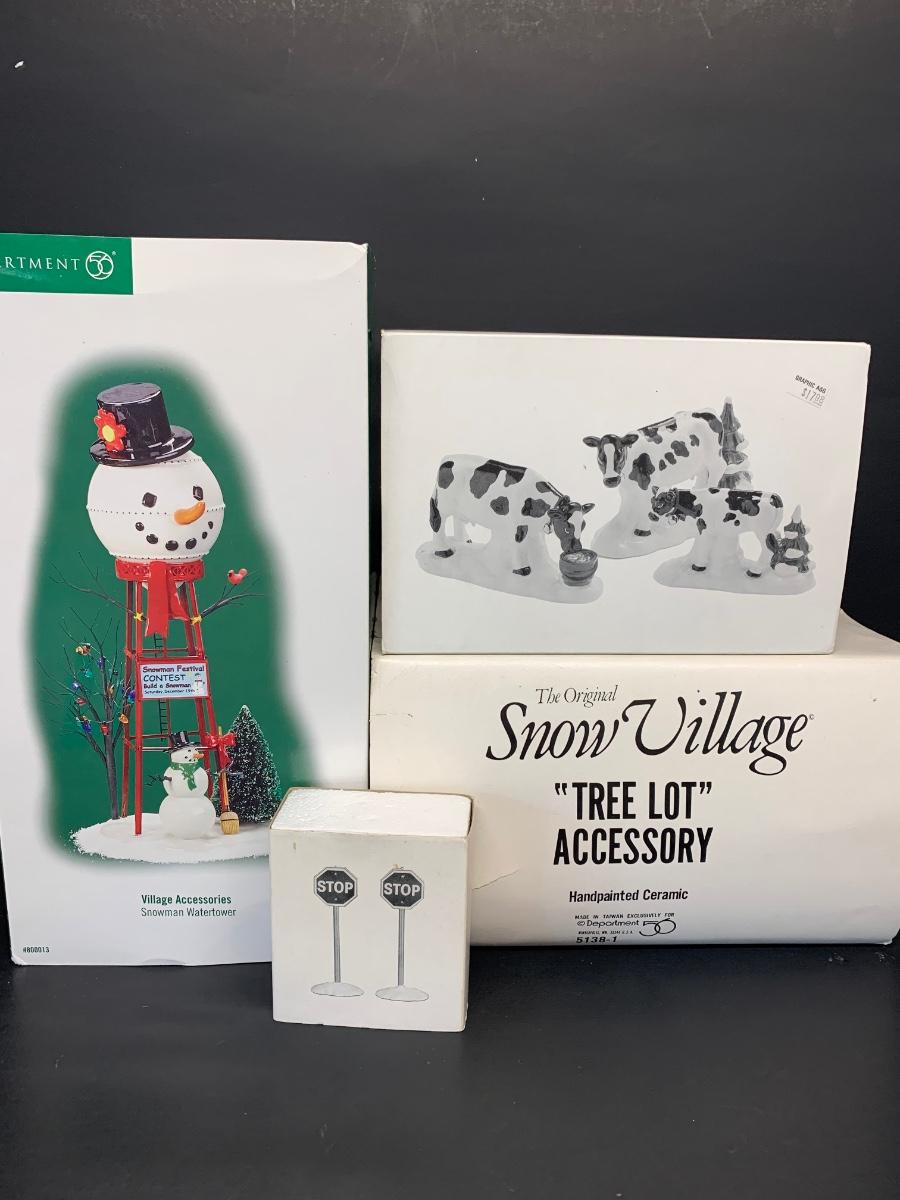 LOT 128RP: Dept. 56: Snowman Water Tower, Herd of Holiday Heifers, & More