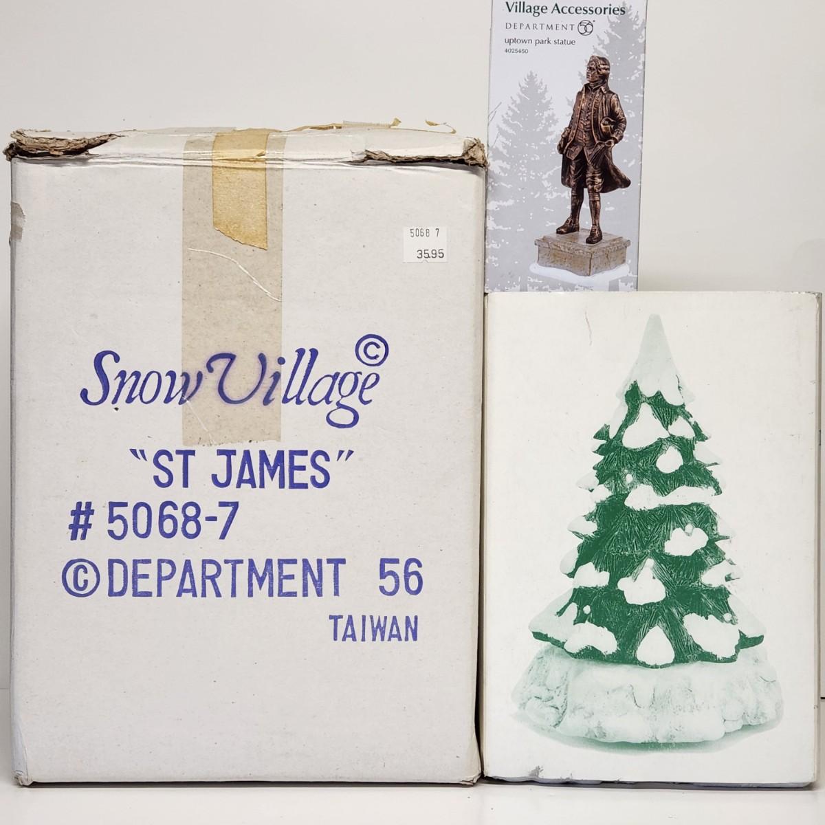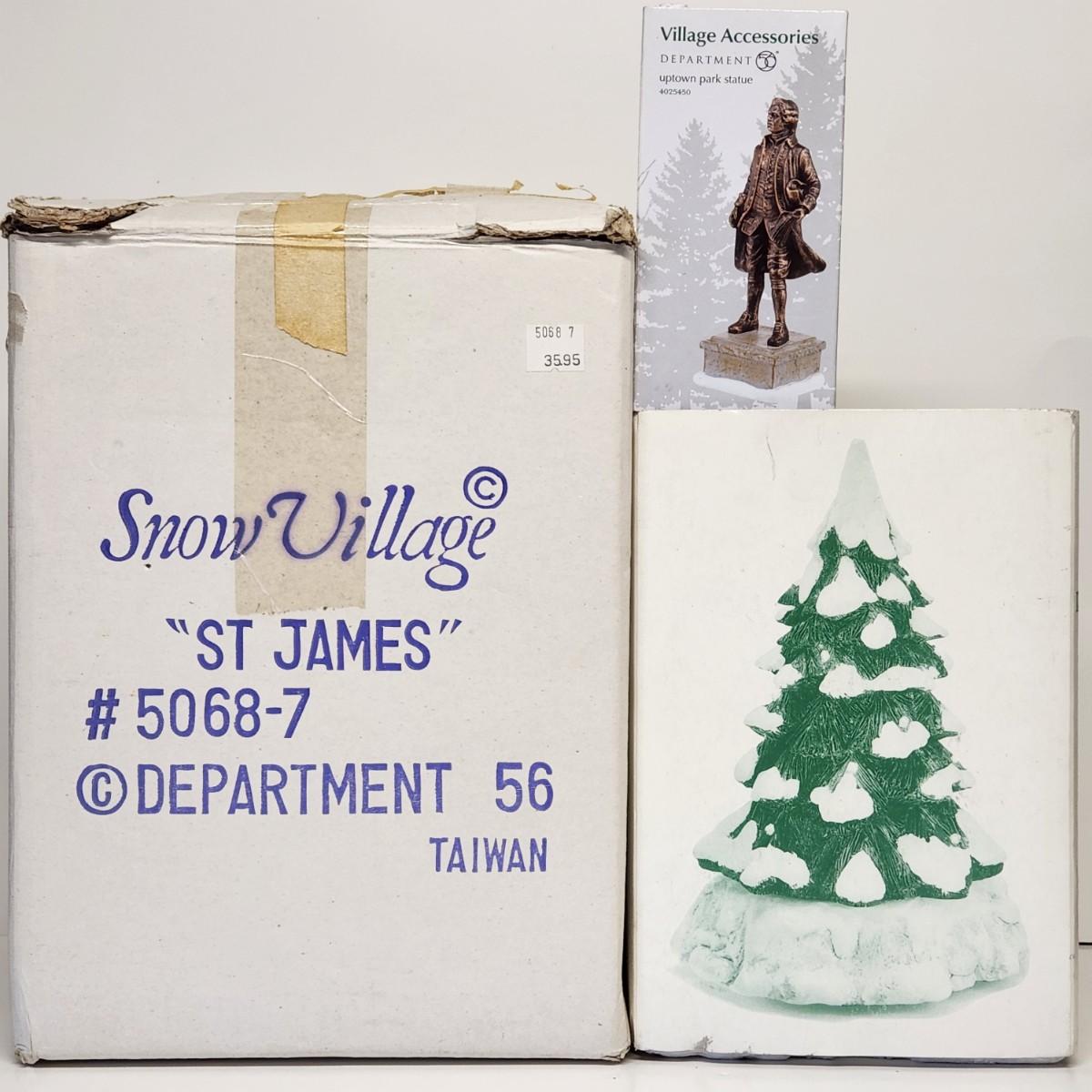 LOT 133RP: Dept. 56: St. James Church, Uptown Park Statue Monument, & More
