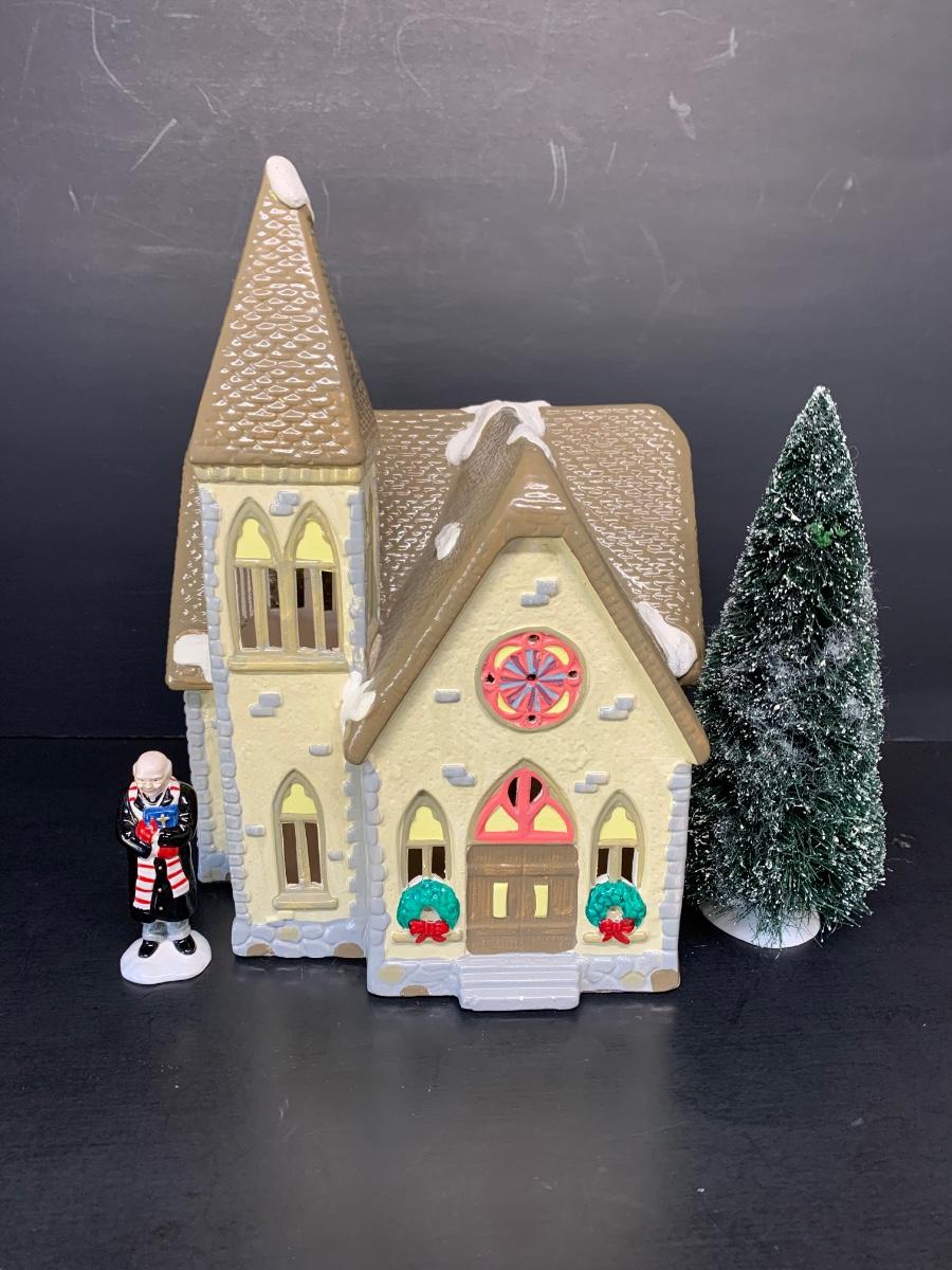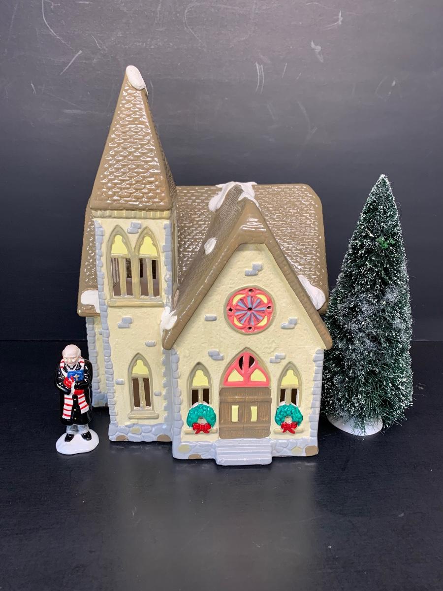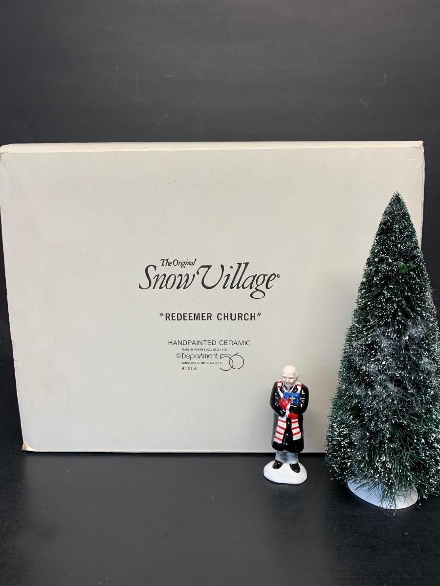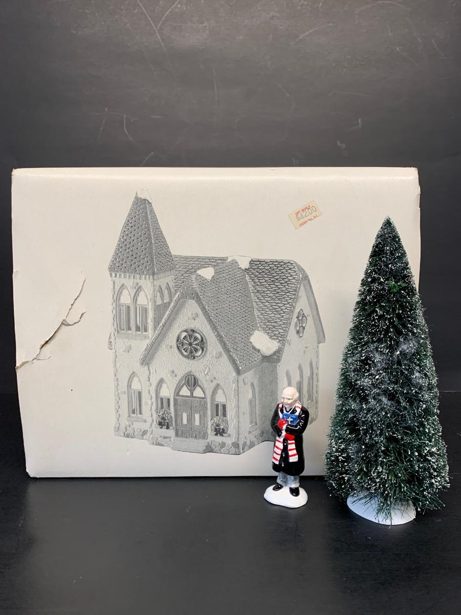 LOT 141R: Dept 56 Redeemer Church, Minister & Tree