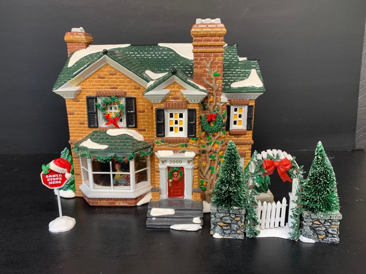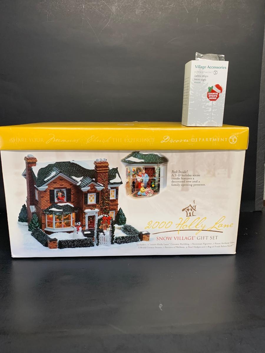 LOT 143R: Dept 56 Holly Lane & Santa Stop Sign
