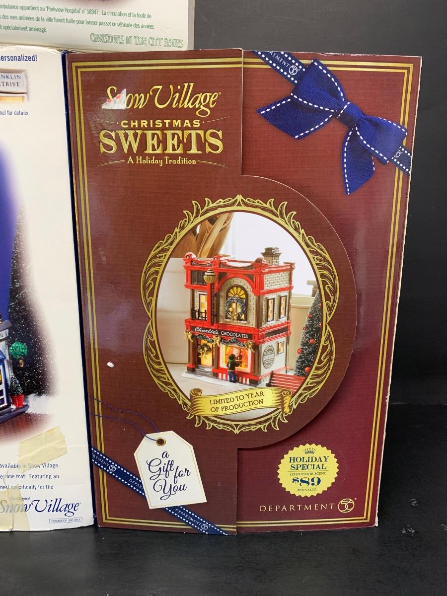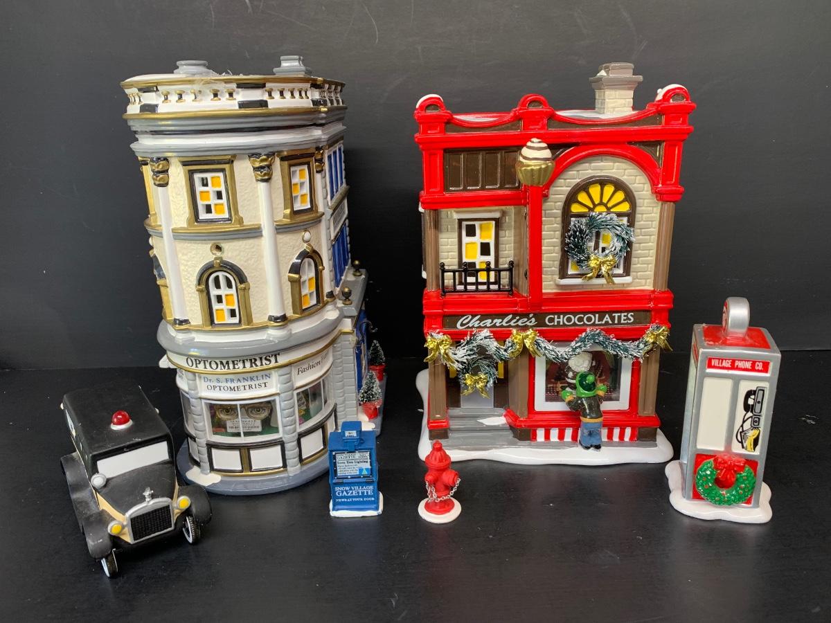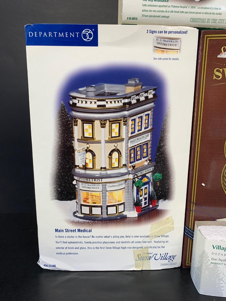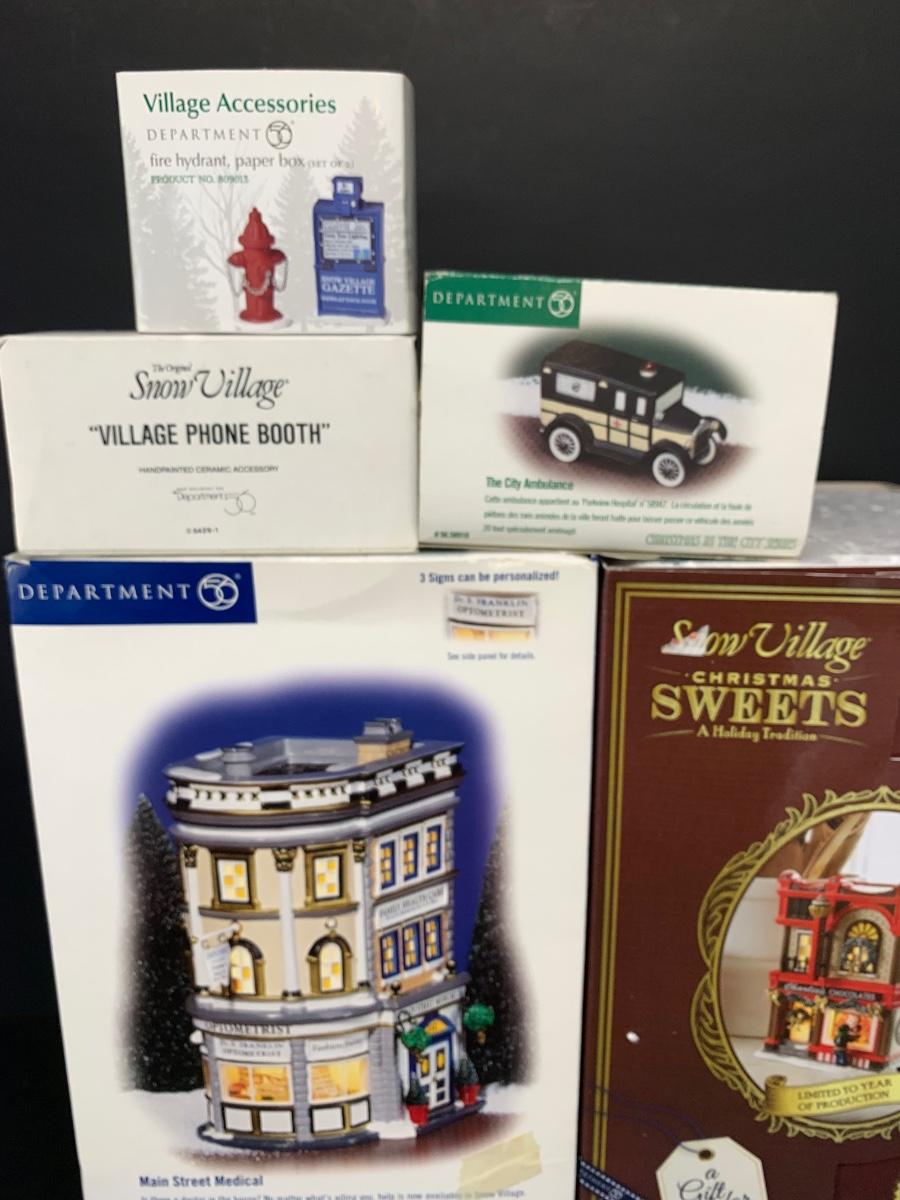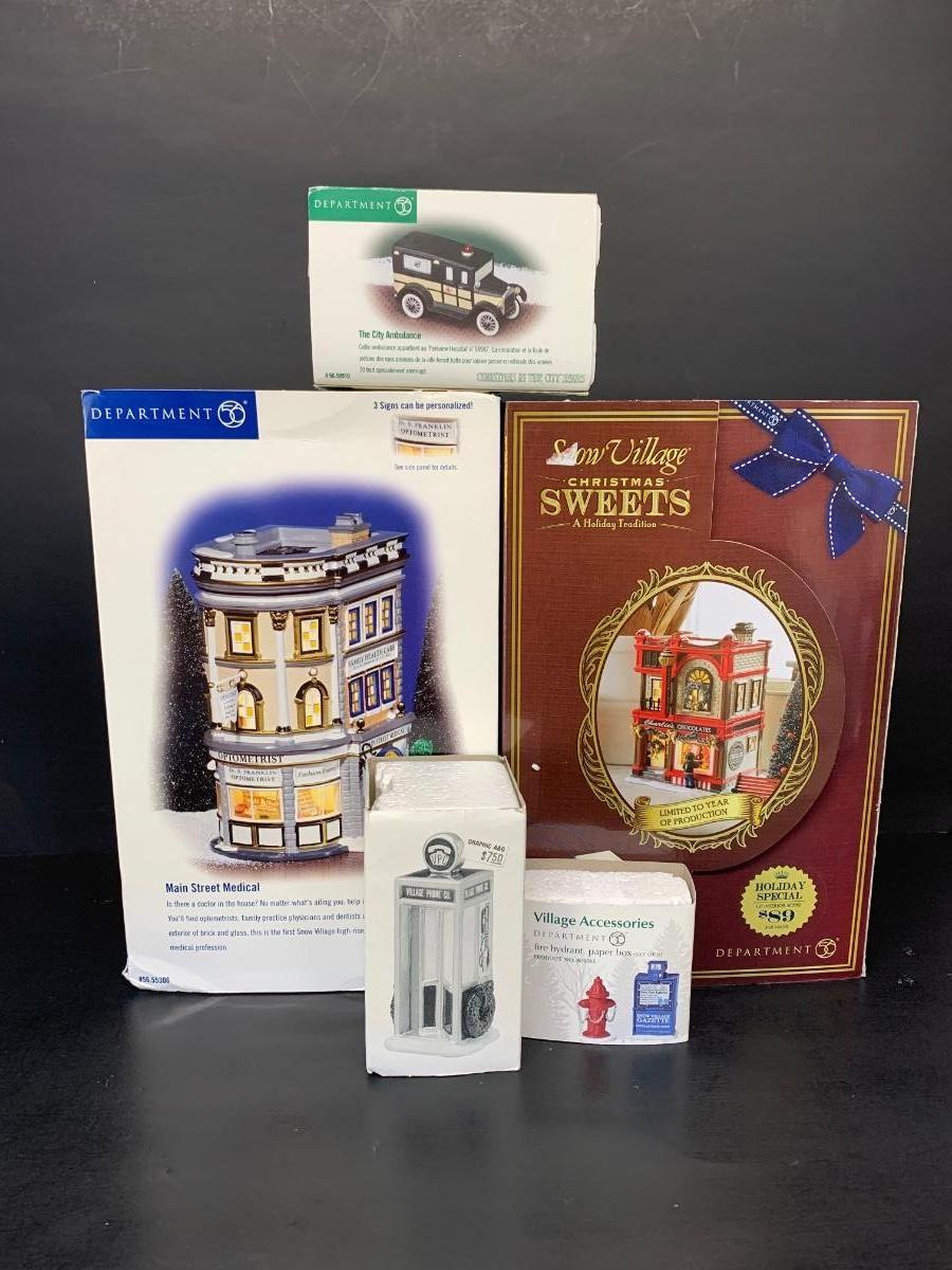 LOT 144R: Dept 56 Main Street Medical, Phone Booth, City Ambulance, Christmas Sweets & More