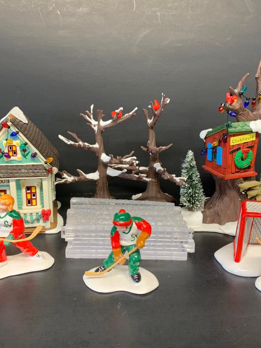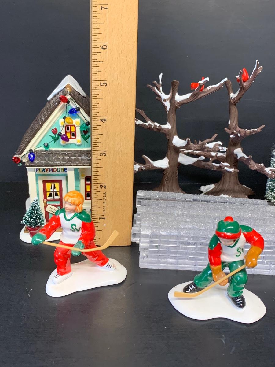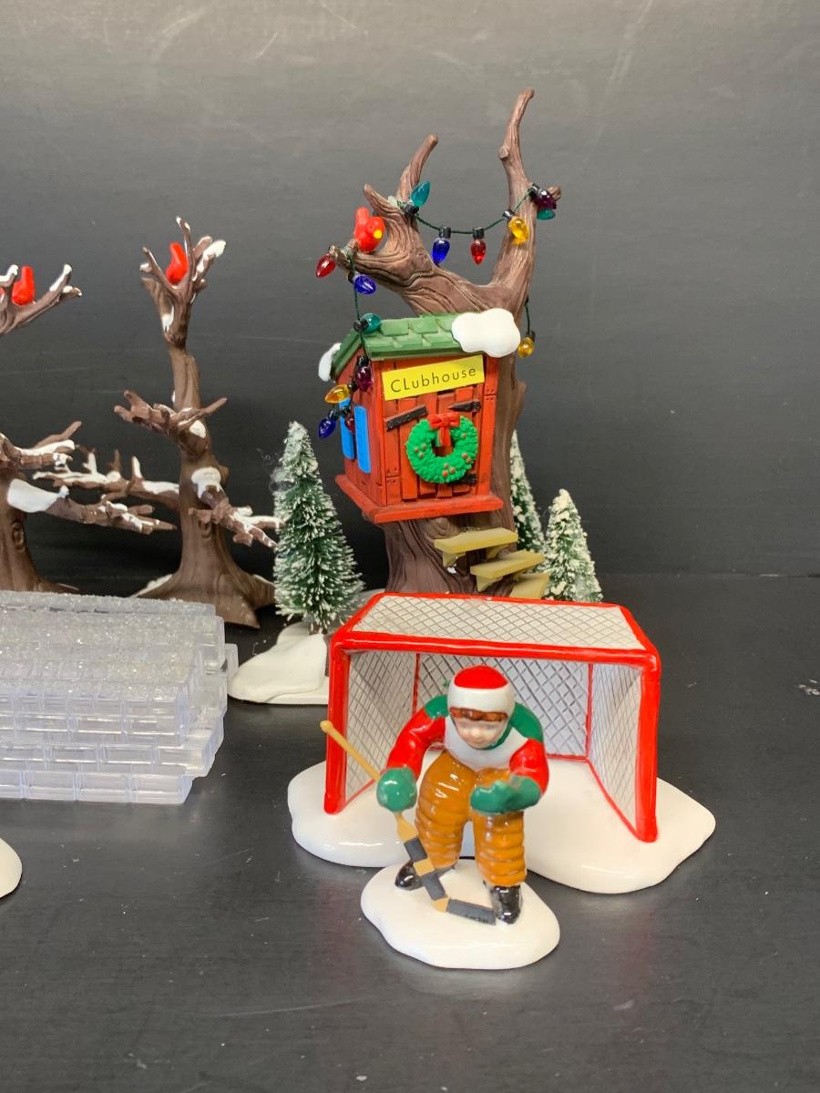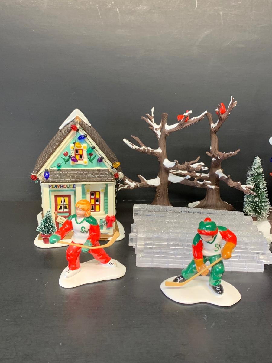 LOT 148R: Dept 56 Club House & Trees, Let's Play House, Ice Crystal Wall & Cold Weather Sports