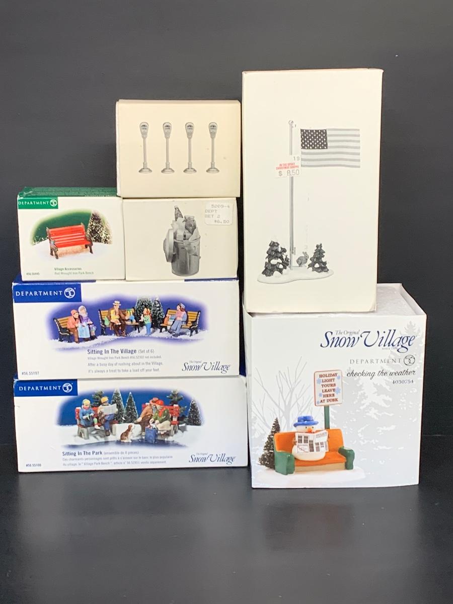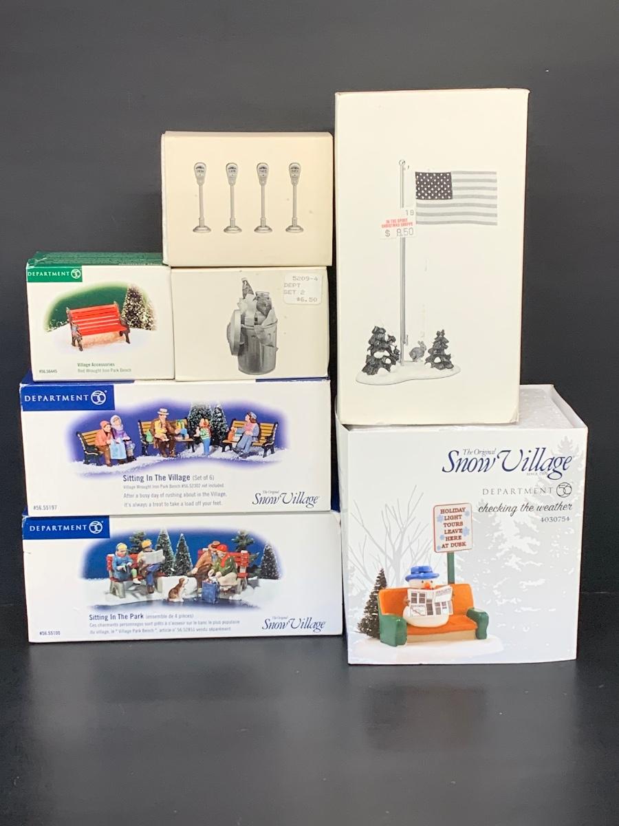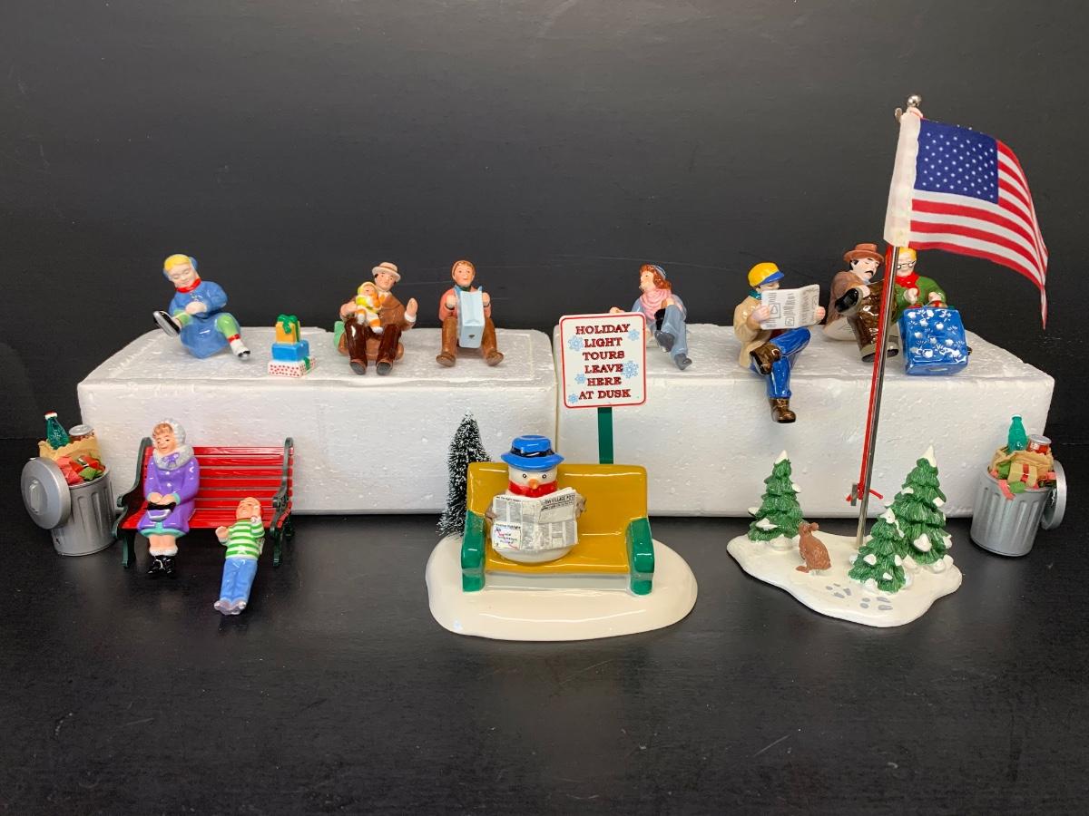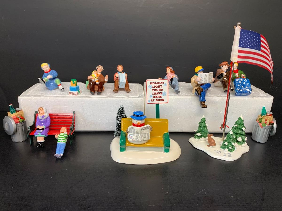 LOT 149: Dept 56 Figure Accessories: Sitting in the Village, Sitting in the Park, Checking the Weather & Others