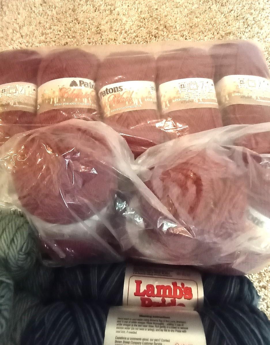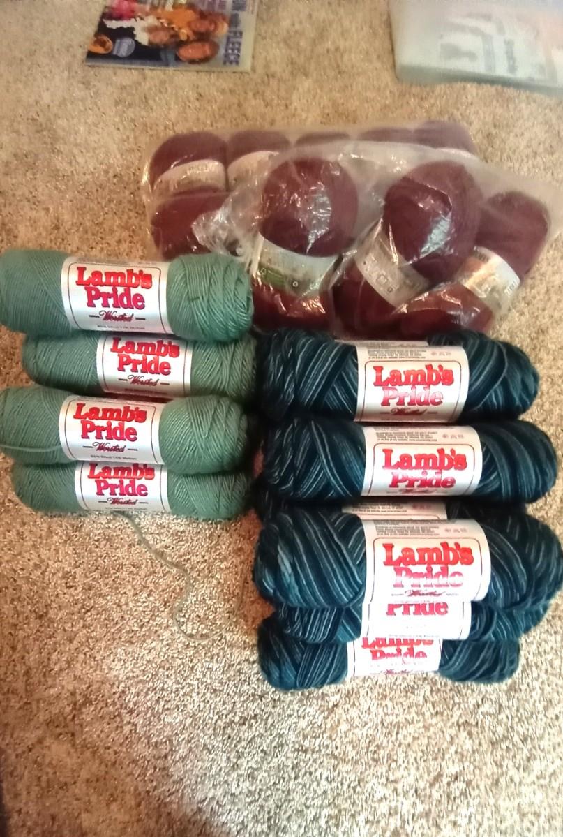 LAMBS PRIDE BROWN AND GREEN SHADES OF YARN
