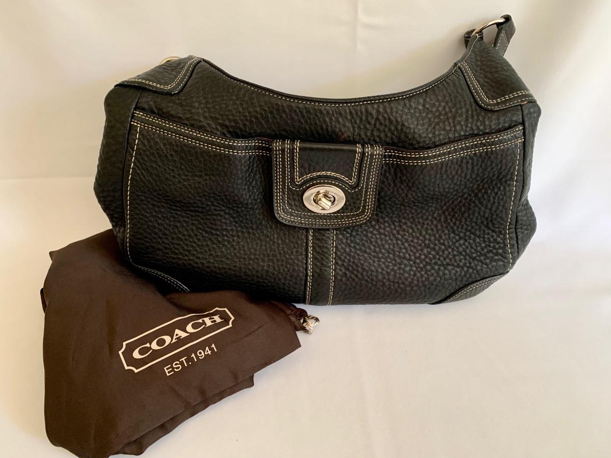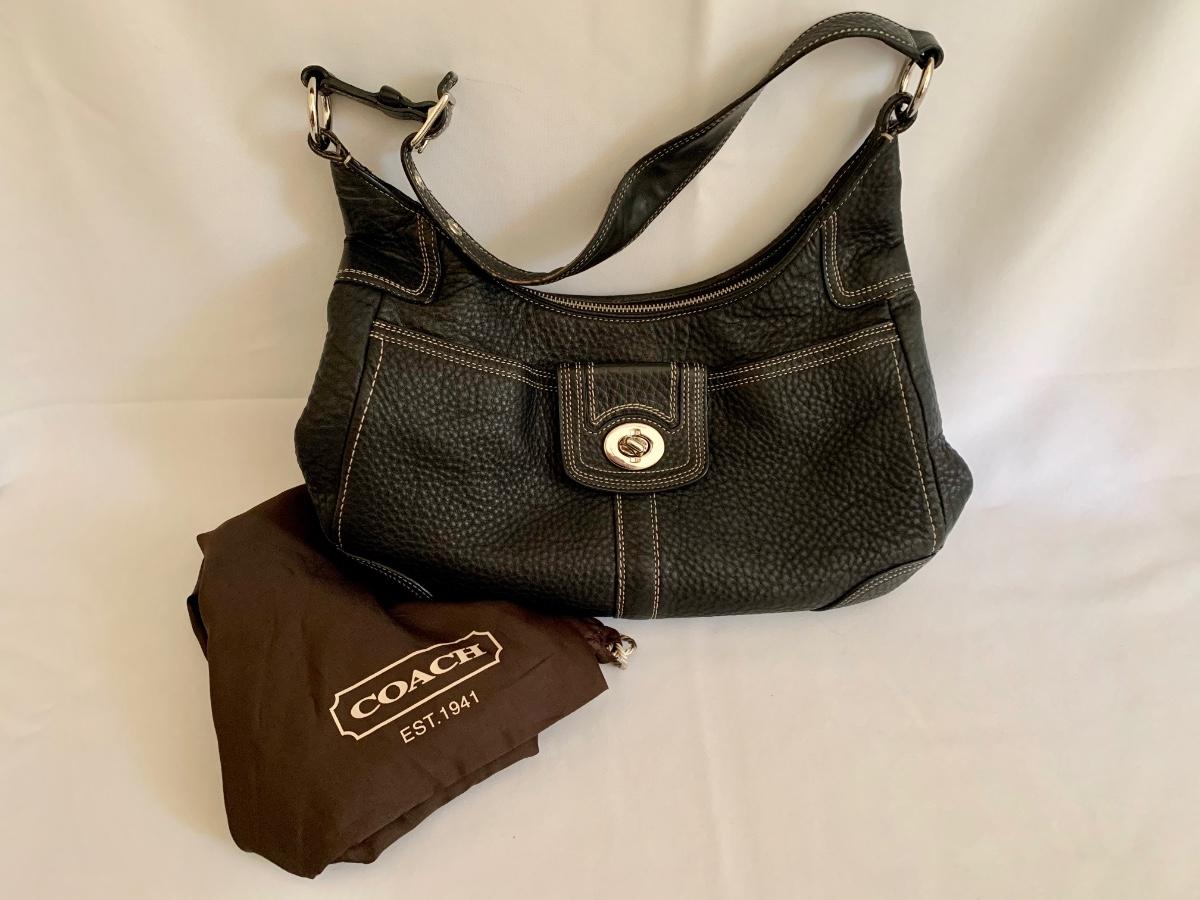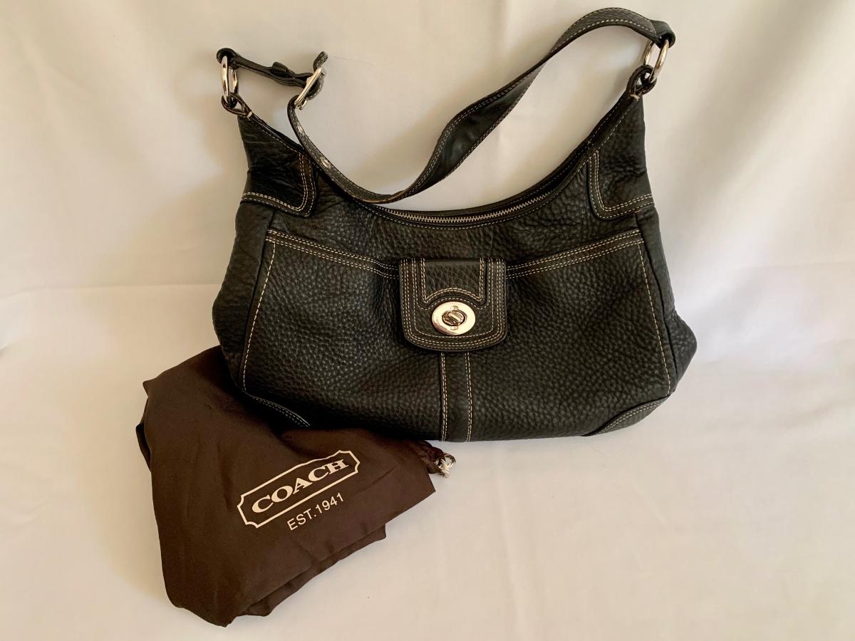 LOT 6: Black Pebble Leather Coach Purse w/Storage Bag