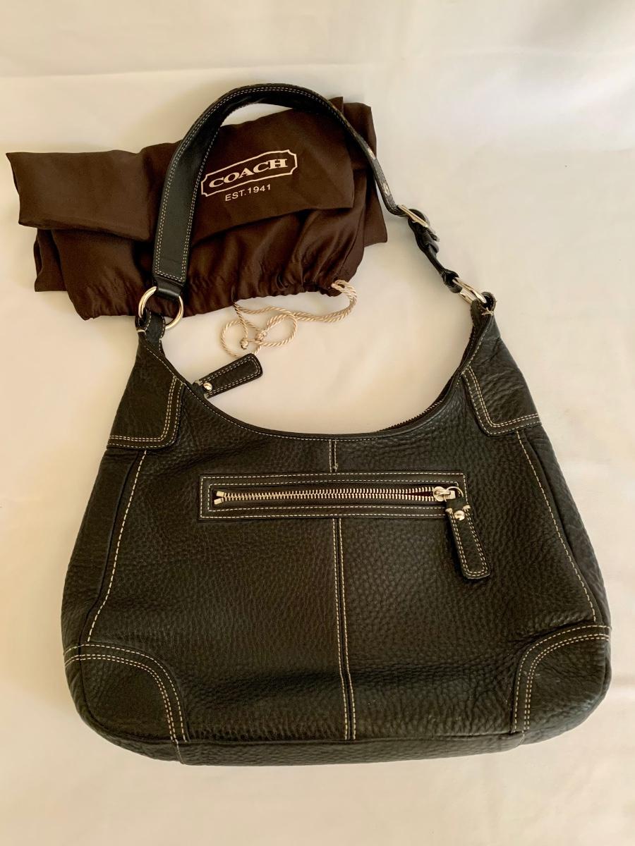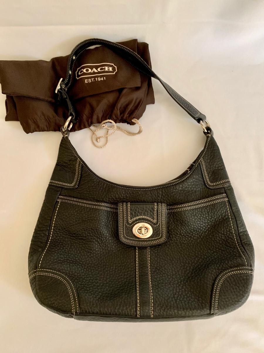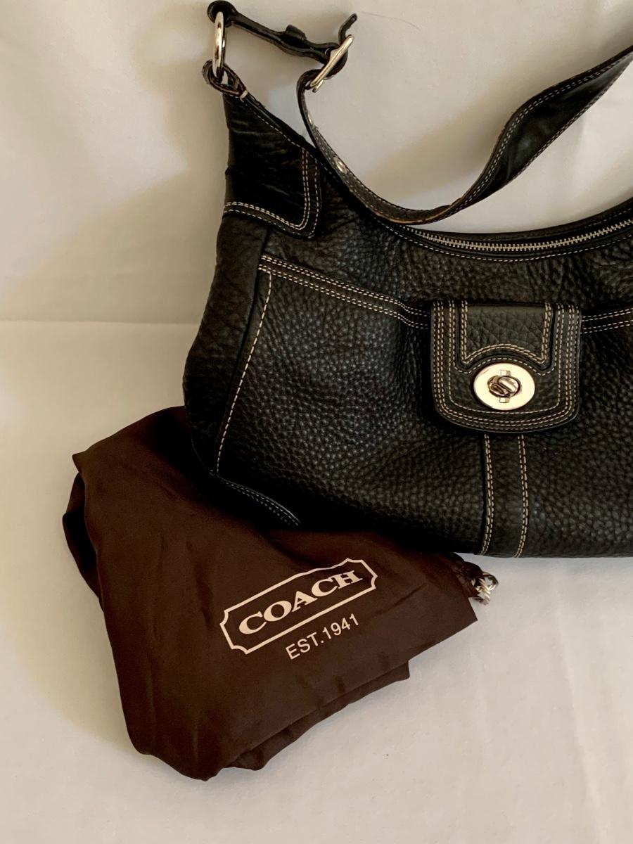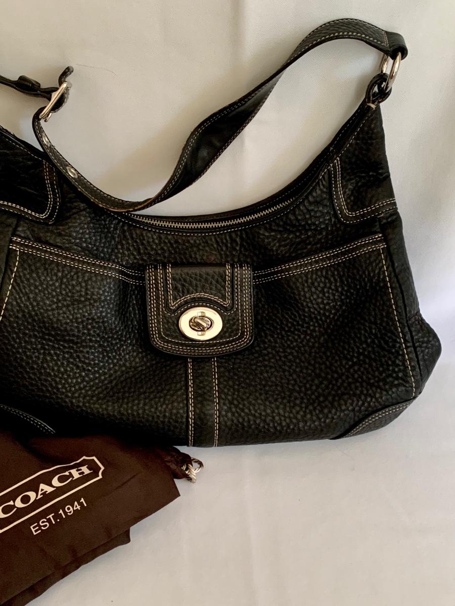 LOT 6: Black Pebble Leather Coach Purse w/Storage Bag
