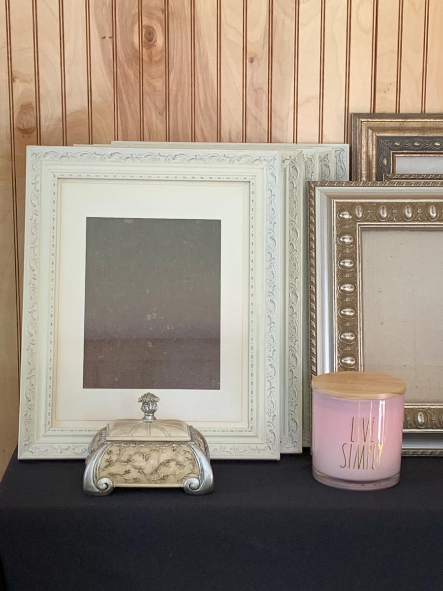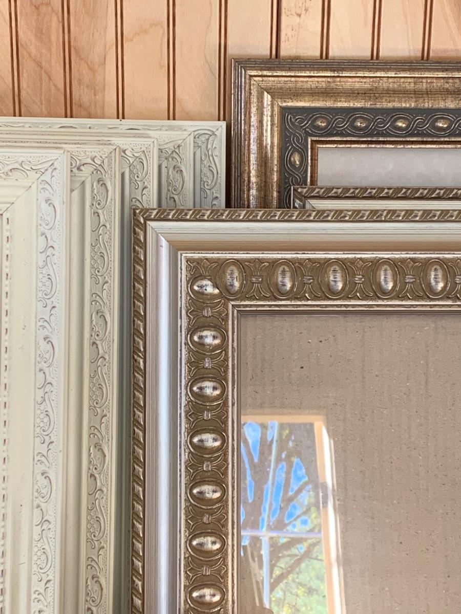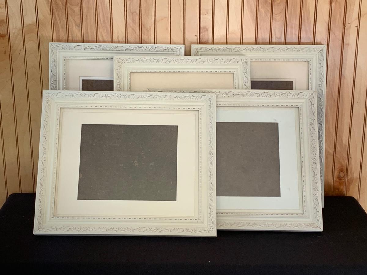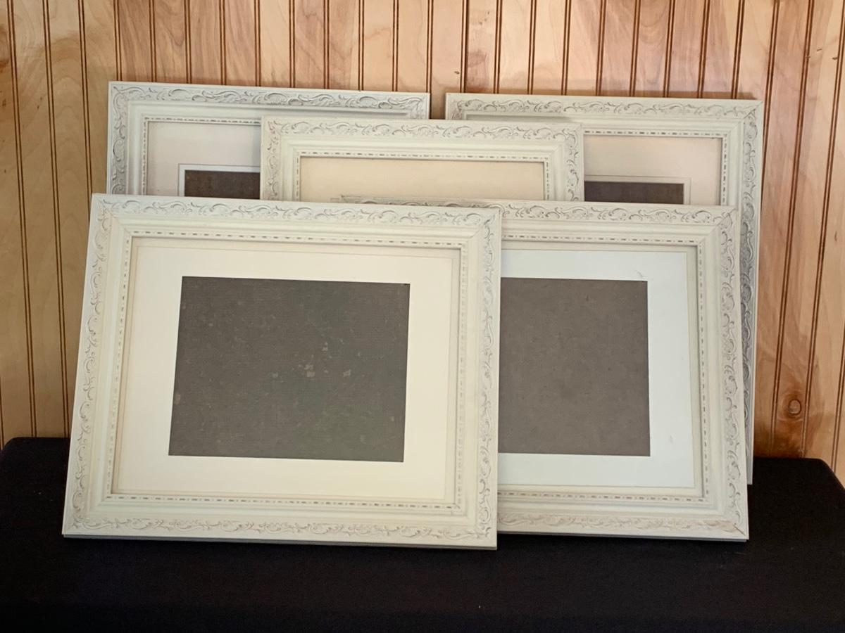 Large collection of matching pictures frames. Great for creating wall photo collage.