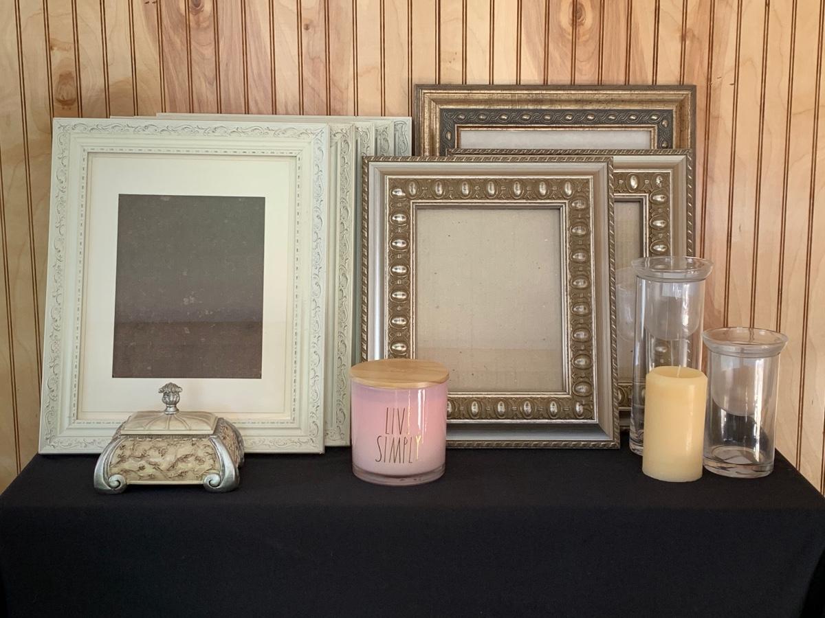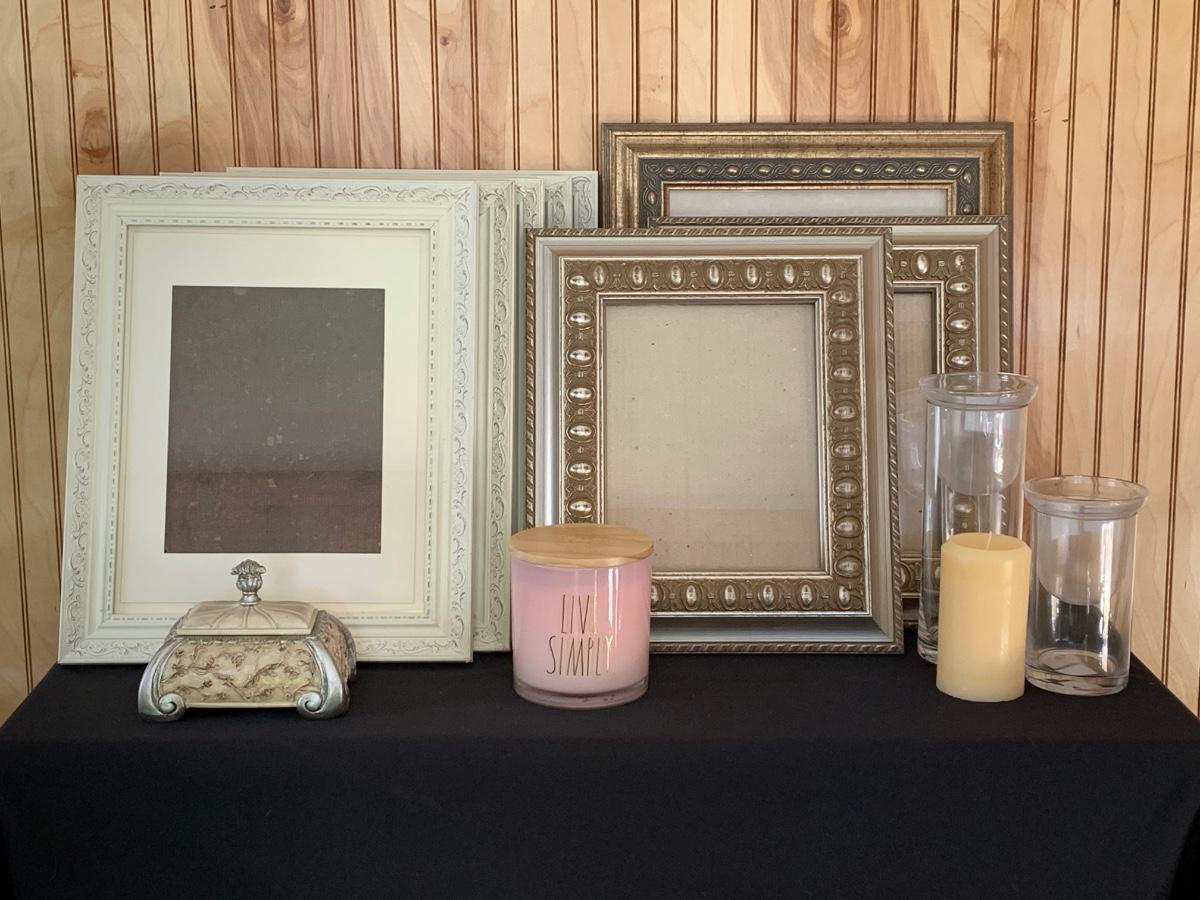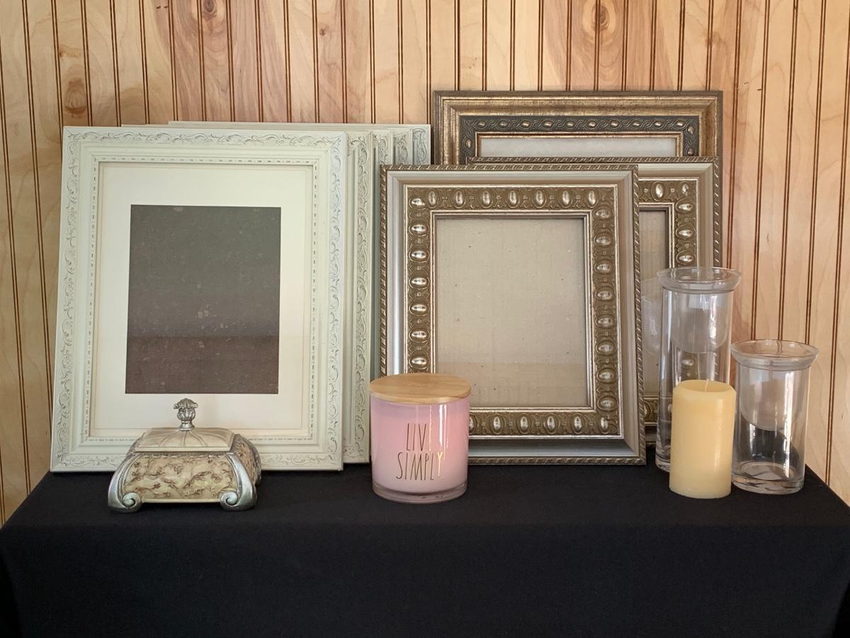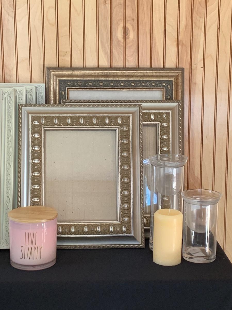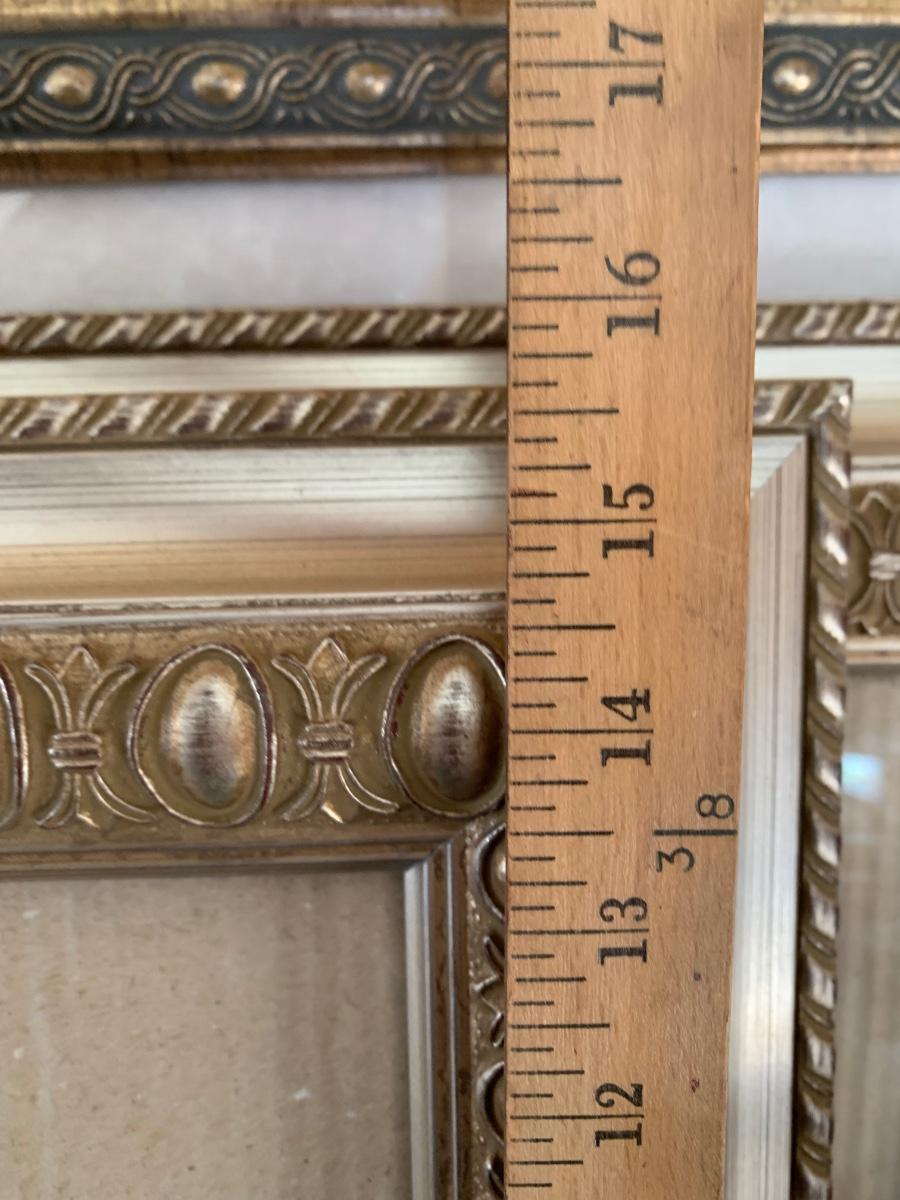 Large collection of matching pictures frames. Great for creating wall photo collage.