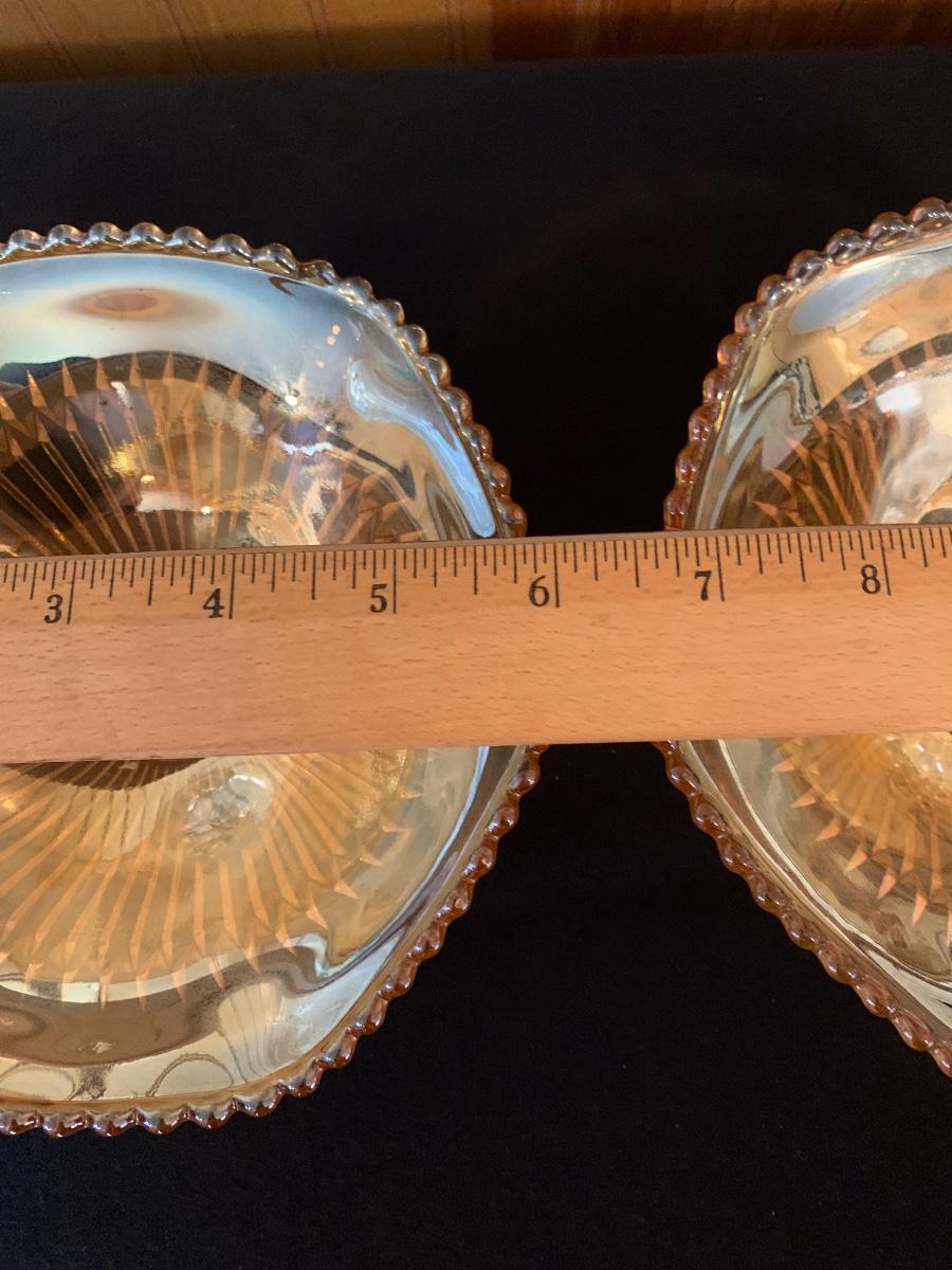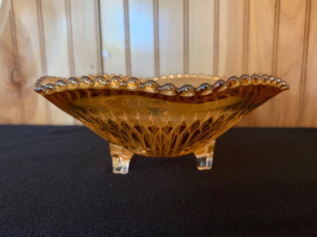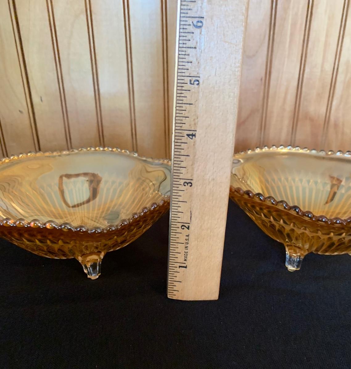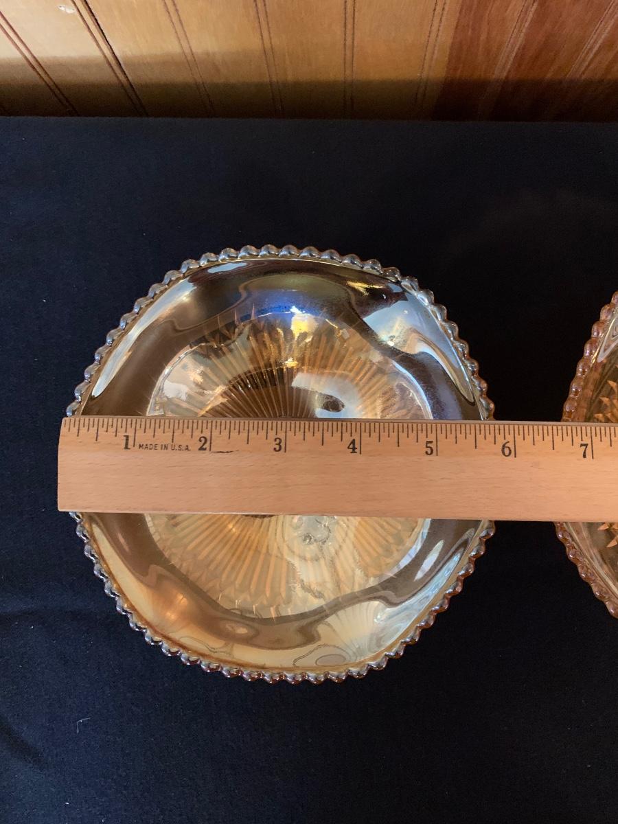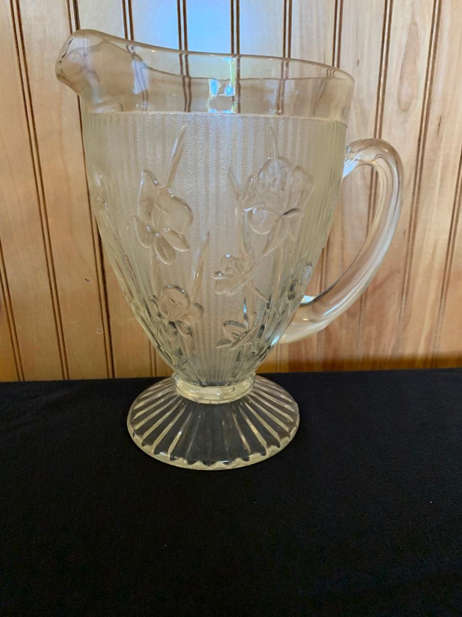 LOT Vintage Depression Glass Iris & Herringbone Footed Water Pitcher, Depression Sherbert Plates, & Carnival Glass Footed Bowl & More