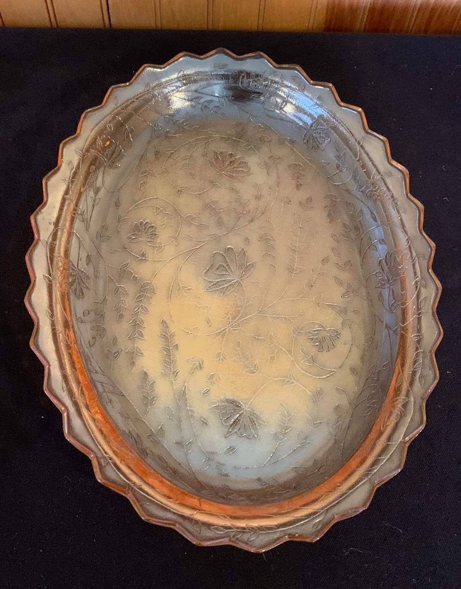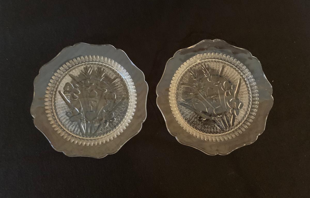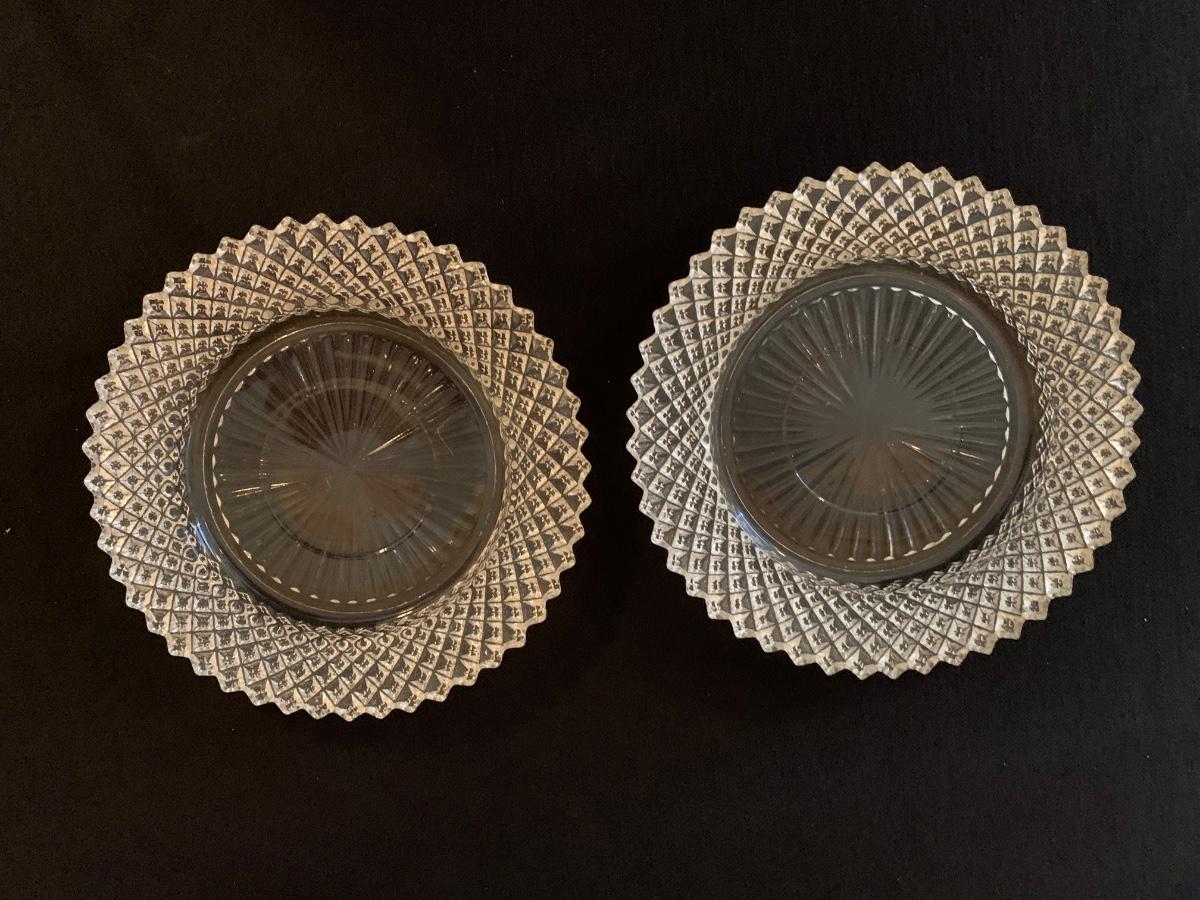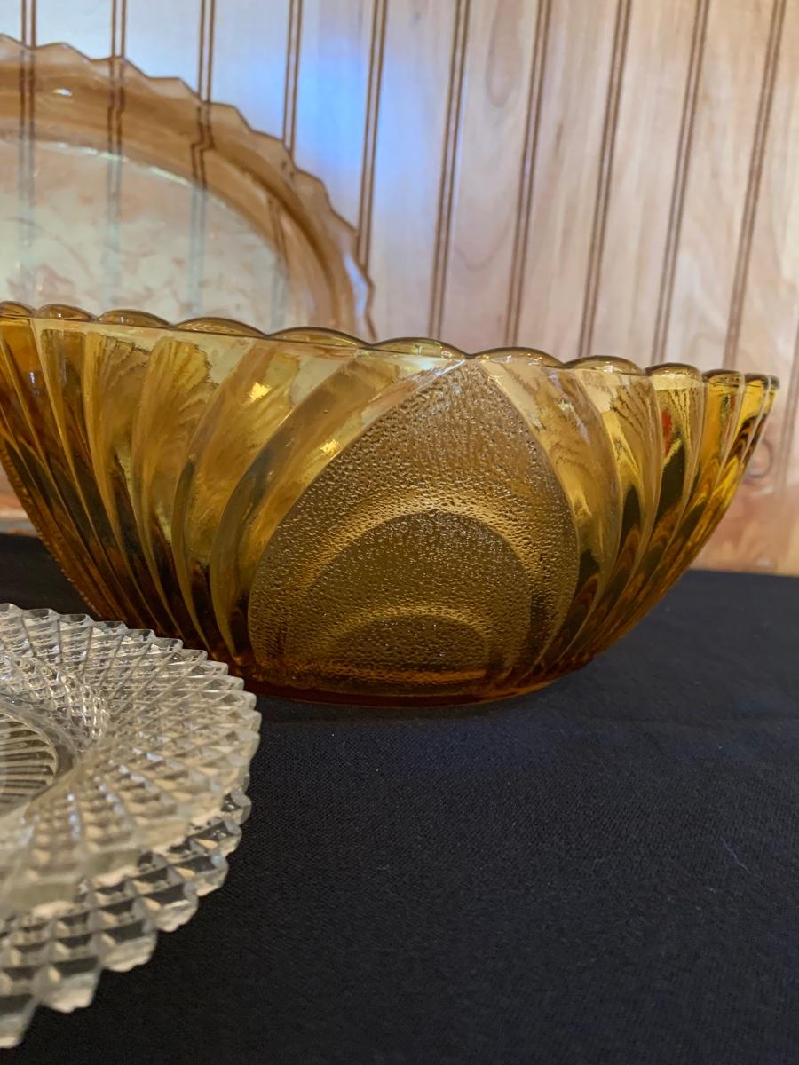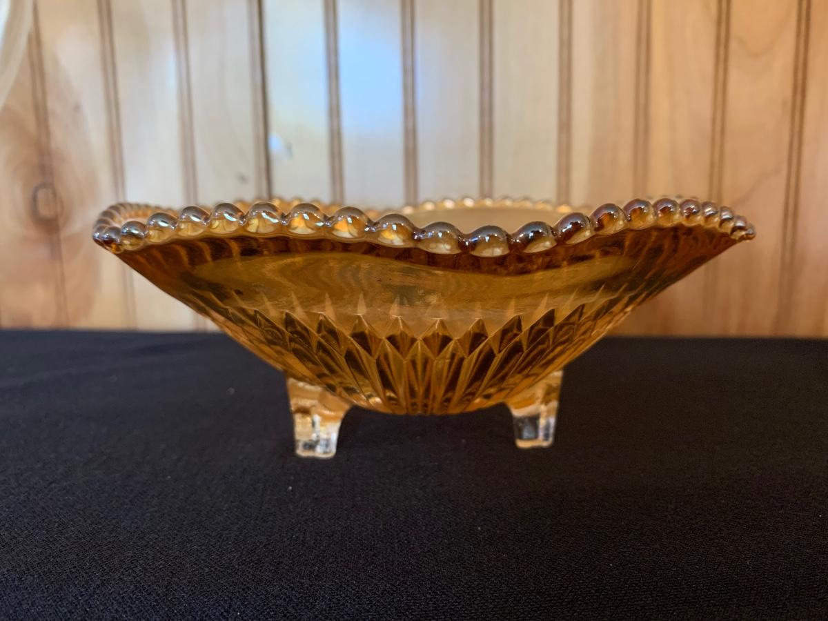 LOT Vintage Depression Glass Iris & Herringbone Footed Water Pitcher, Depression Sherbert Plates, & Carnival Glass Footed Bowl & More