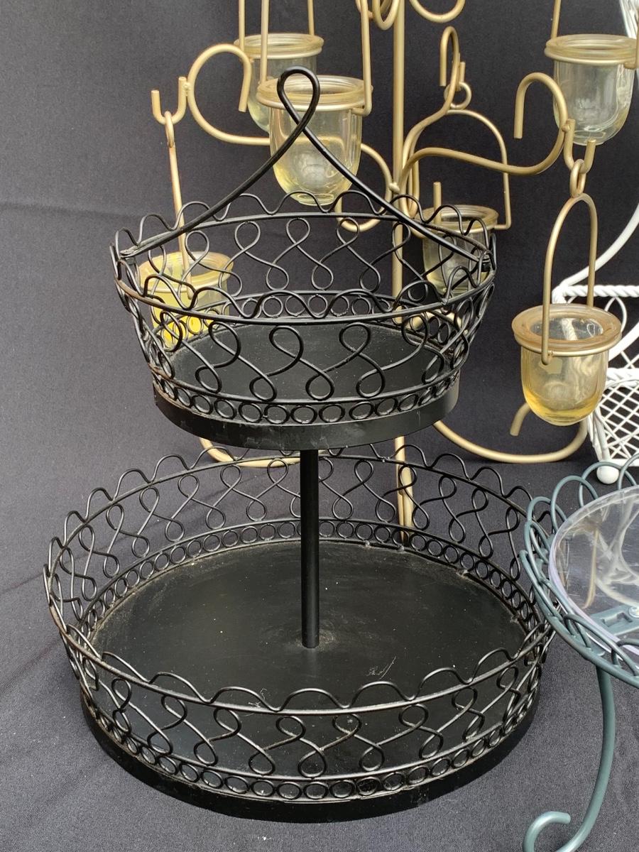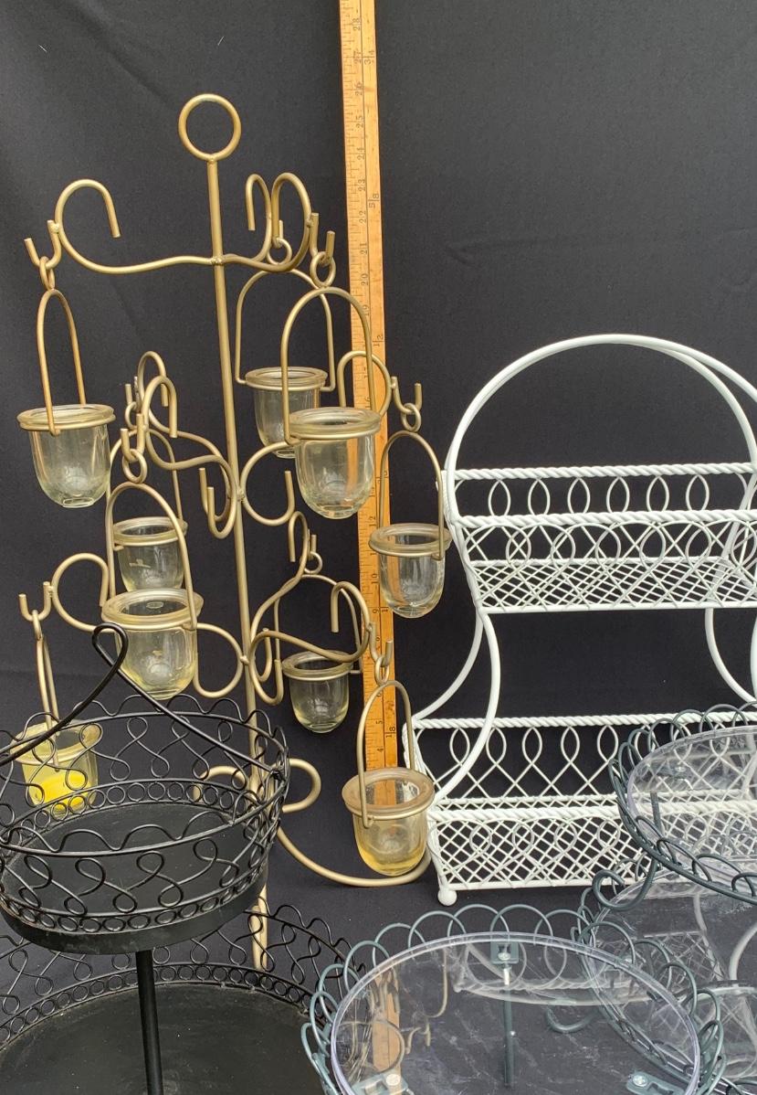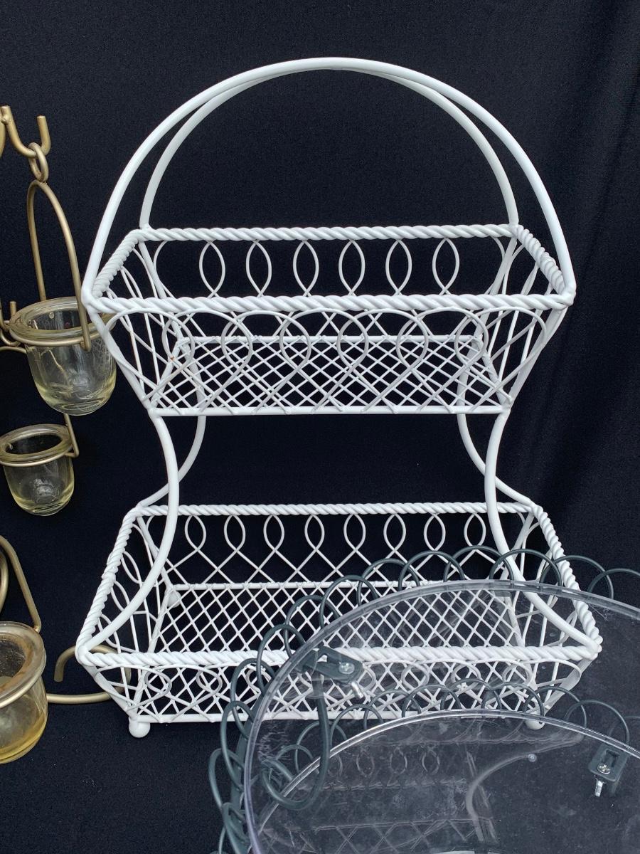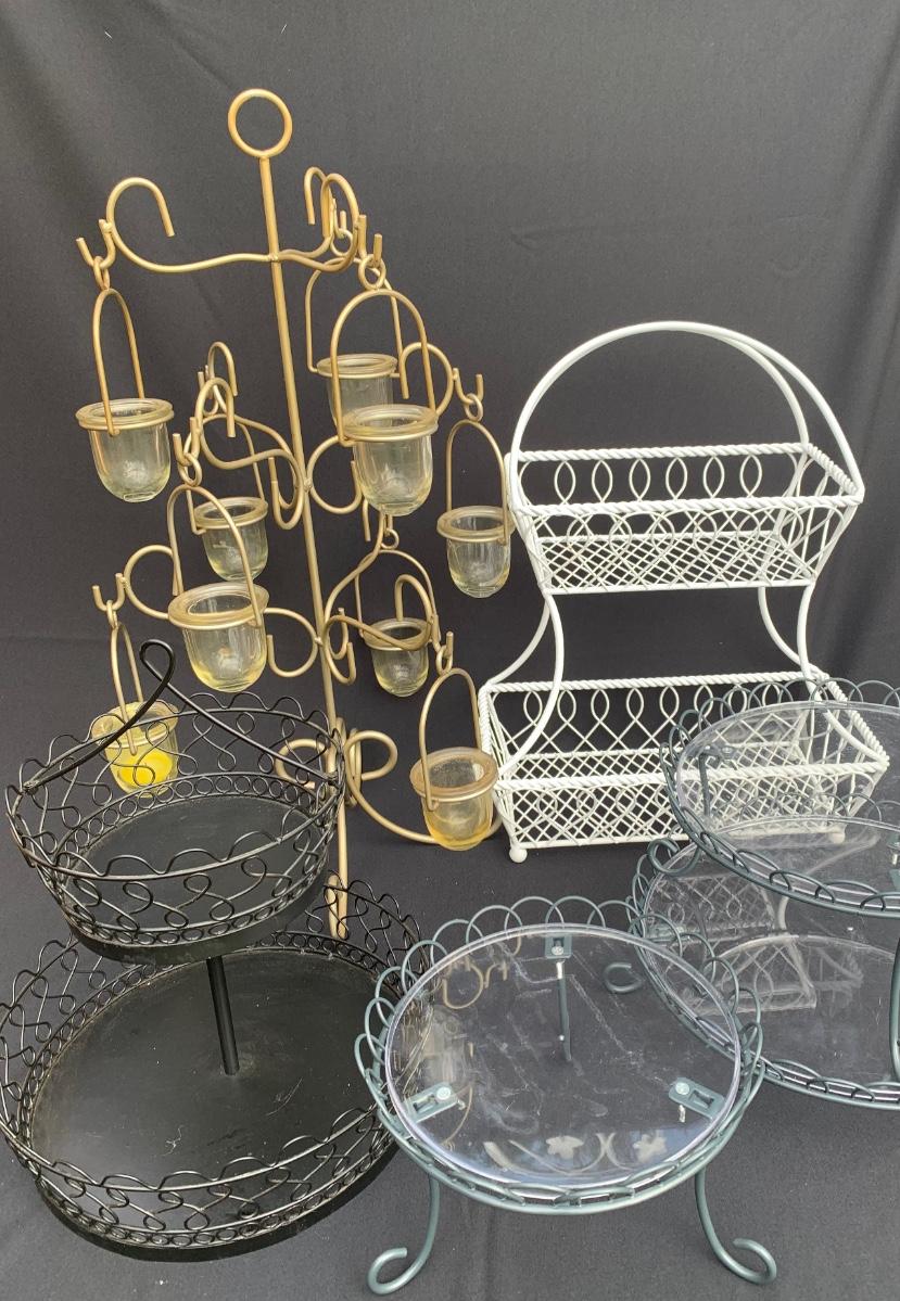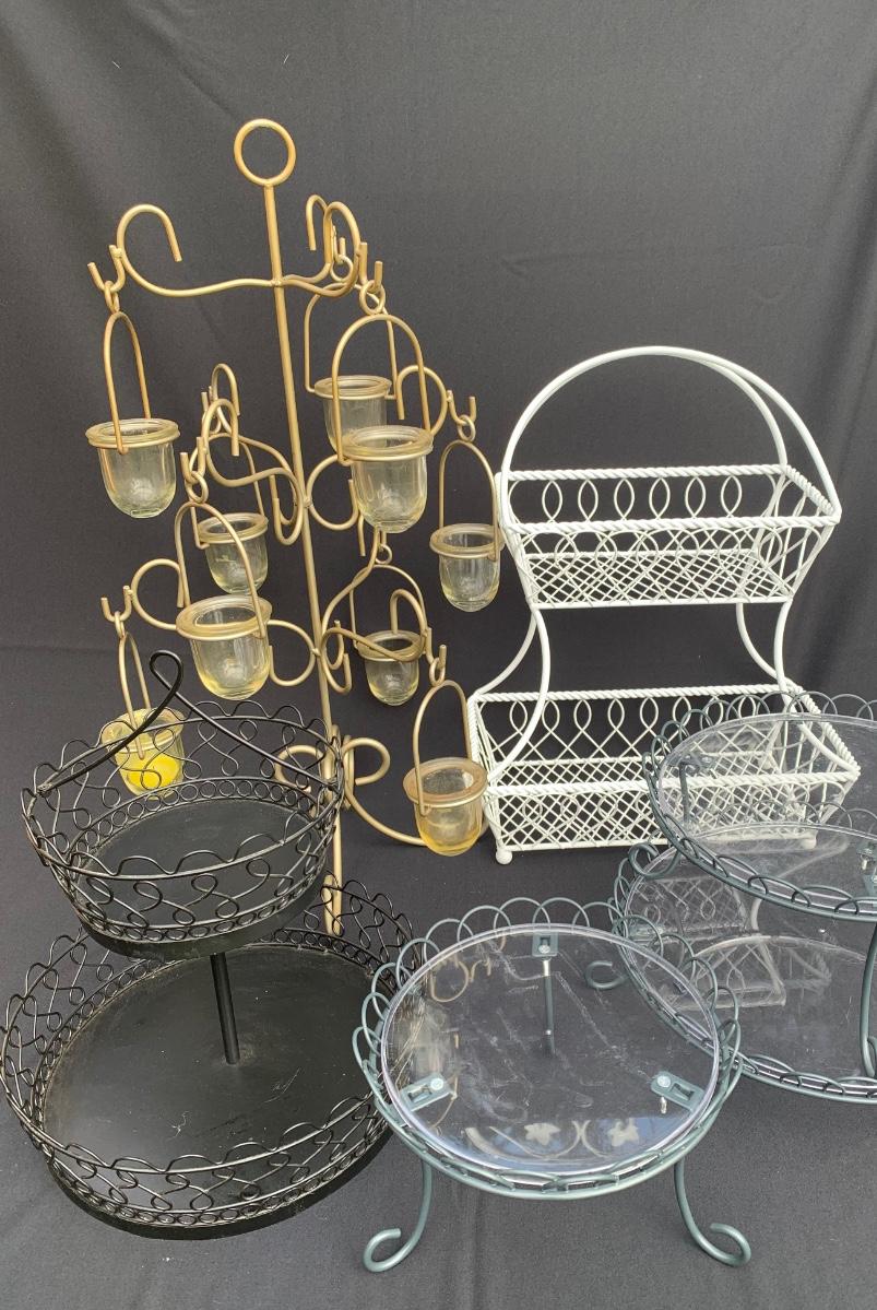 LOT 17R: Hanging Candle Holder, Wire Baskets, Tiered Serving Trays