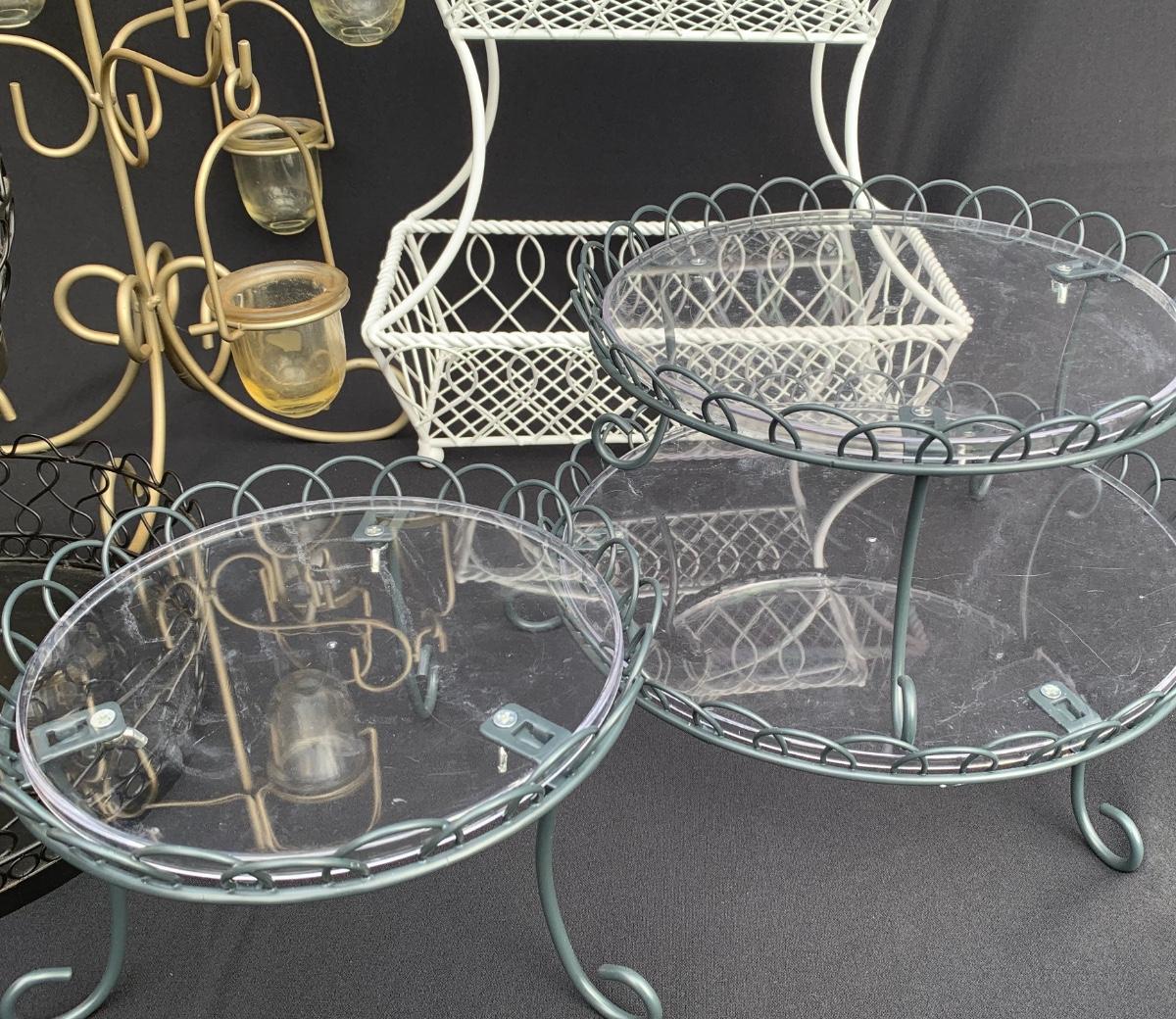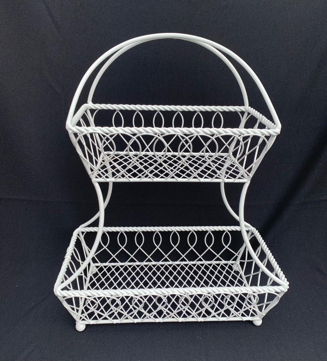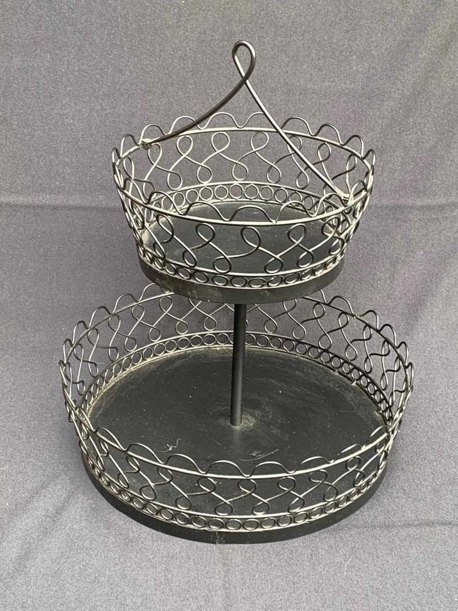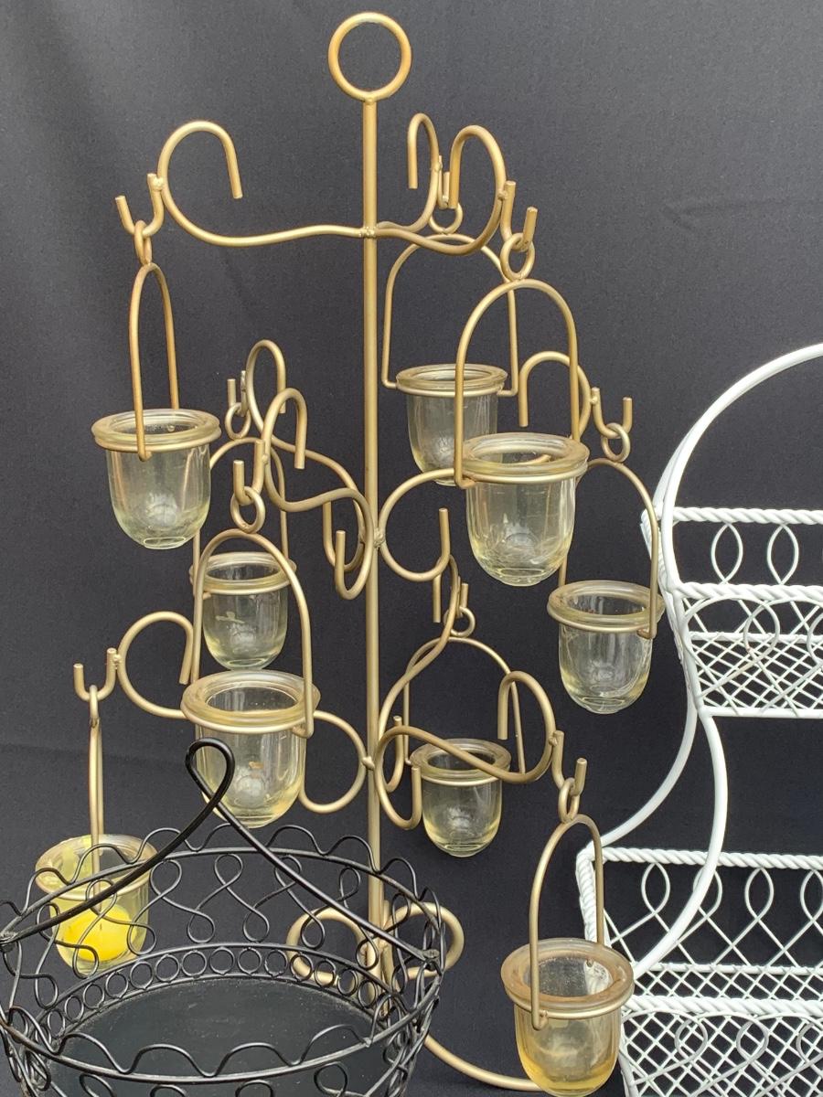 LOT 17R: Hanging Candle Holder, Wire Baskets, Tiered Serving Trays