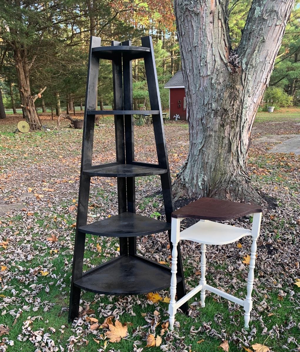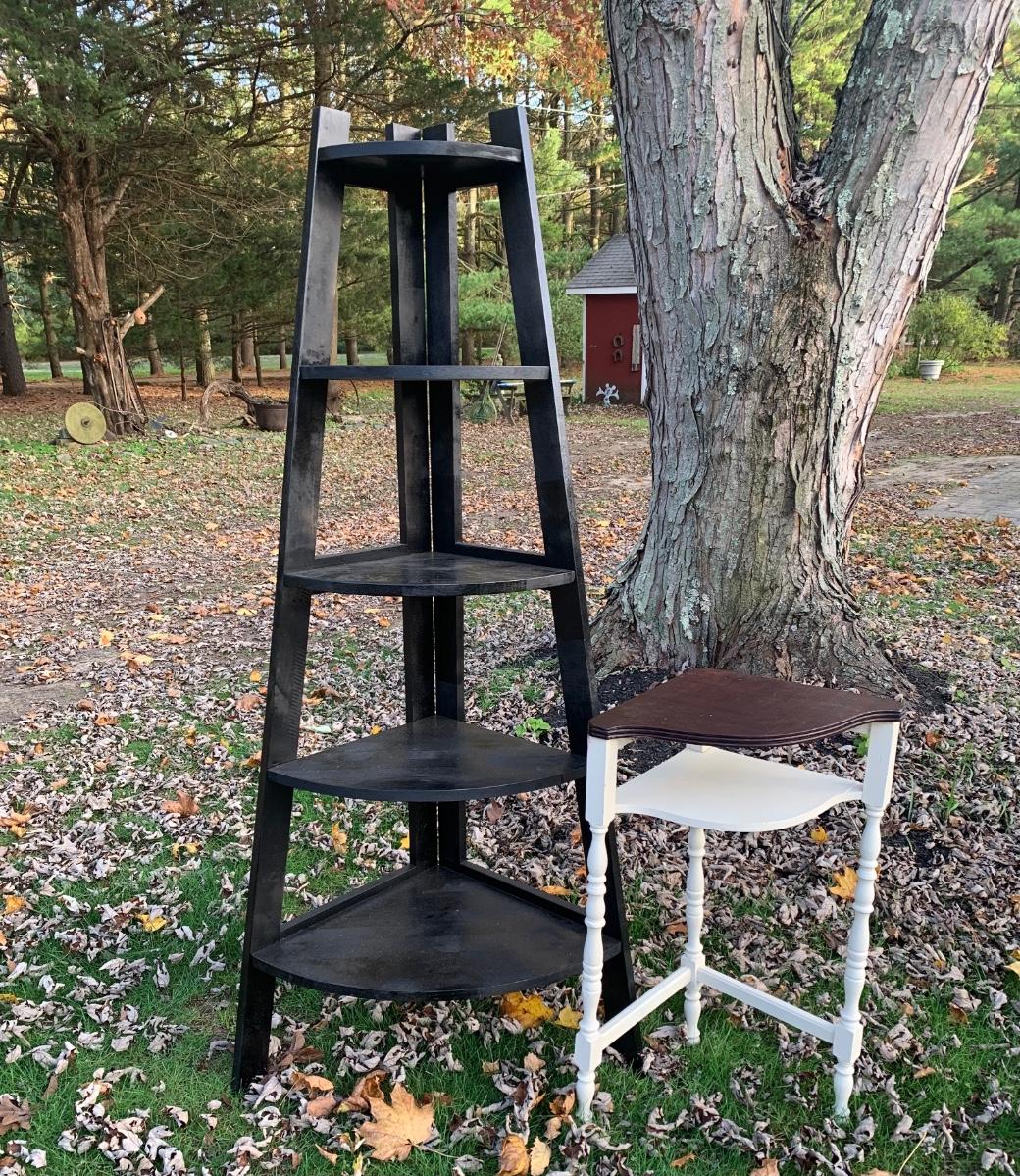 LOT 32: Pine Corner Shelf & Corner Accent Table