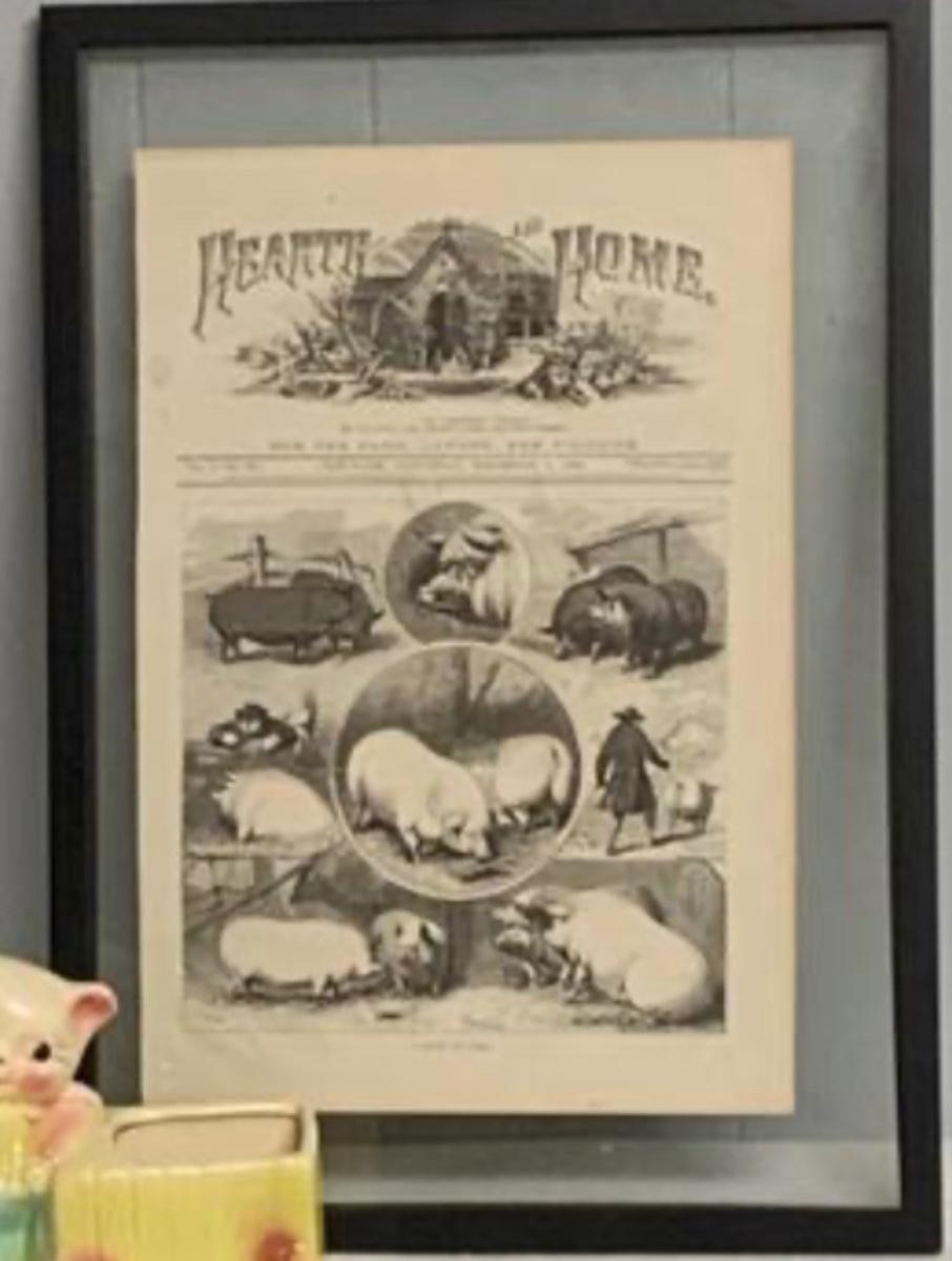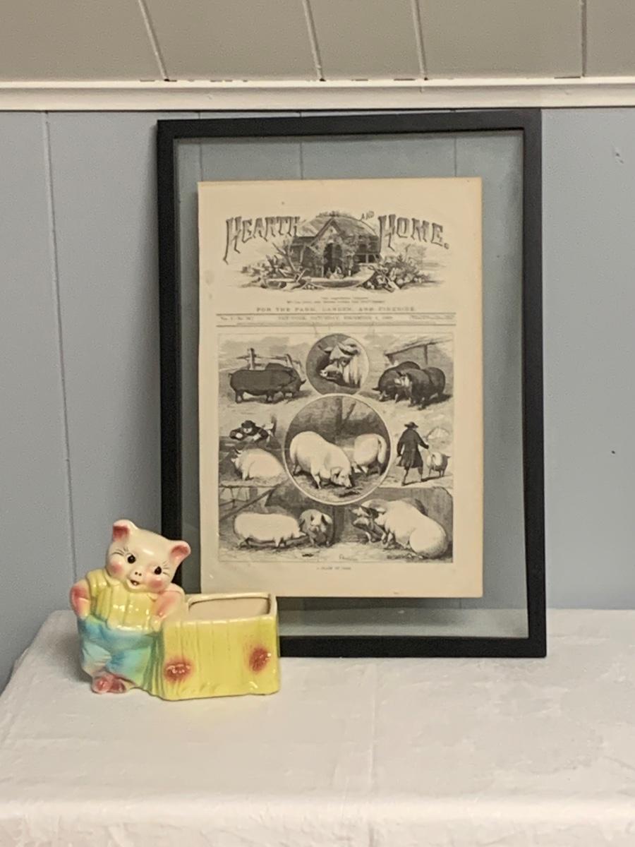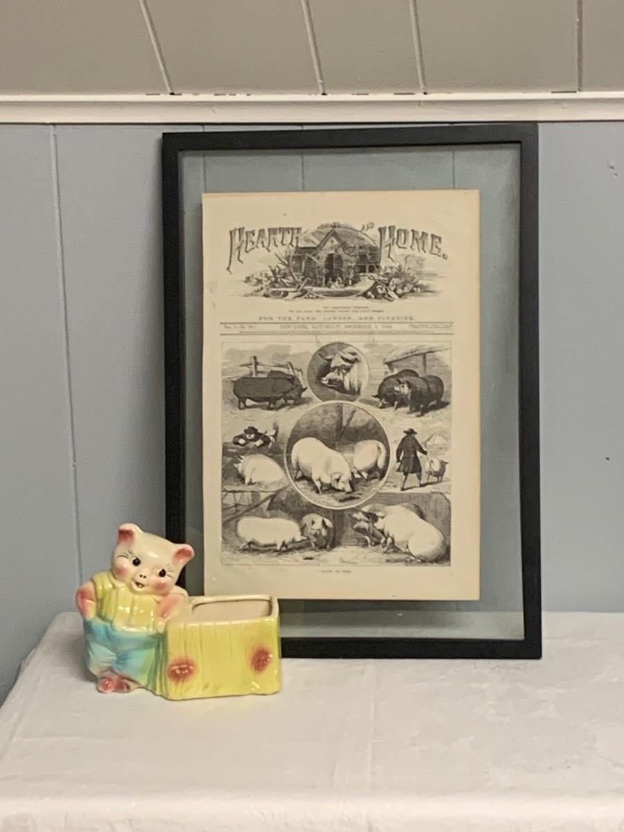 LOT 47R: Antique Hearth & Home Print w/COA & Vintage Pig Planter