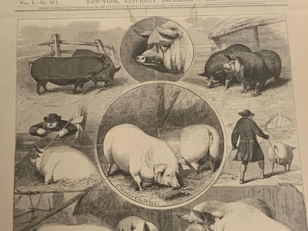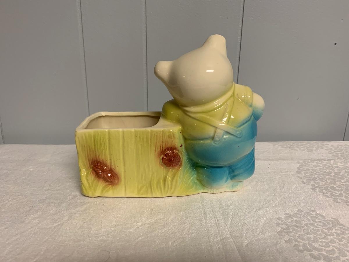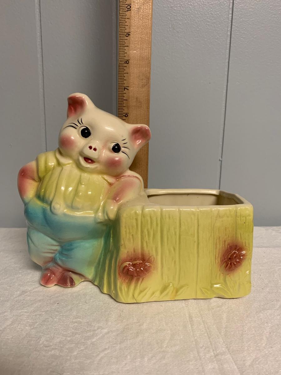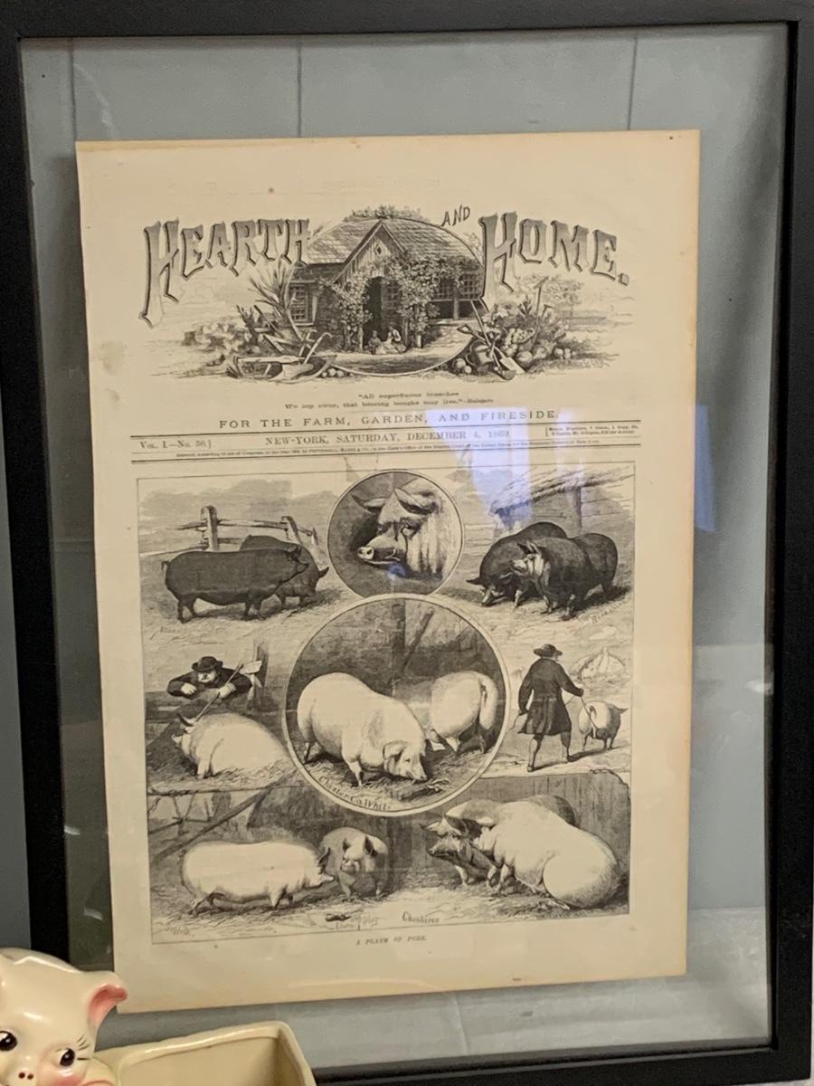 LOT 47R: Antique Hearth & Home Print w/COA & Vintage Pig Planter