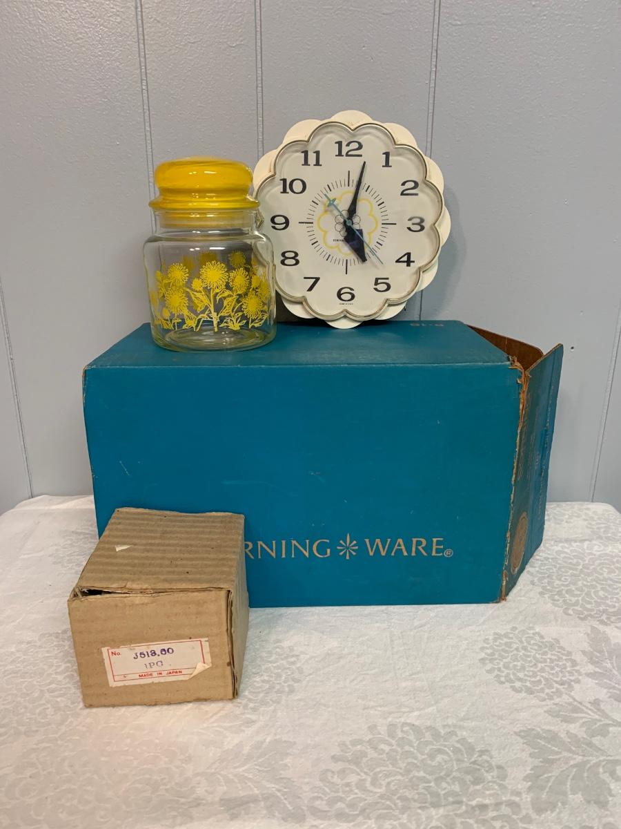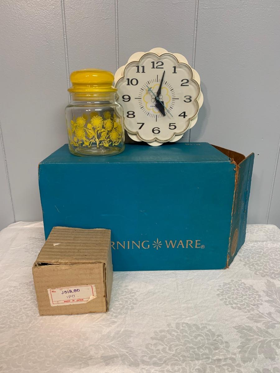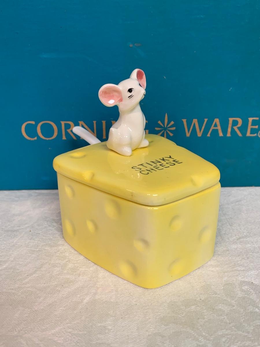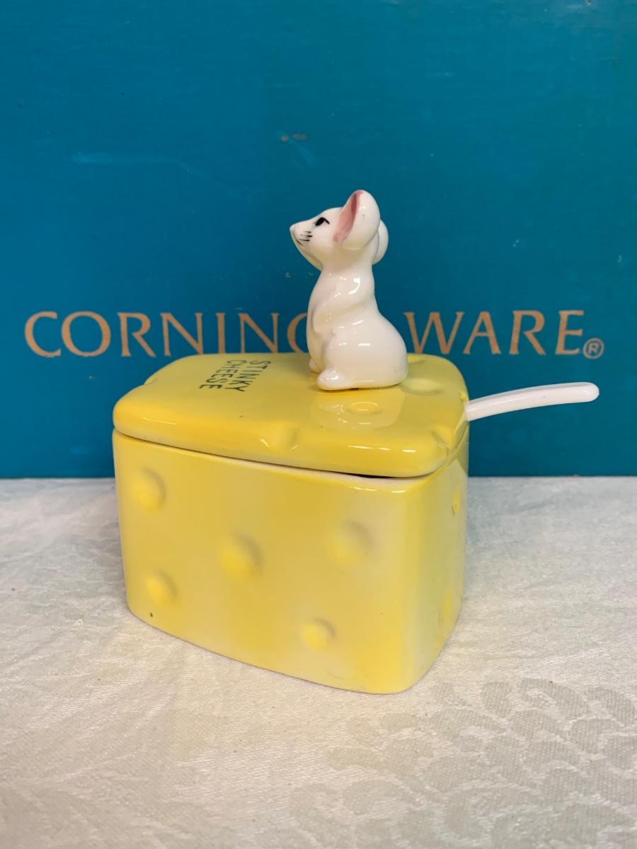 LOT 54R: Vintage Corning Cornflower Blue Bake Store Set w/Original Box, Stinky Cheese Mouse & More