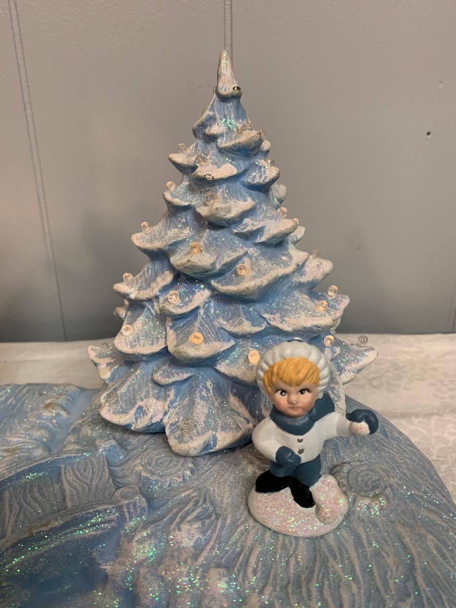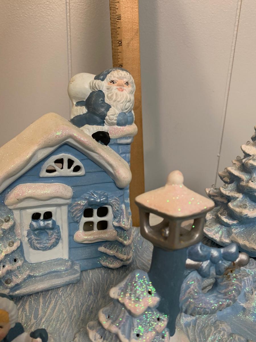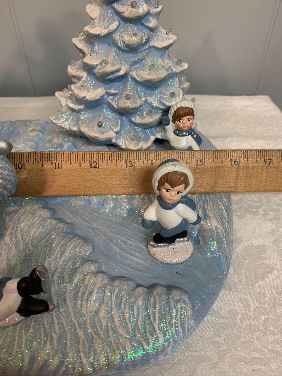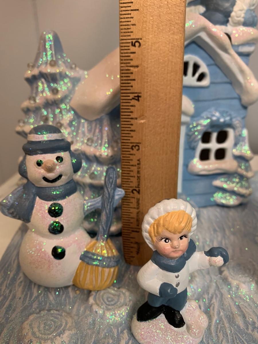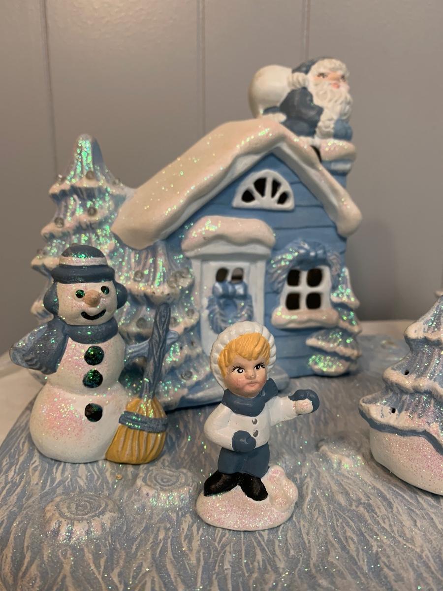LOT 58R: Ceramic Glittery Light Up Christmas House w/Skaters & Snowman