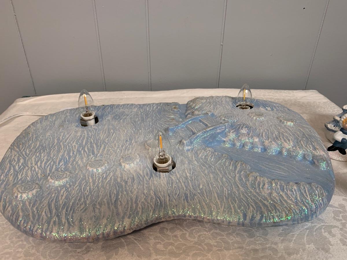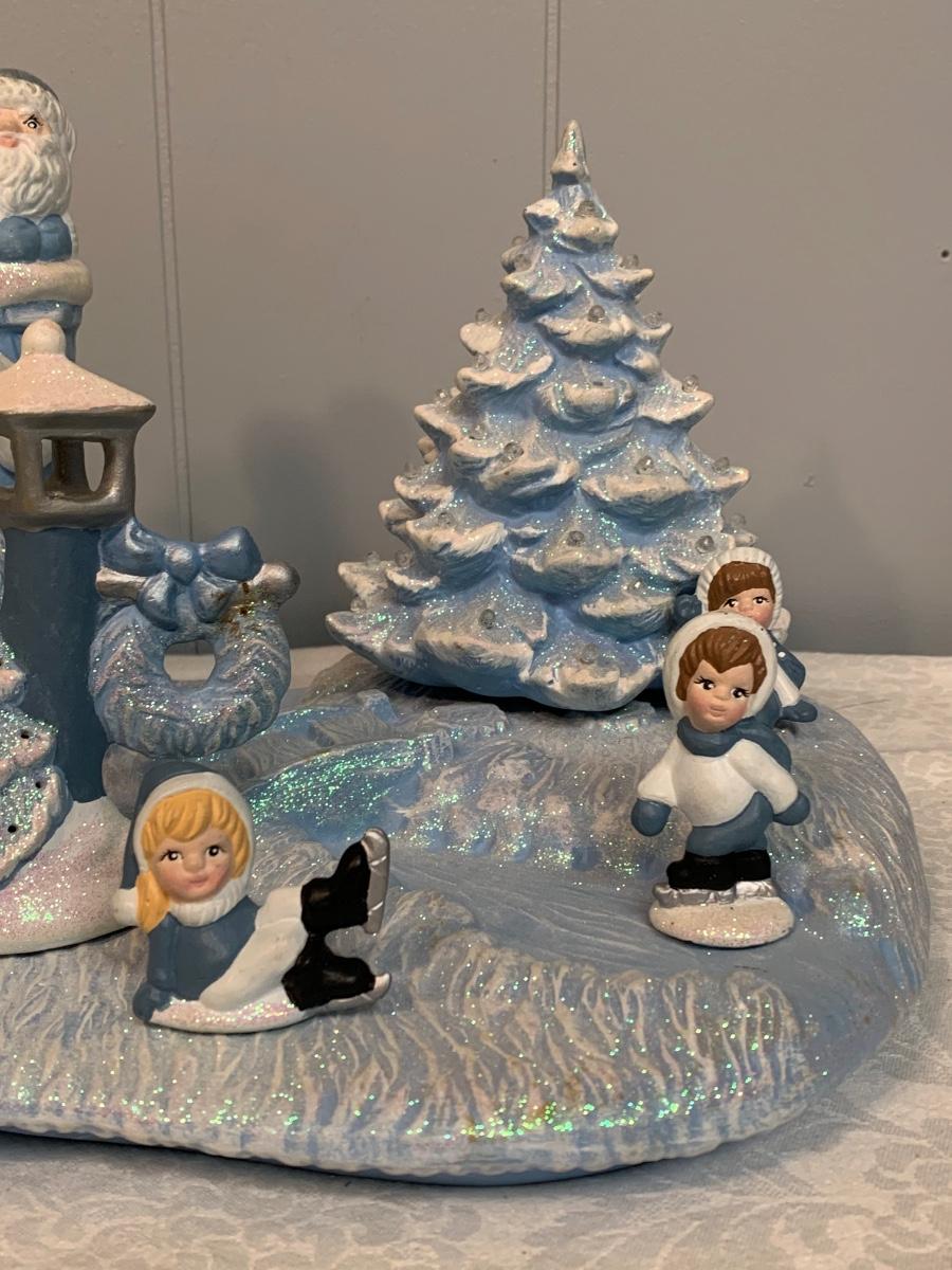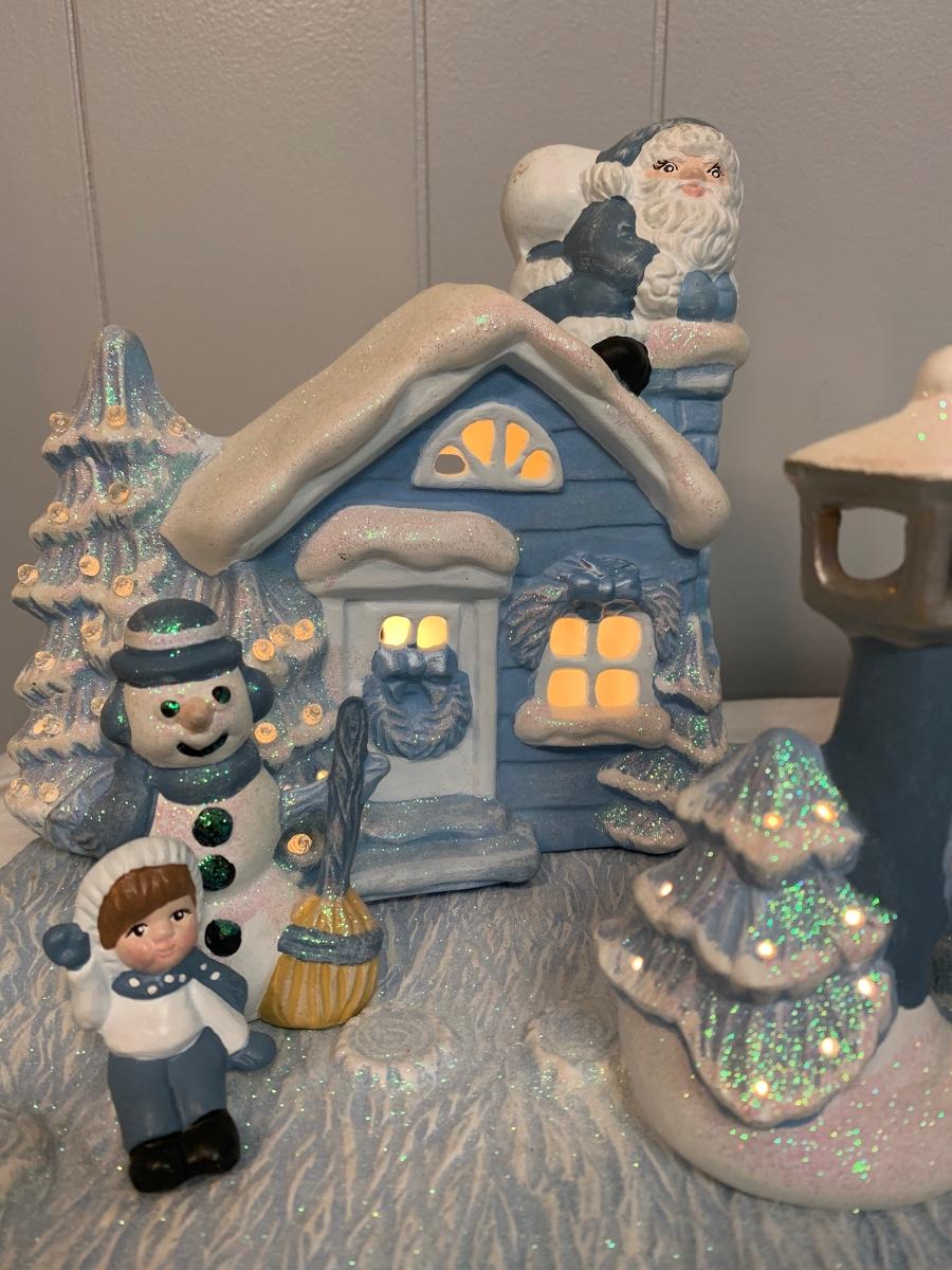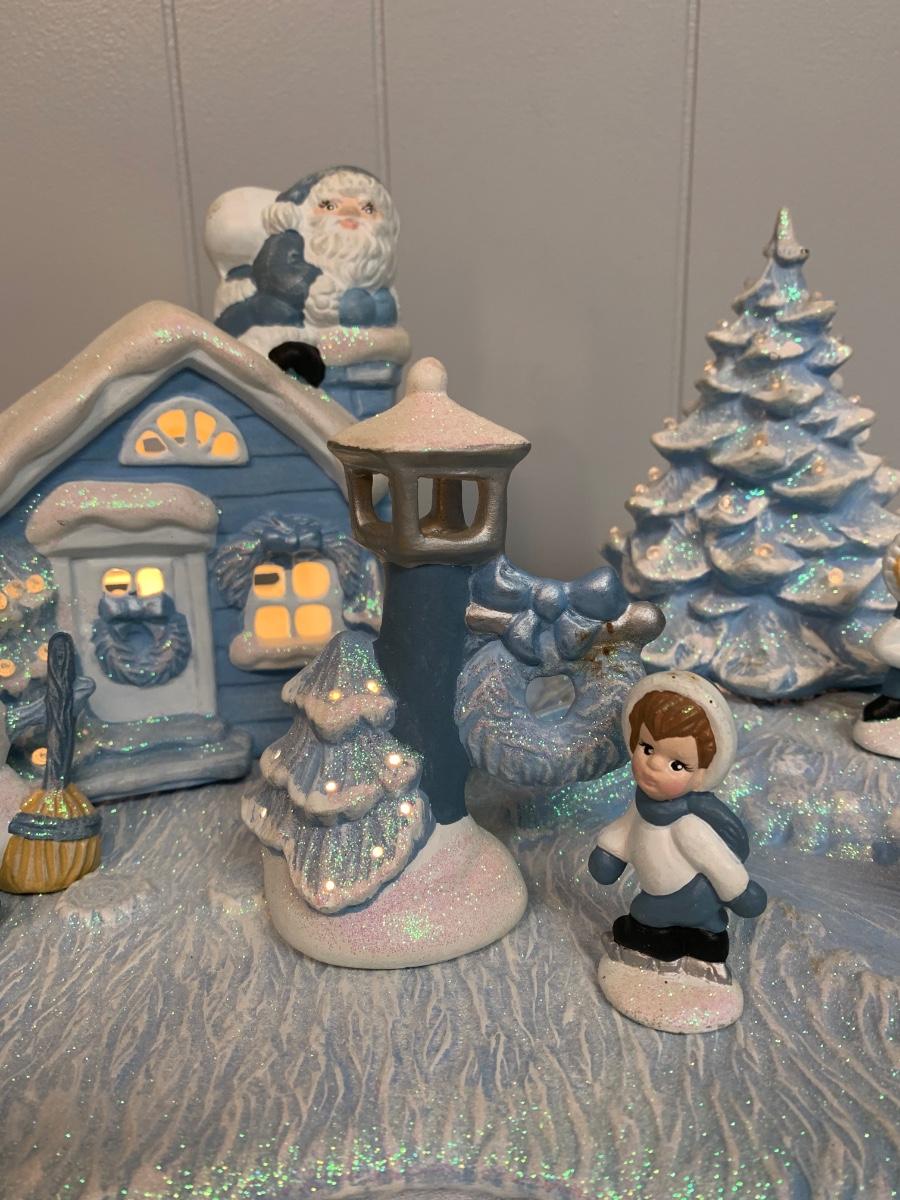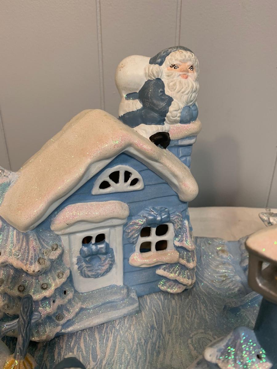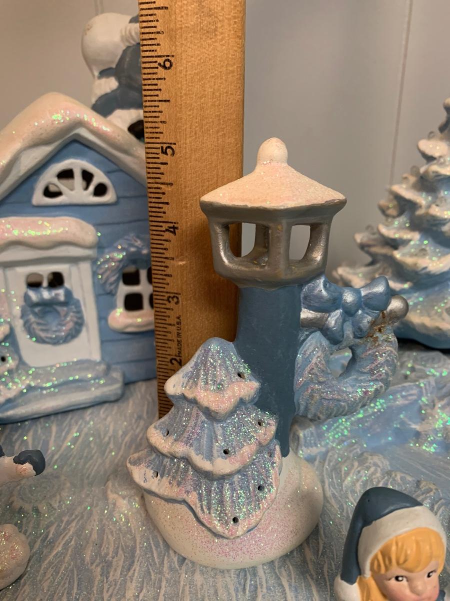 LOT 58R: Ceramic Glittery Light Up Christmas House w/Skaters & Snowman