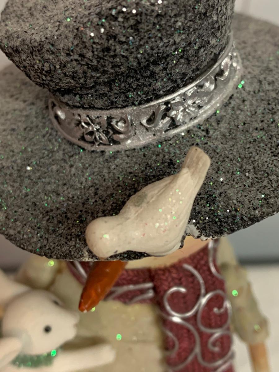 As pictured the Birch Hearts Snowman has been repaired however is it still a wonderful winter piece.