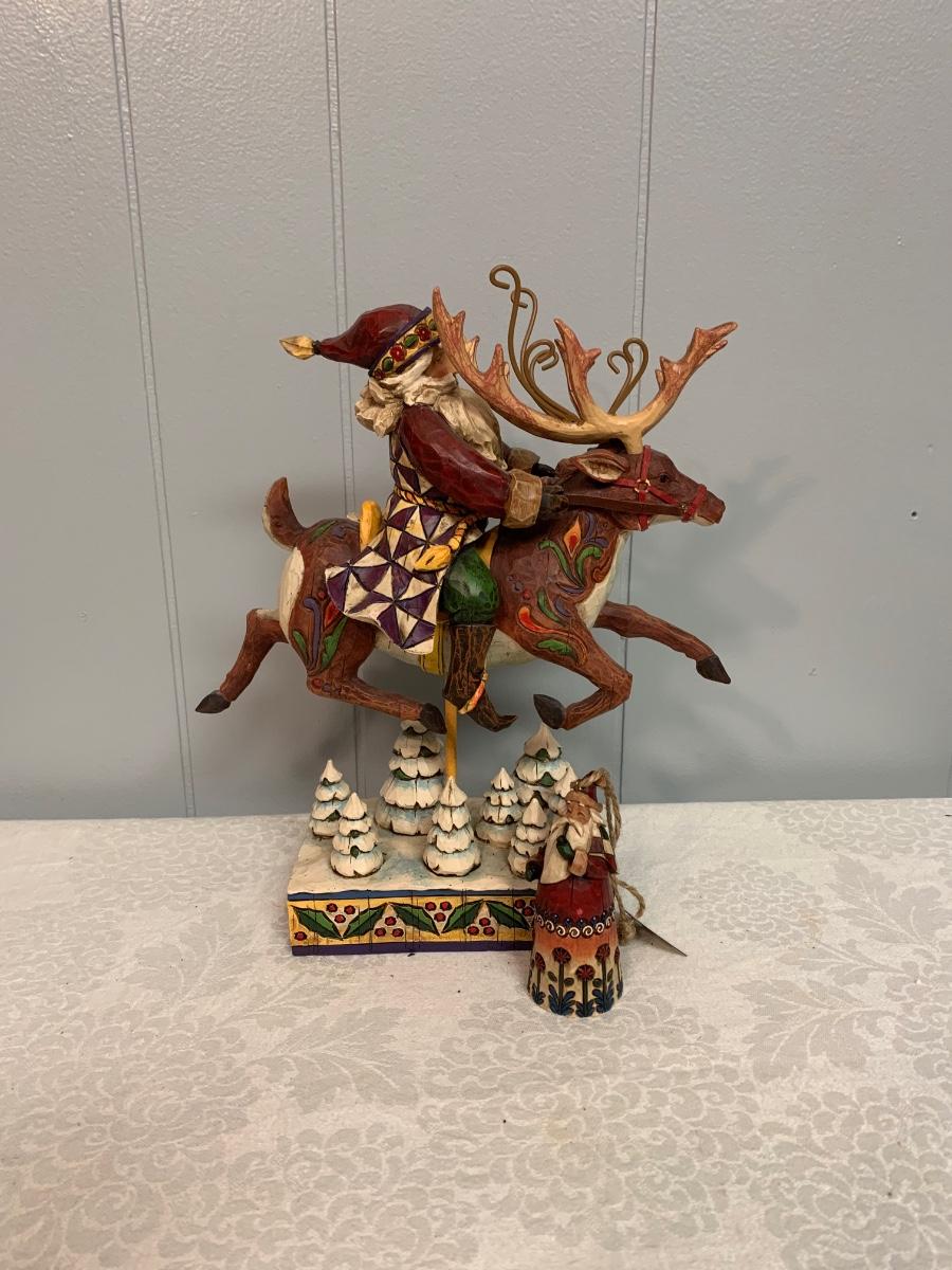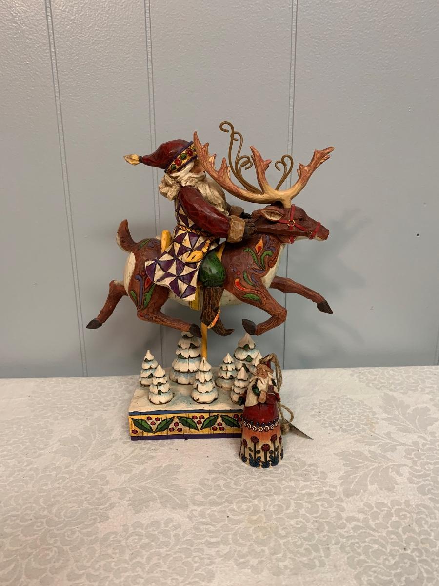 LOT 71R: Jim Shore Heartwood Creek Santa Did Ride w/Original Box & Santa Ornament