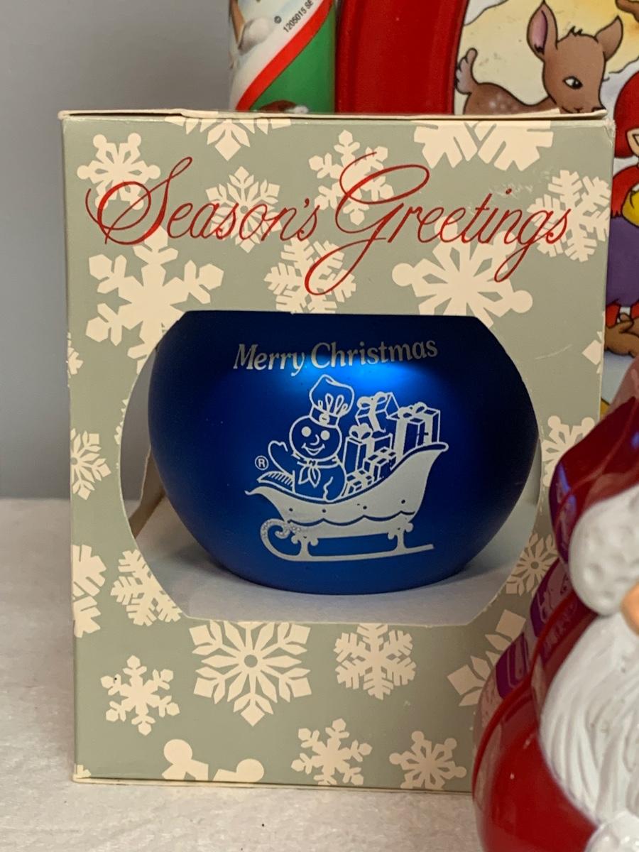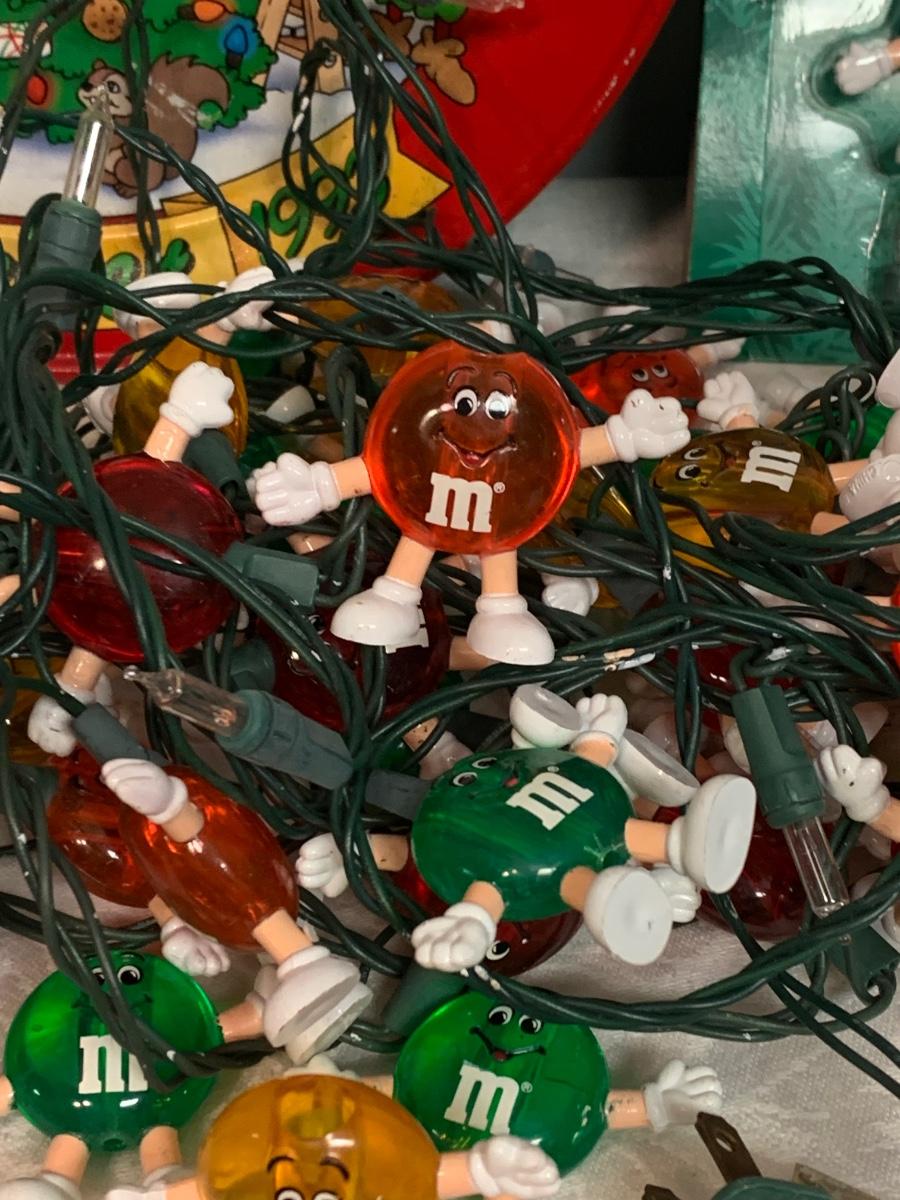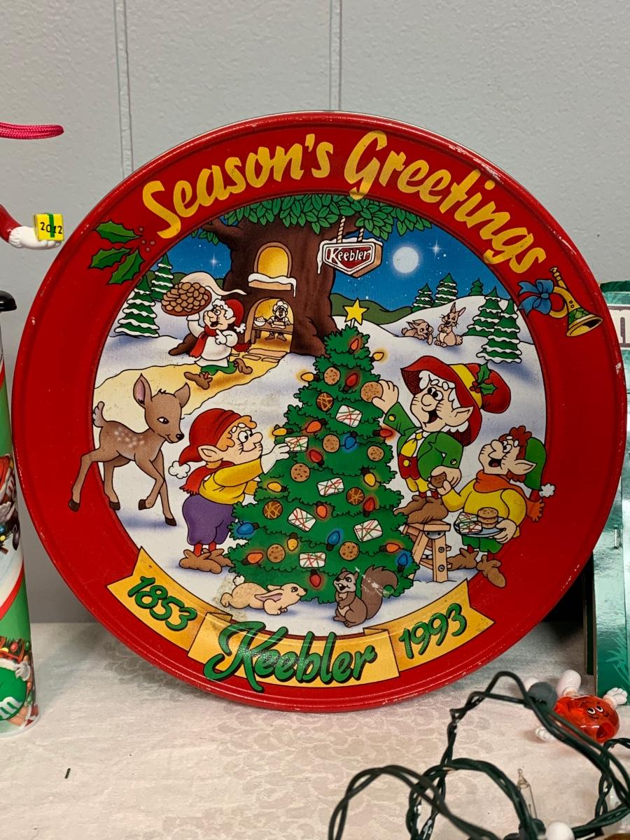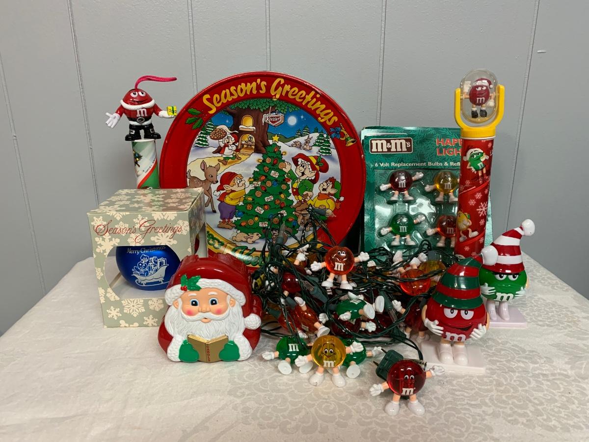 LOT 74R: Holiday M & M Light Covers, Pillsbury Ornament, Keebler Cookie Tin