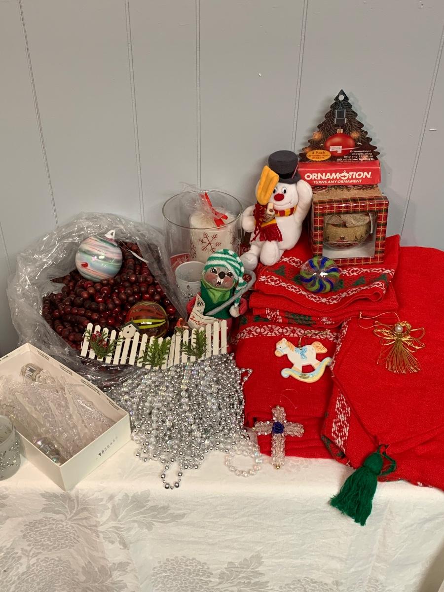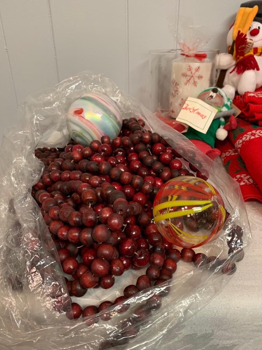 LOT 75R: Holiday Tree Trimming w/Wooden Beads & Hand Blown Glass Ornaments, Annalee, Frosty & More