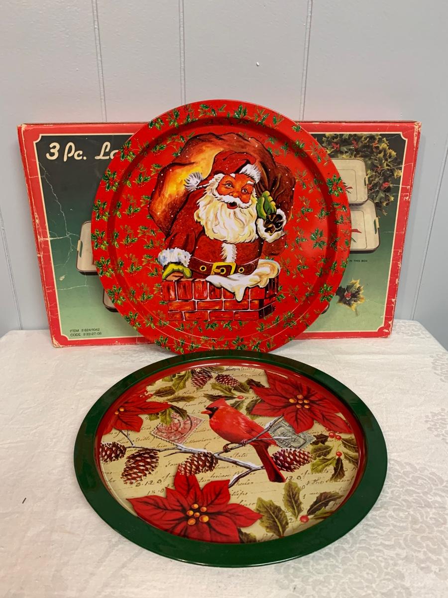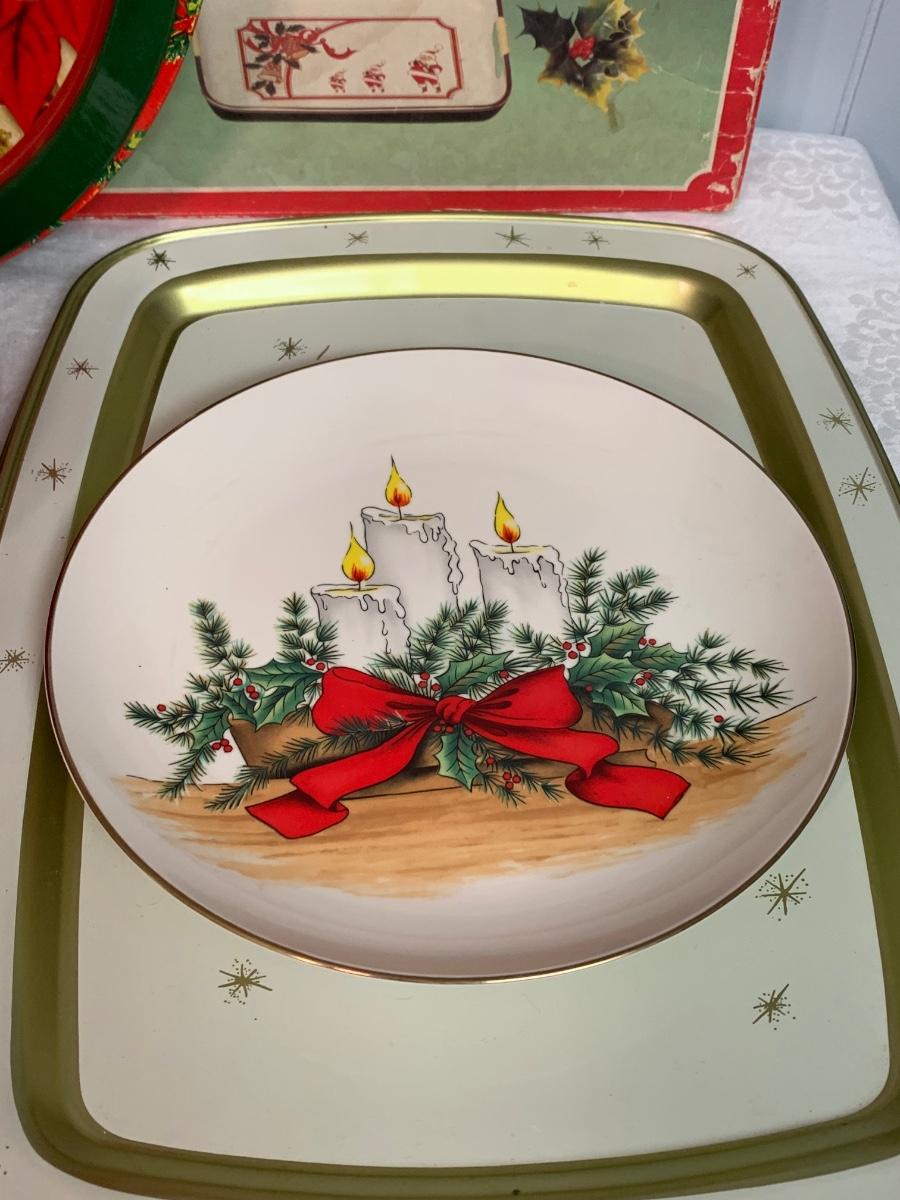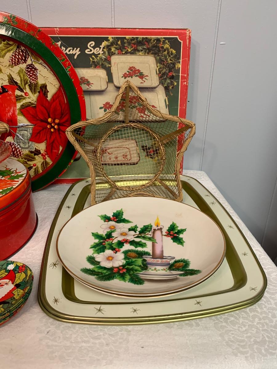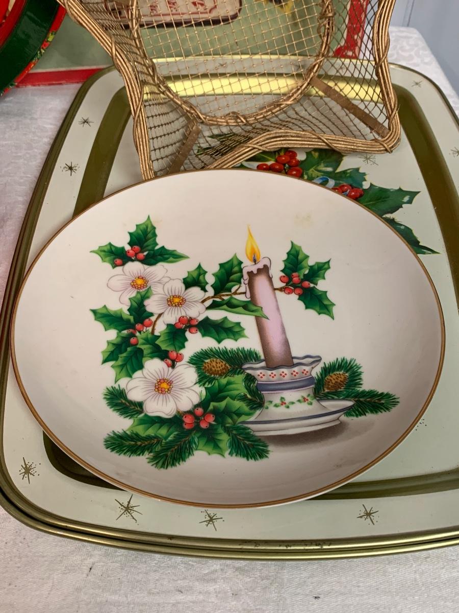 LOT 76R: Wheaton Hand Blown Plate, Vintage Holiday Trays, 3Pc. Lacquerware Tray Set (New Inbox)