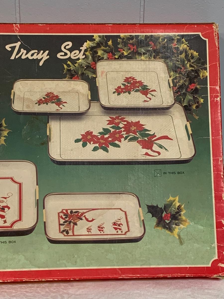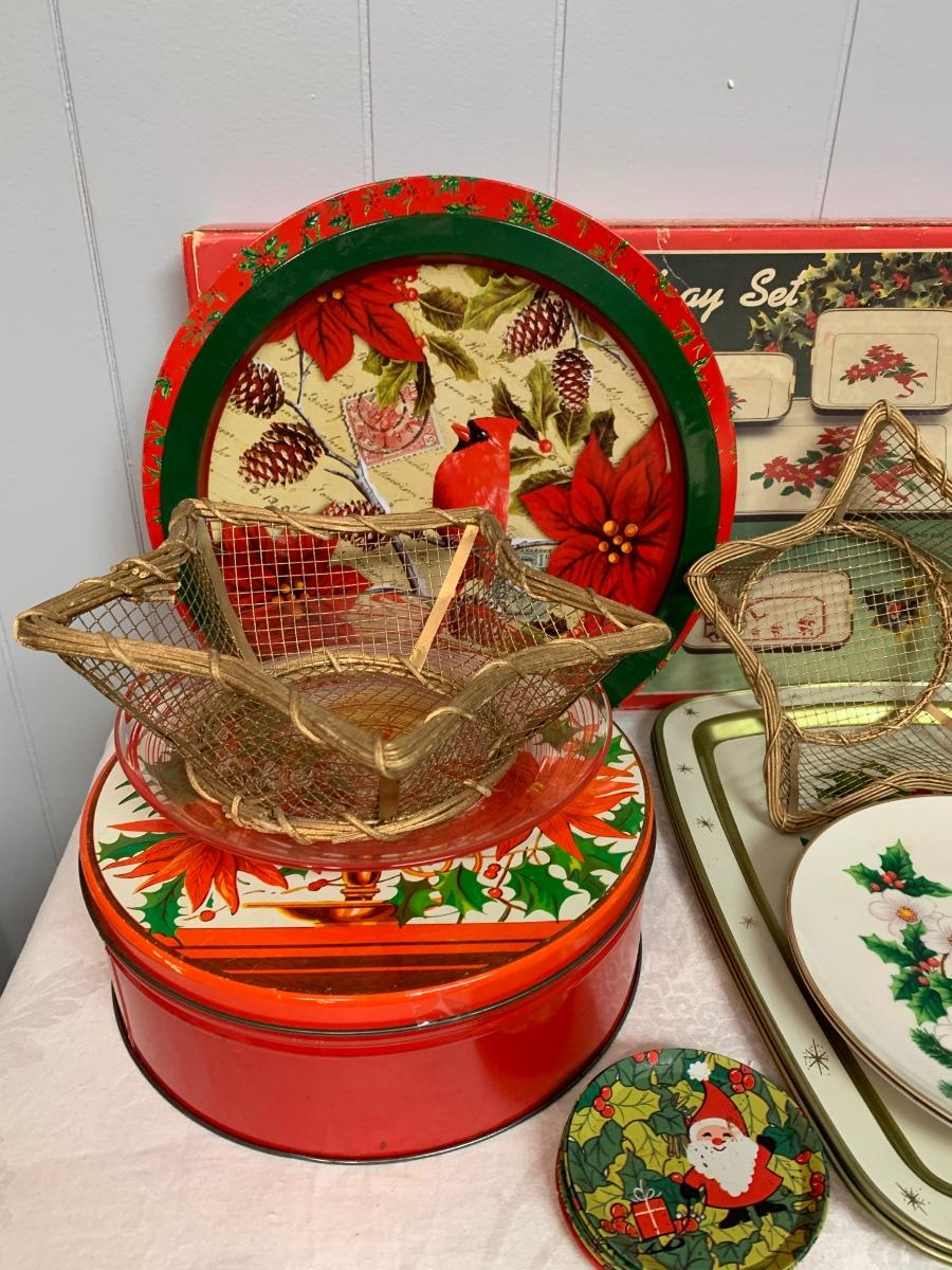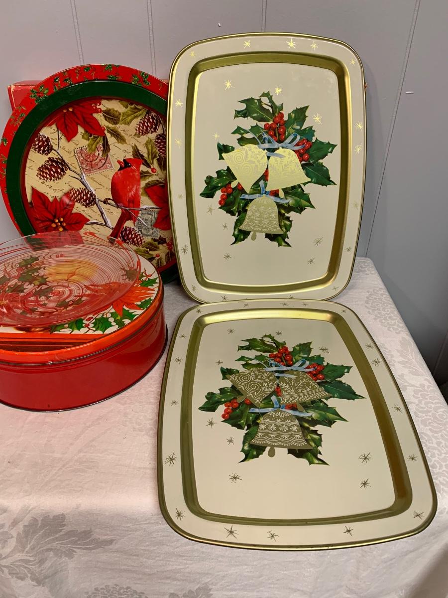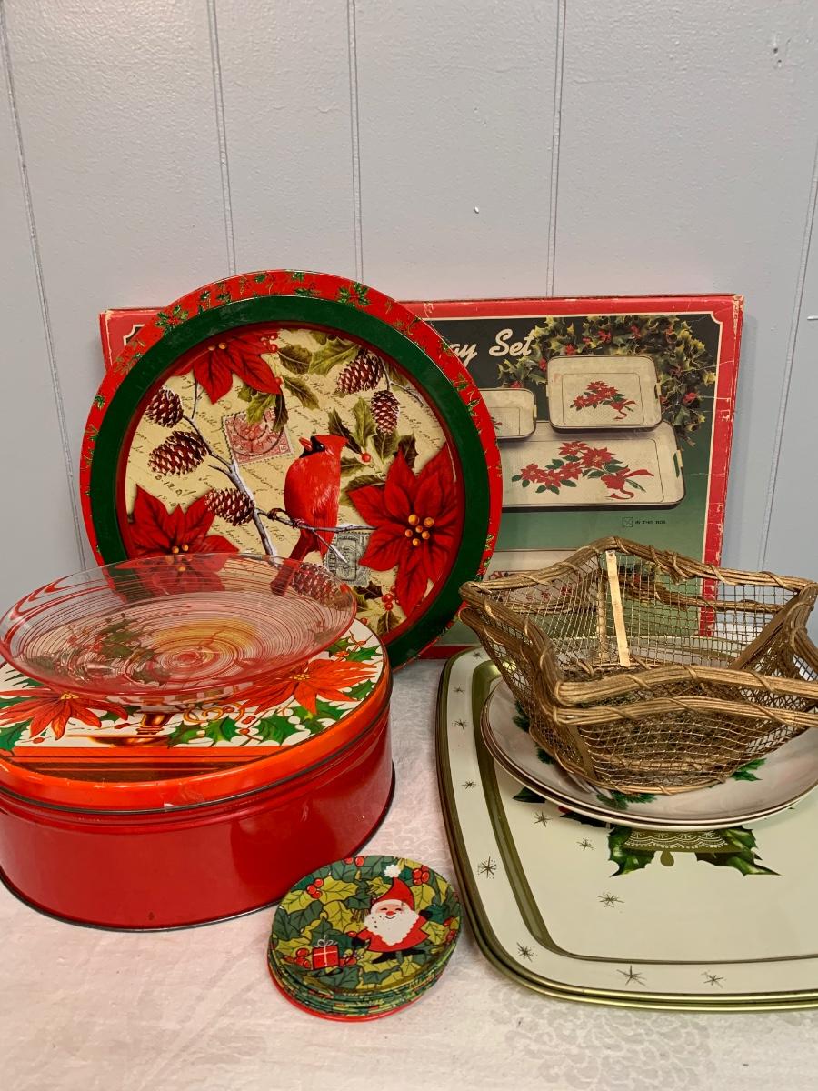 LOT 76R: Wheaton Hand Blown Plate, Vintage Holiday Trays, 3Pc. Lacquerware Tray Set (New Inbox)