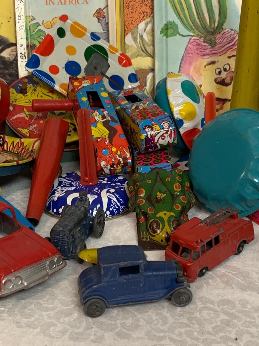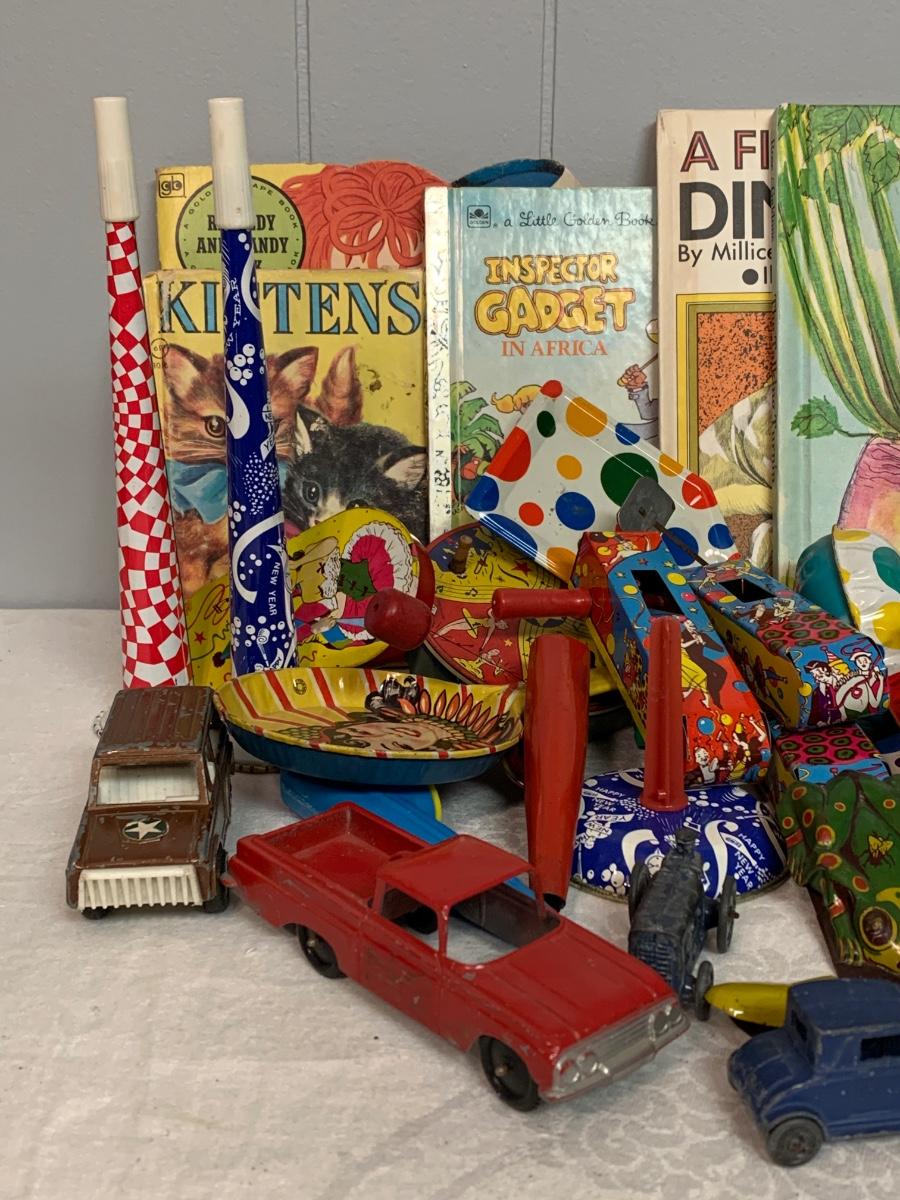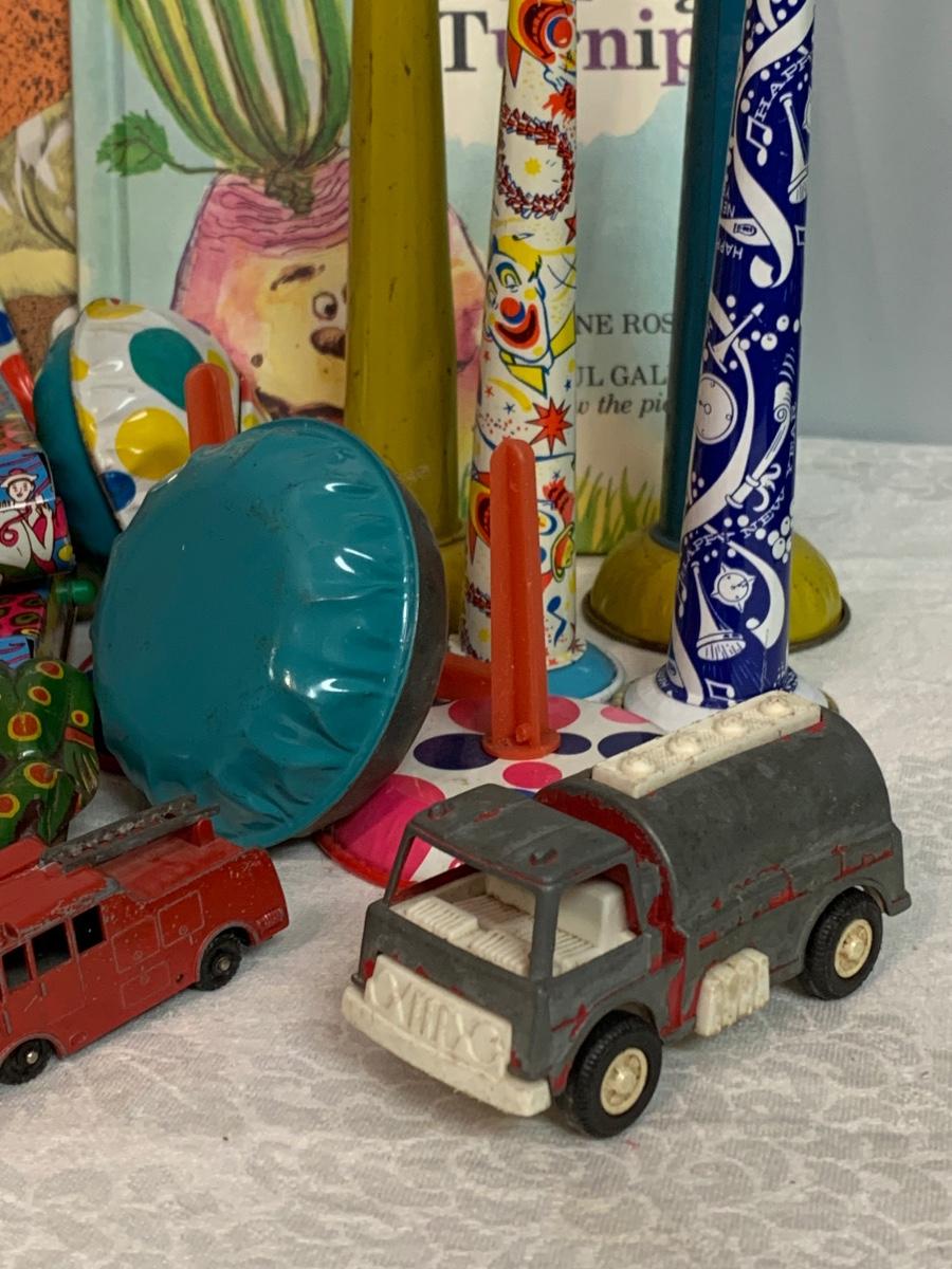 LOT 80R: Vintage Collection of Tootsie Cars/Trucks, Noisemakers & Storybooks