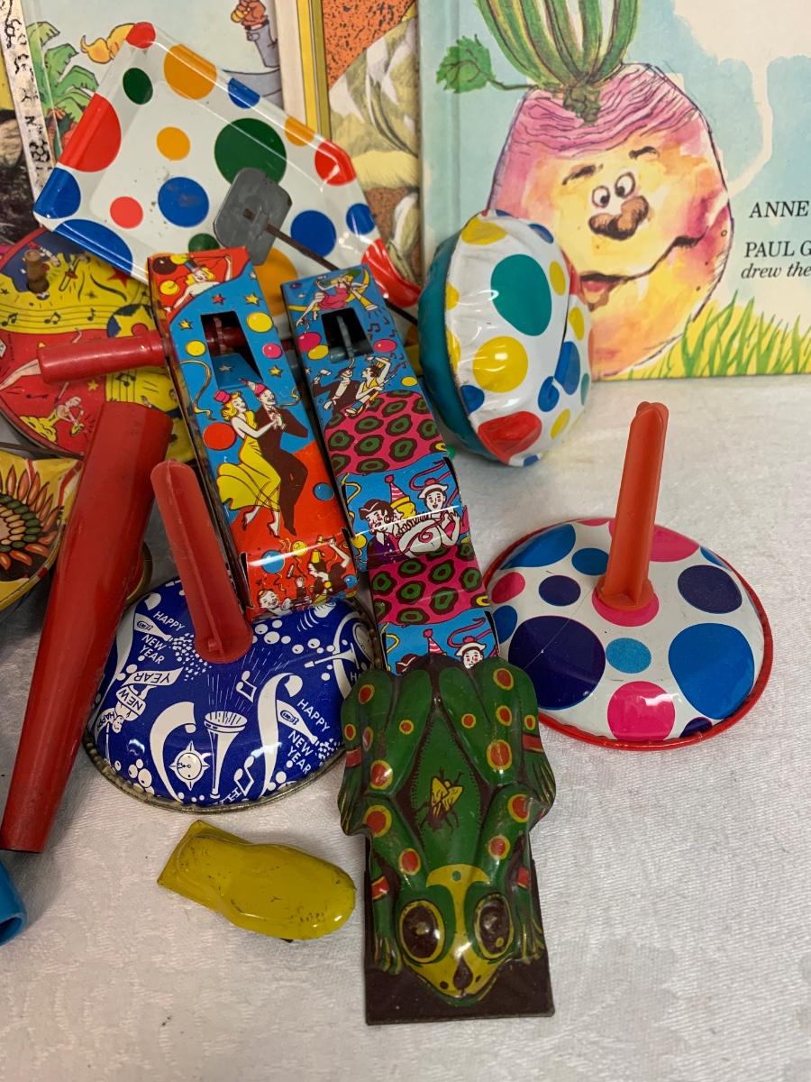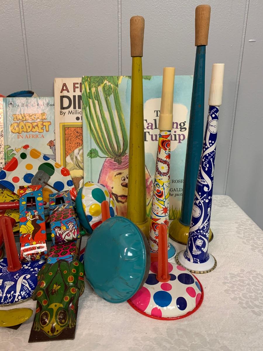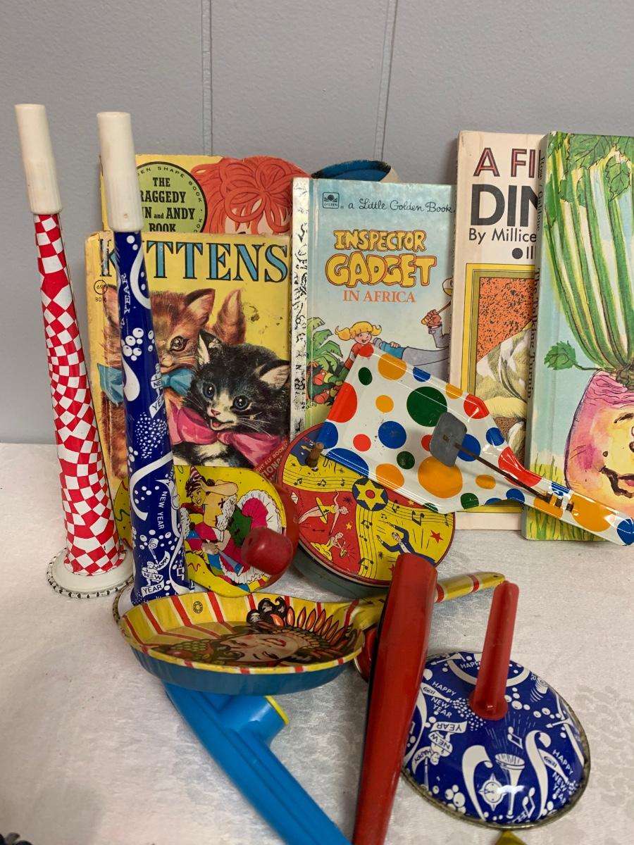 LOT 80R: Vintage Collection of Tootsie Cars/Trucks, Noisemakers & Storybooks