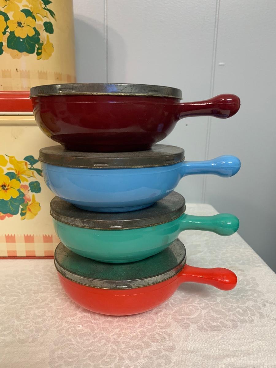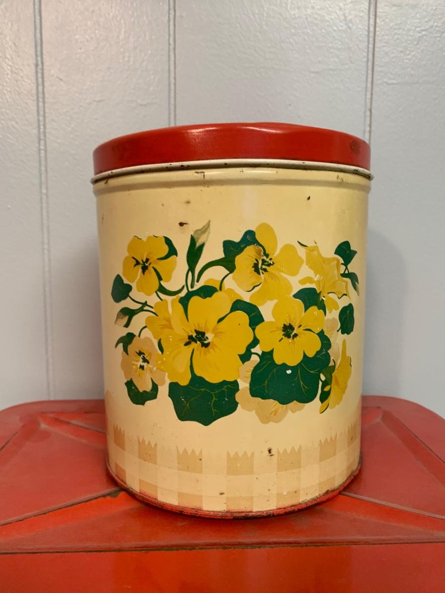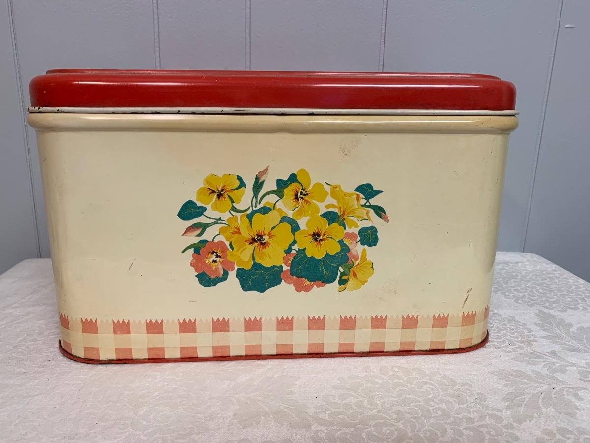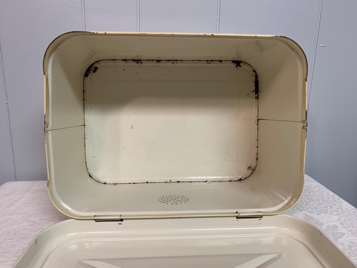 LOT 83R: Vtg Harmony Farms Glasbake  Creamed Cottage Cheese Containers, Vtg Bread Tin & Canisters