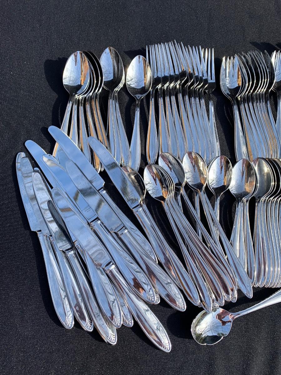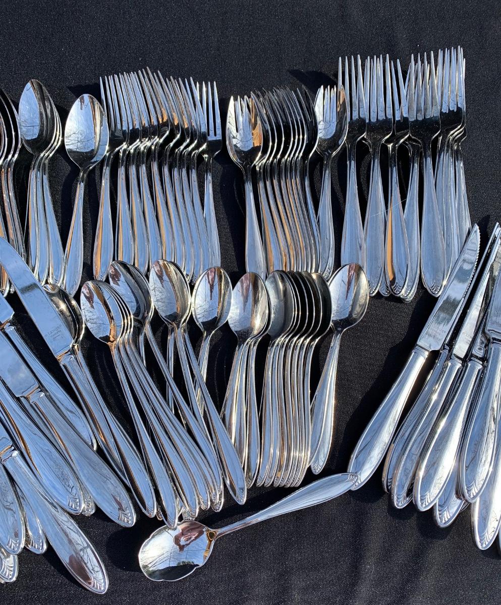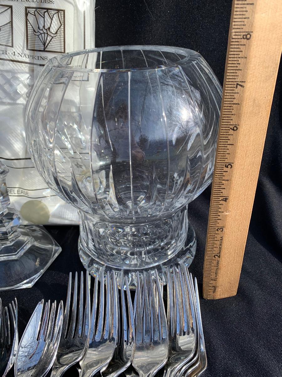 LOT 86R: Crystal 2pcs Hurricane Candle Holders, Lenox Flatware (93 pcs)