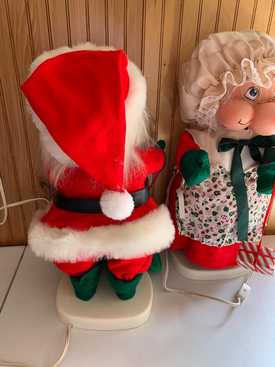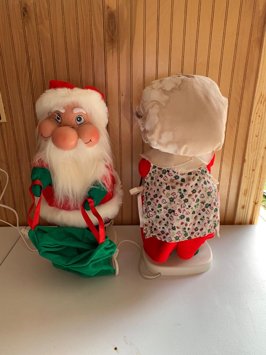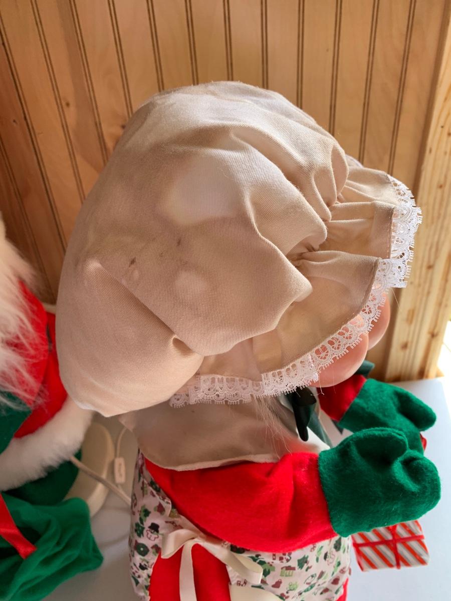 Working, Mrs Clause's bonnet looks to be water stained and both boxes have condition issues