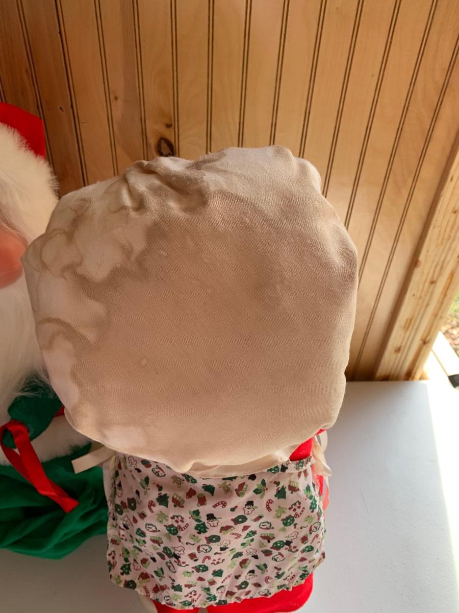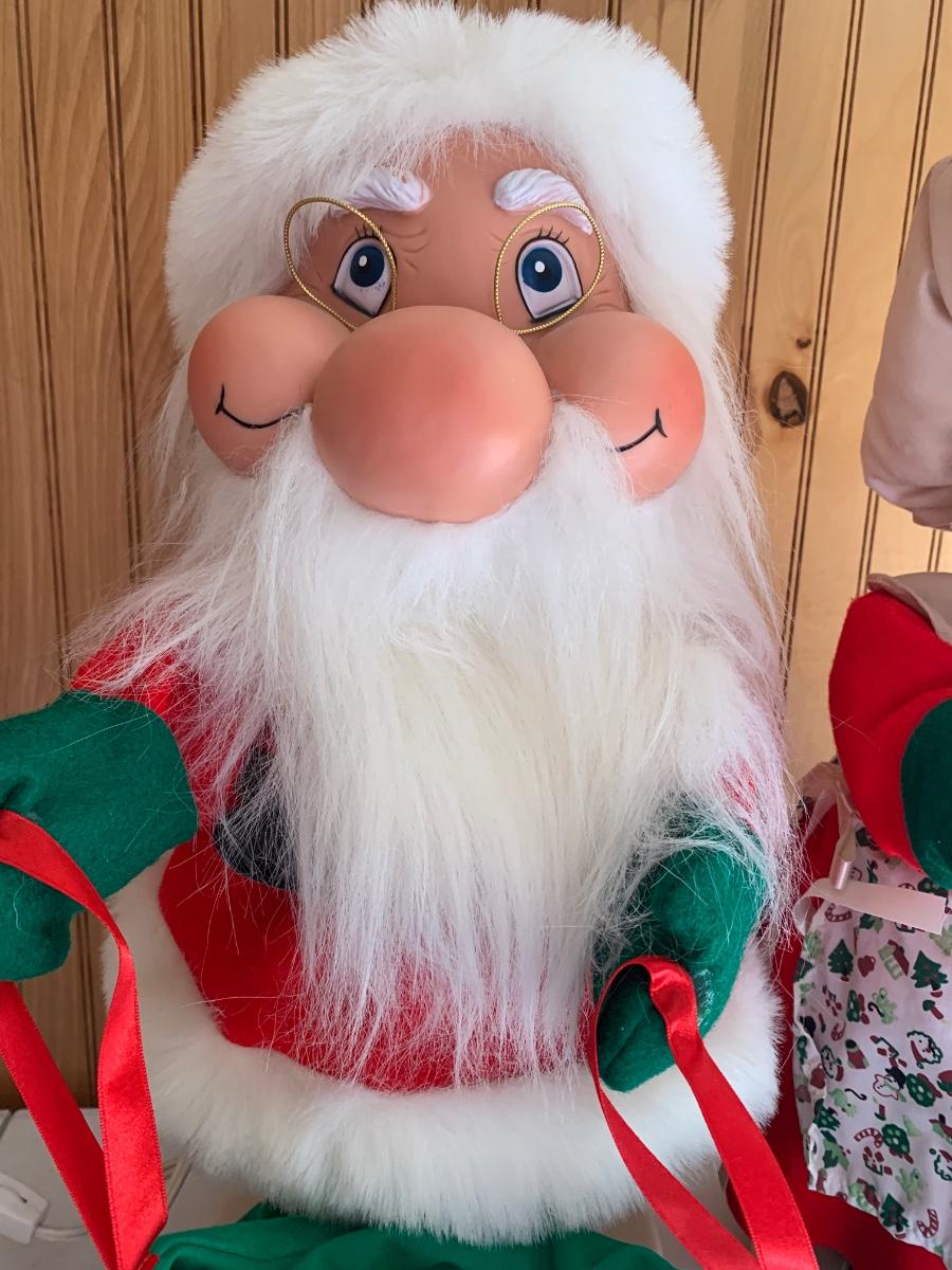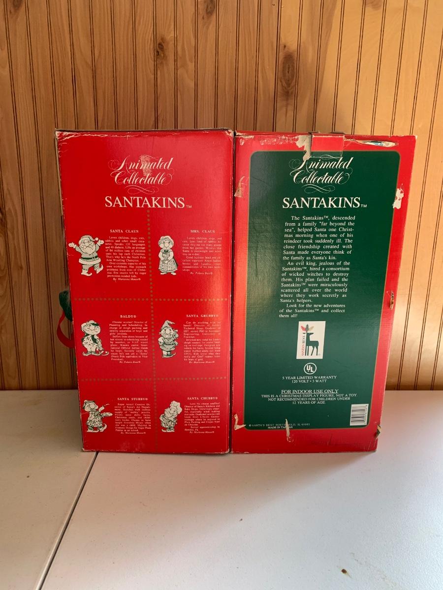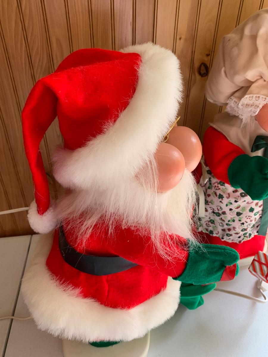 Working, Mrs Clause's bonnet looks to be water stained and both boxes have condition issues