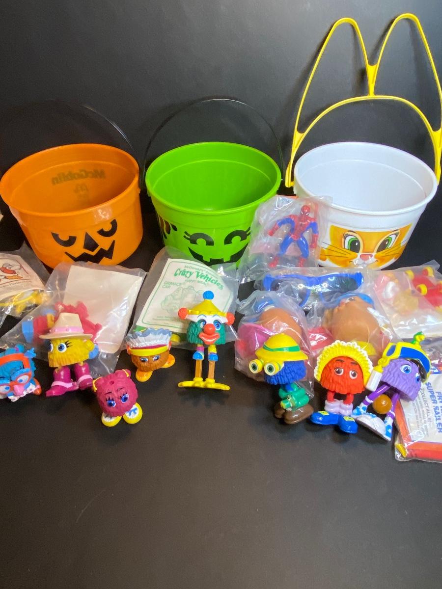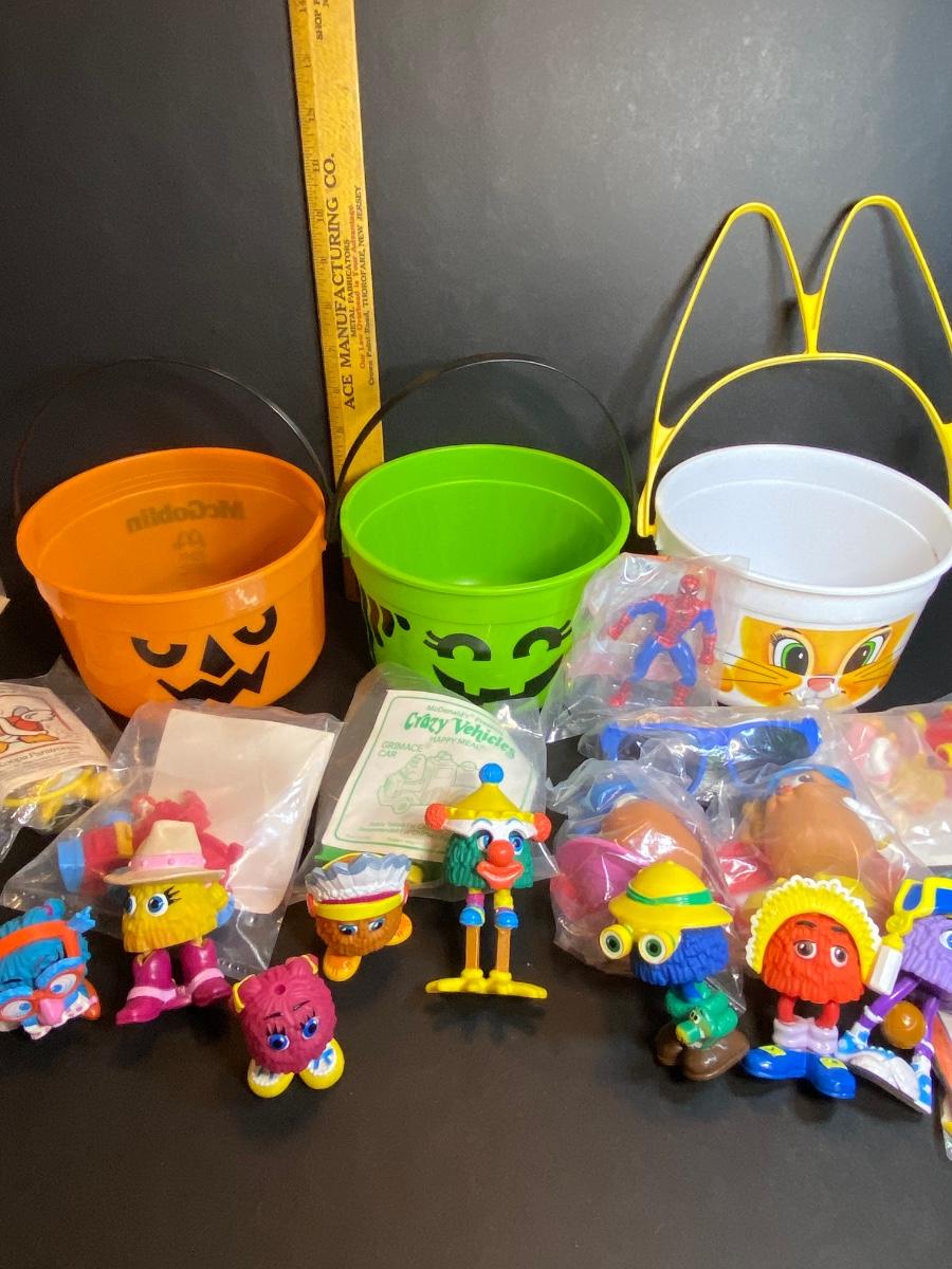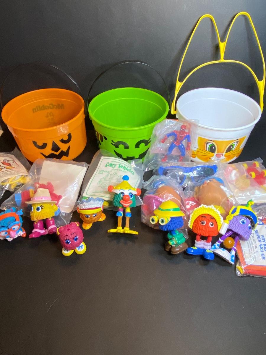 LOT 120: Vintage McDonald’s Fry Guys, Unopened Happy Meal Toys and Happy Meal Buckets