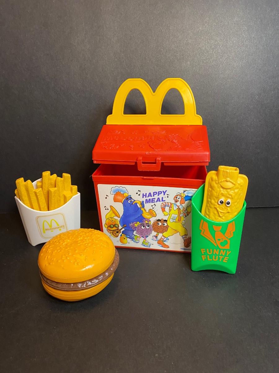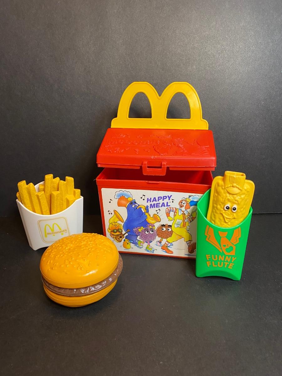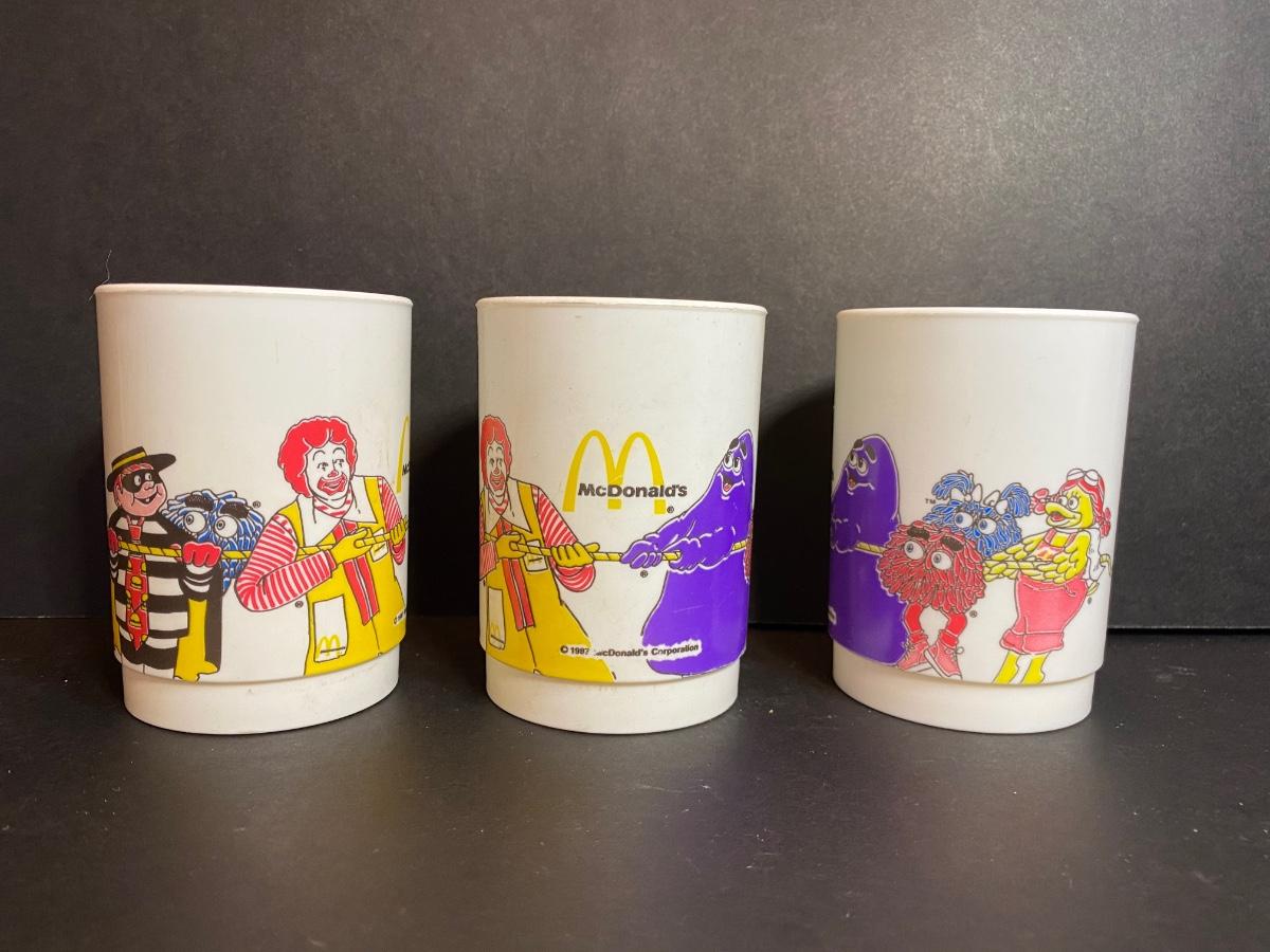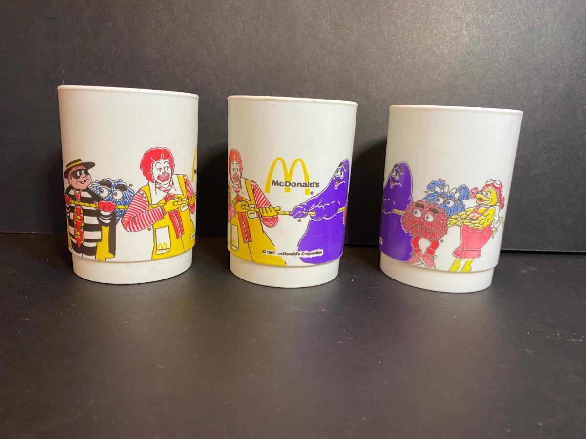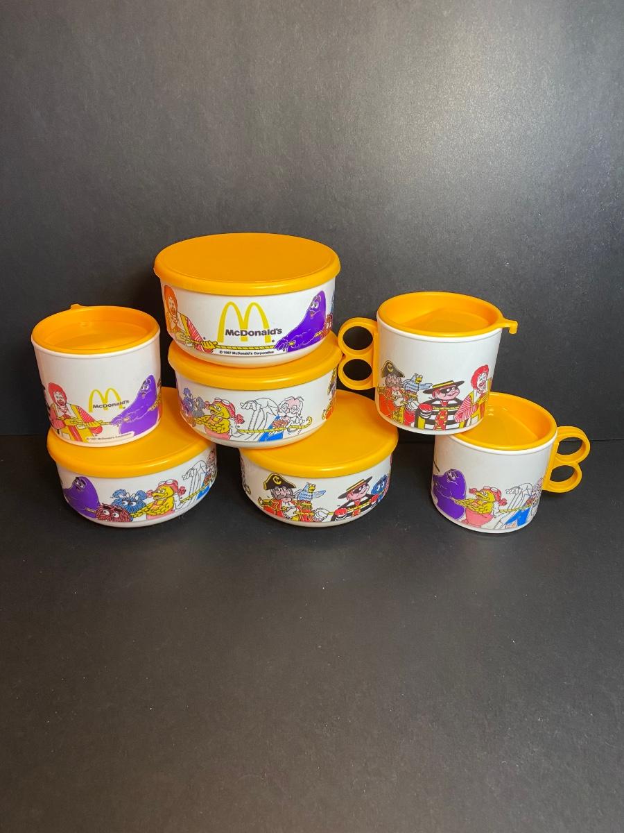 LOT 122: Vintage McDonald’s Happy Meal Toys, unopened Gift Wrap and Cup/ Bowls w Lids