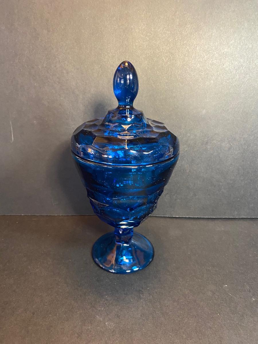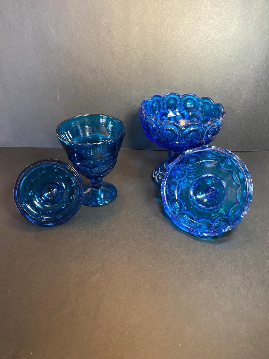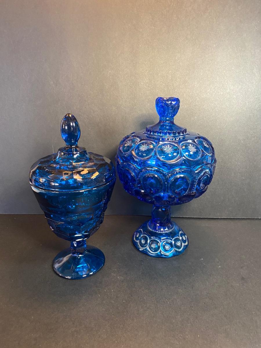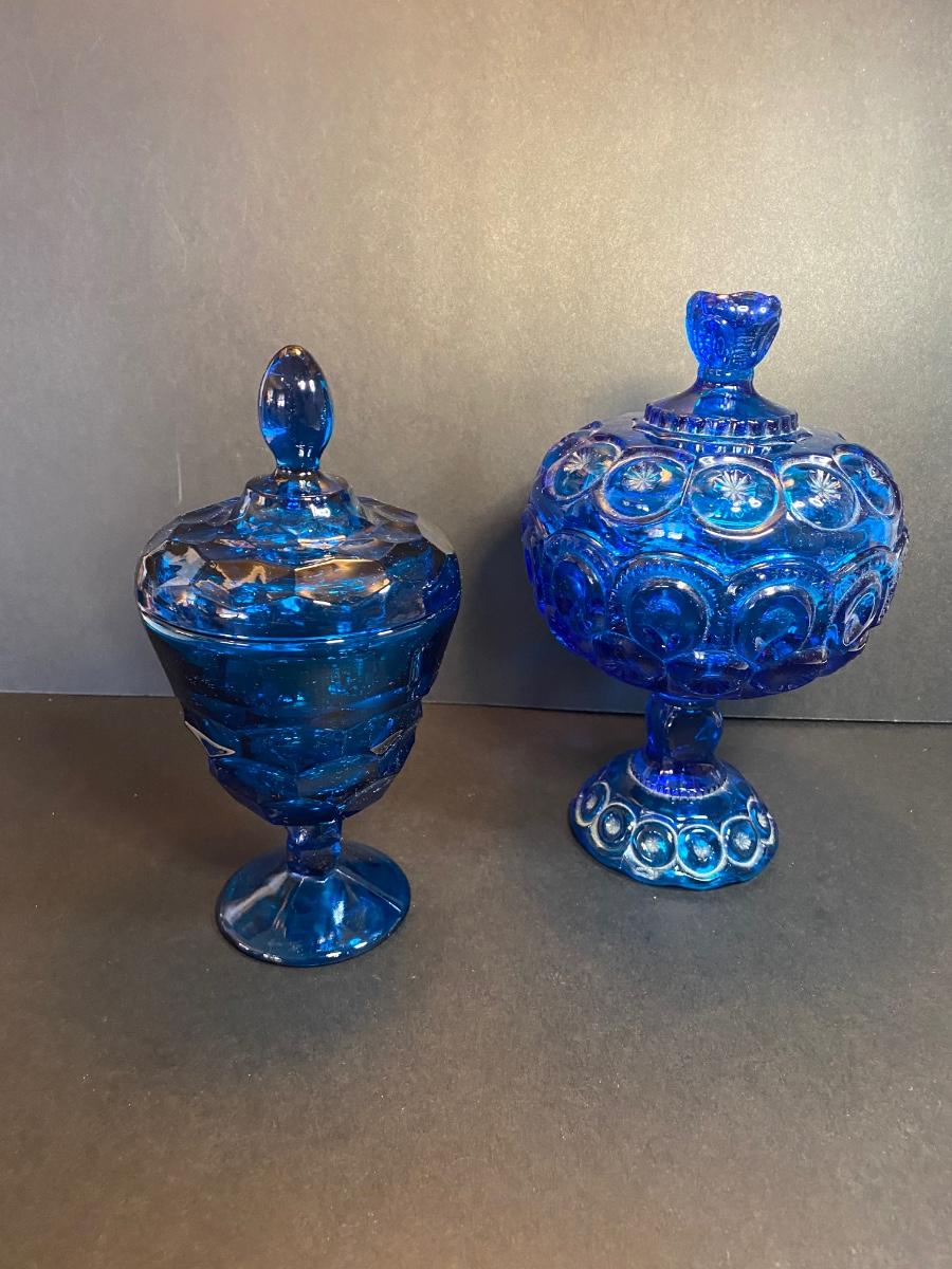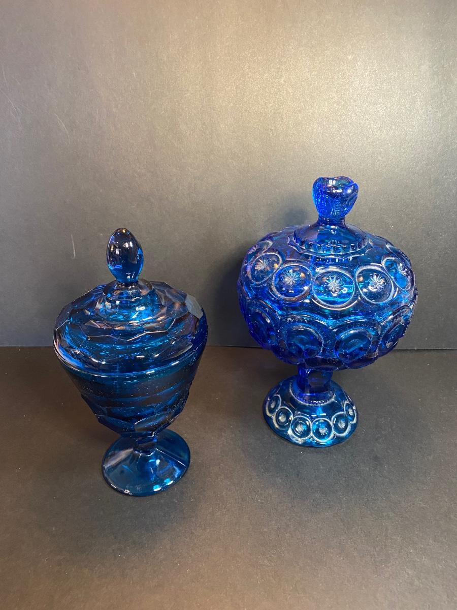 LOT 139C: Vintage Blue Pedestal Covered Candy Dishes