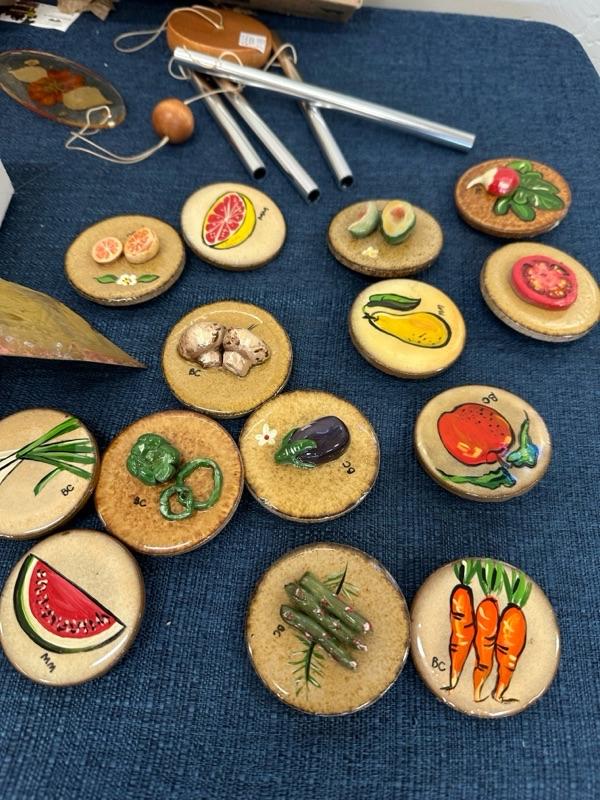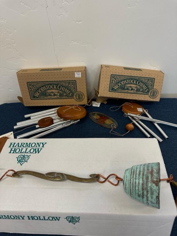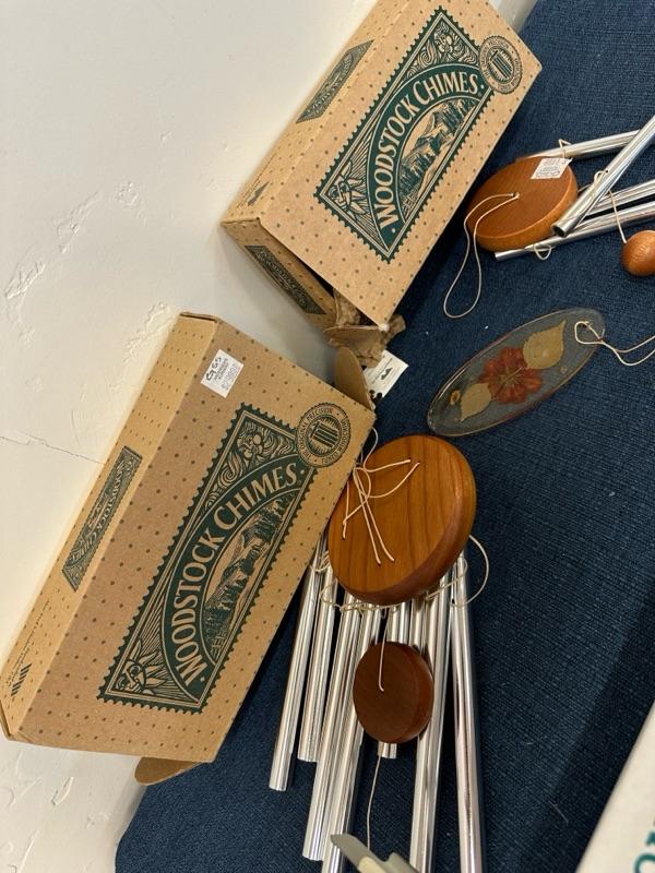 Lot 778 two Woodstock brand windchimes, one harmony, hollow, wind, chime, and ceramic refrigerator magnets