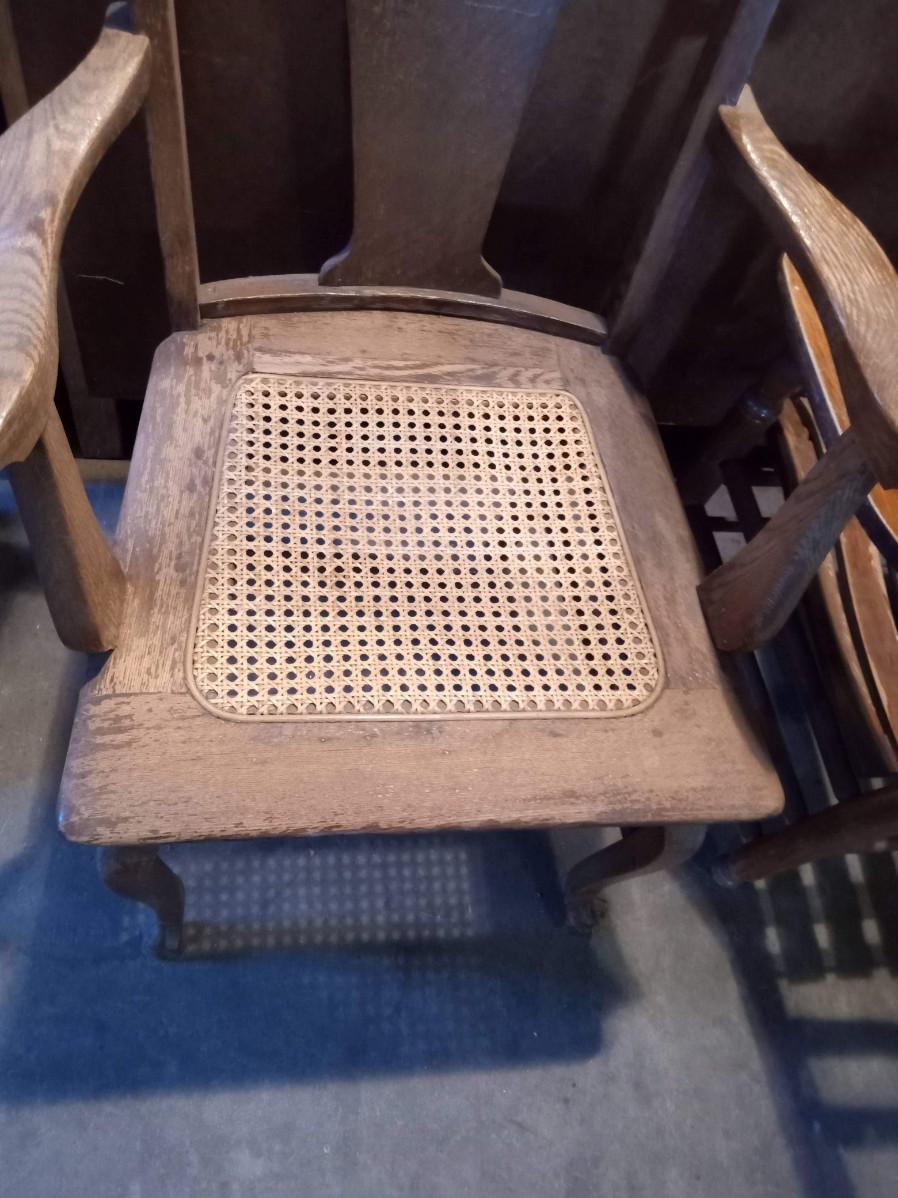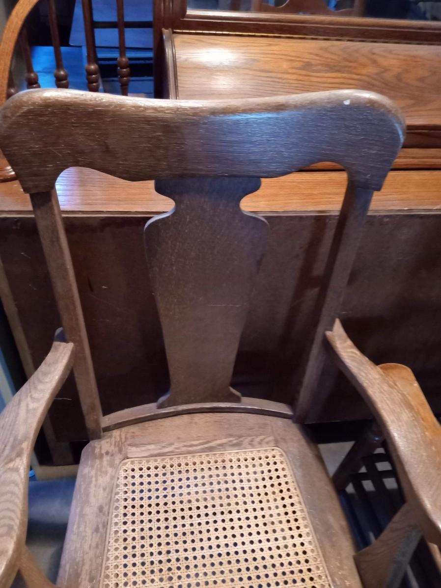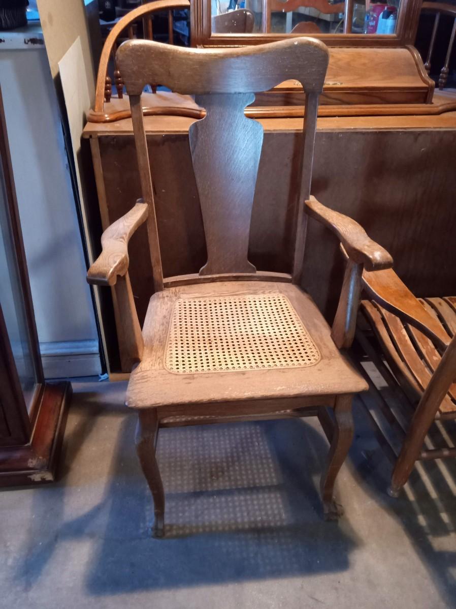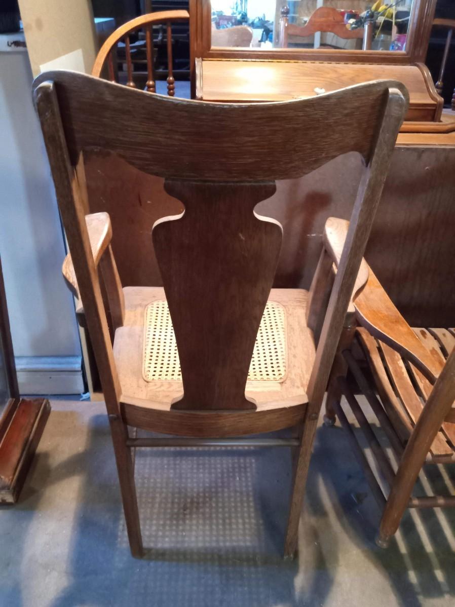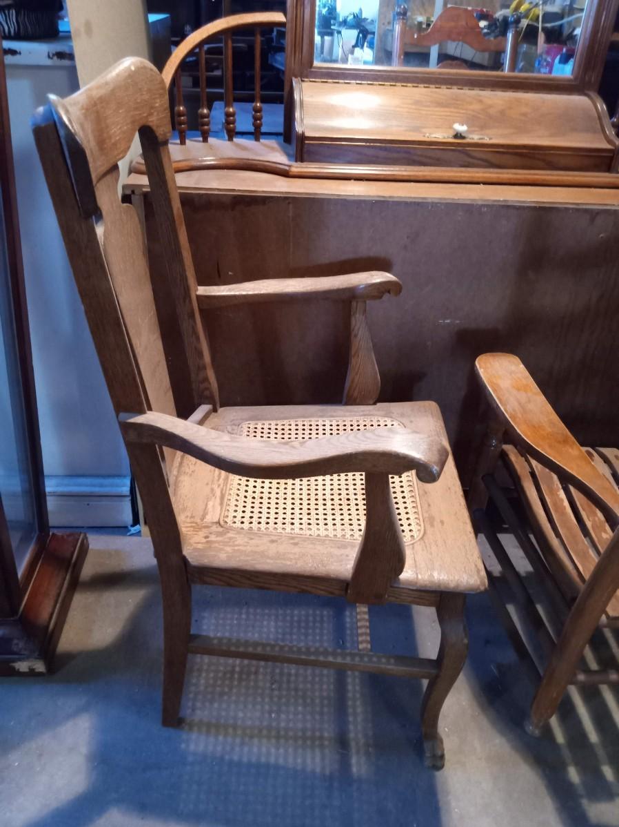 TWO WOODEN HAND CRAFTED CHAIRS GREAT TO RESTORE. TWO TIER CIRCULAR TABLE 21×22