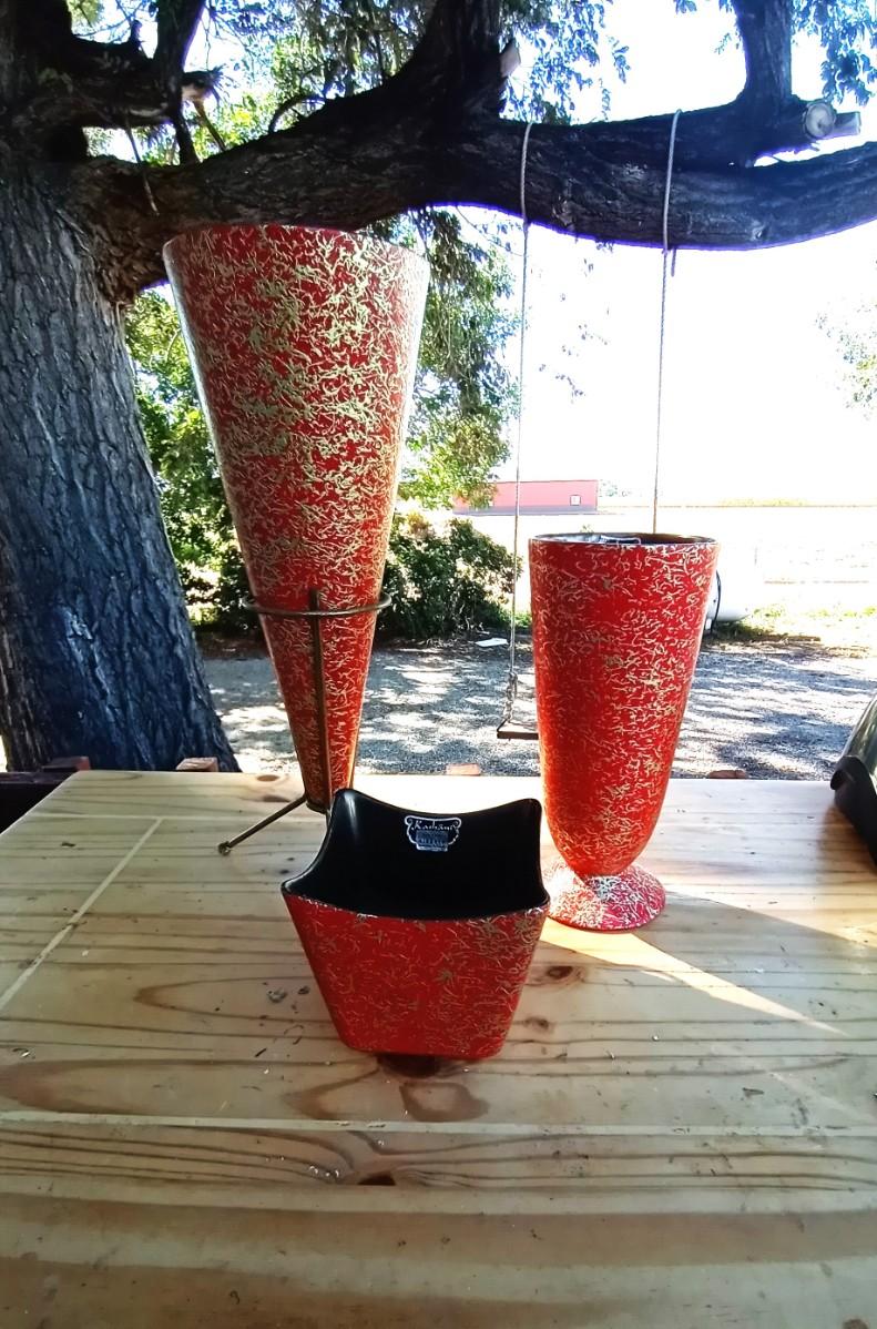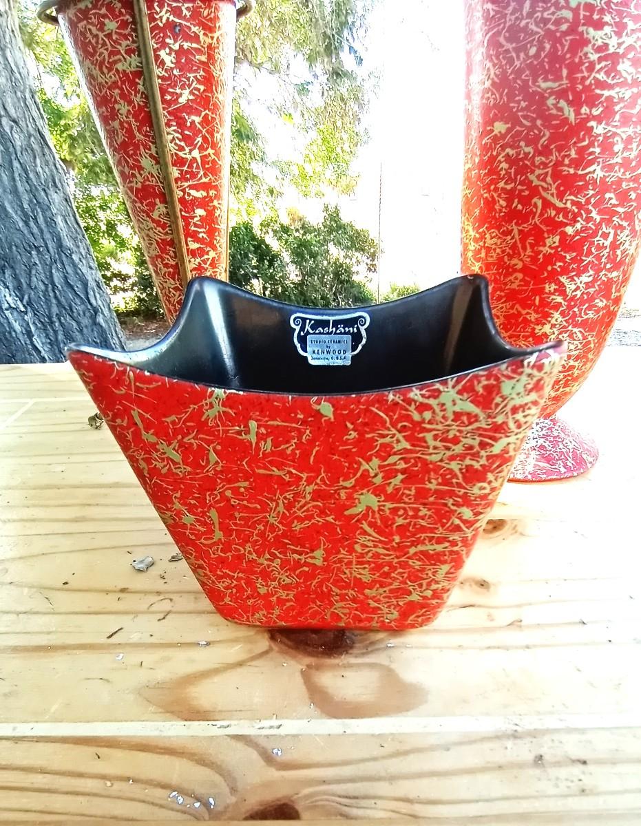 STUDIO CERAMICS "KASHANI" BY KENWOOD THREE PIECE VASE SET MEASURES APPROX. 14"-9"-4X4"