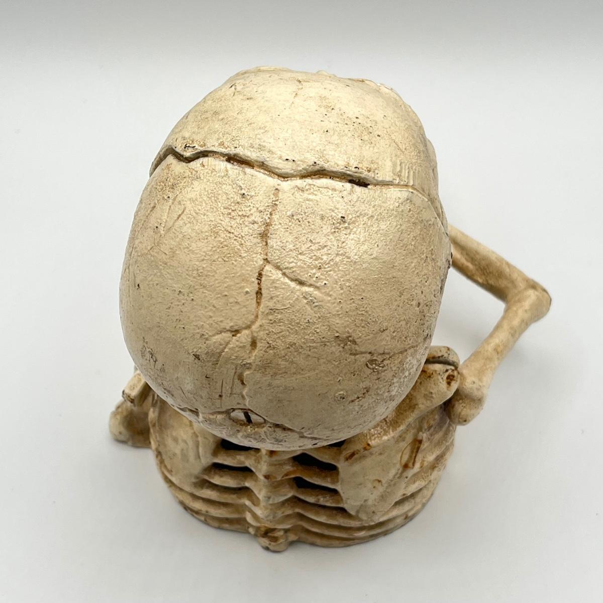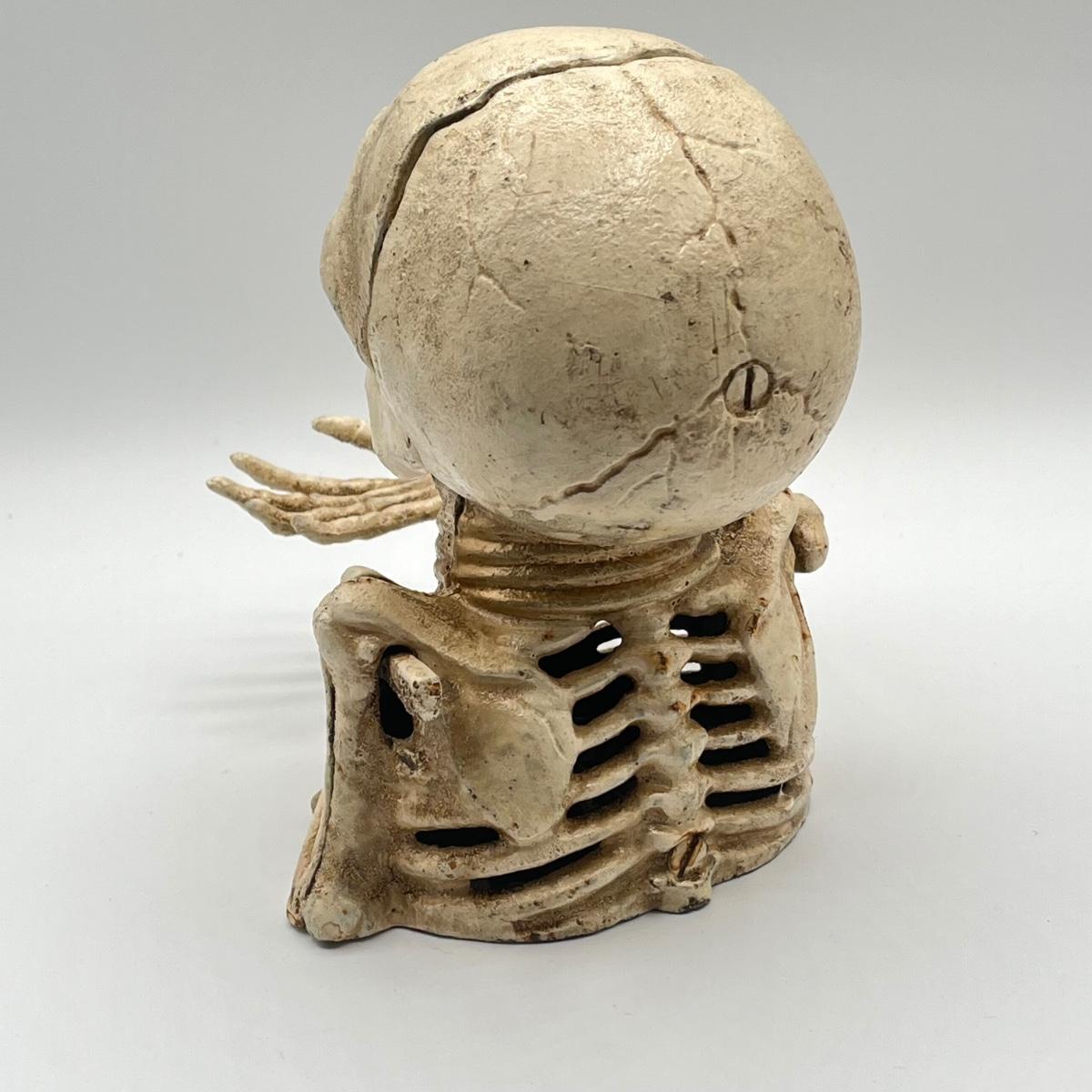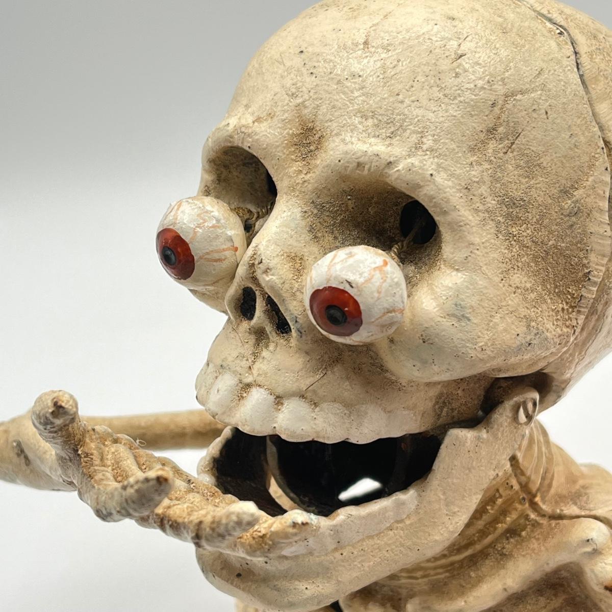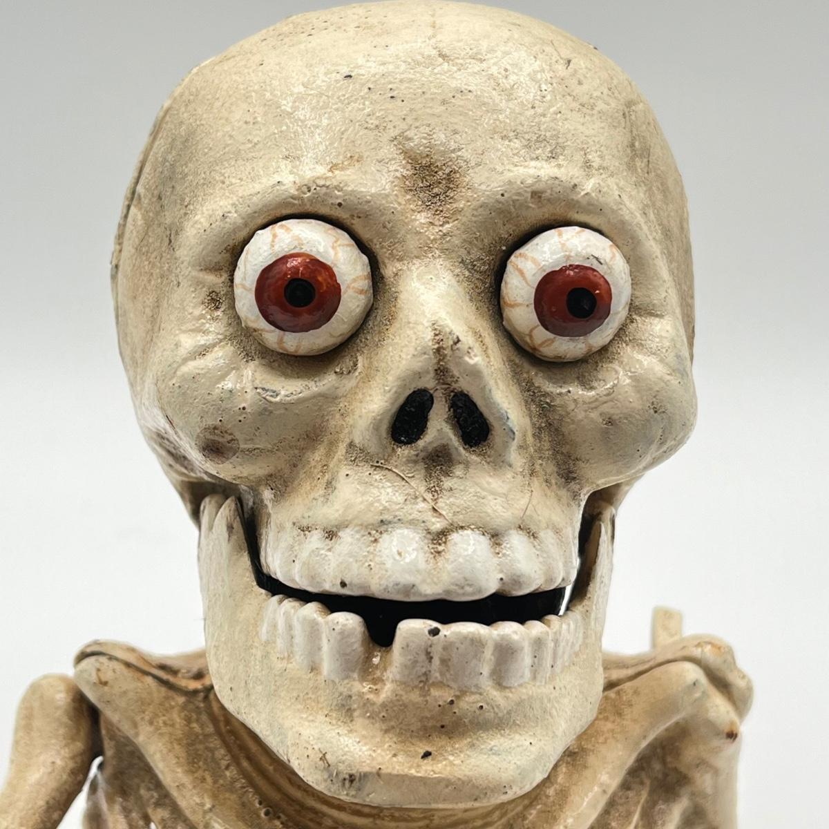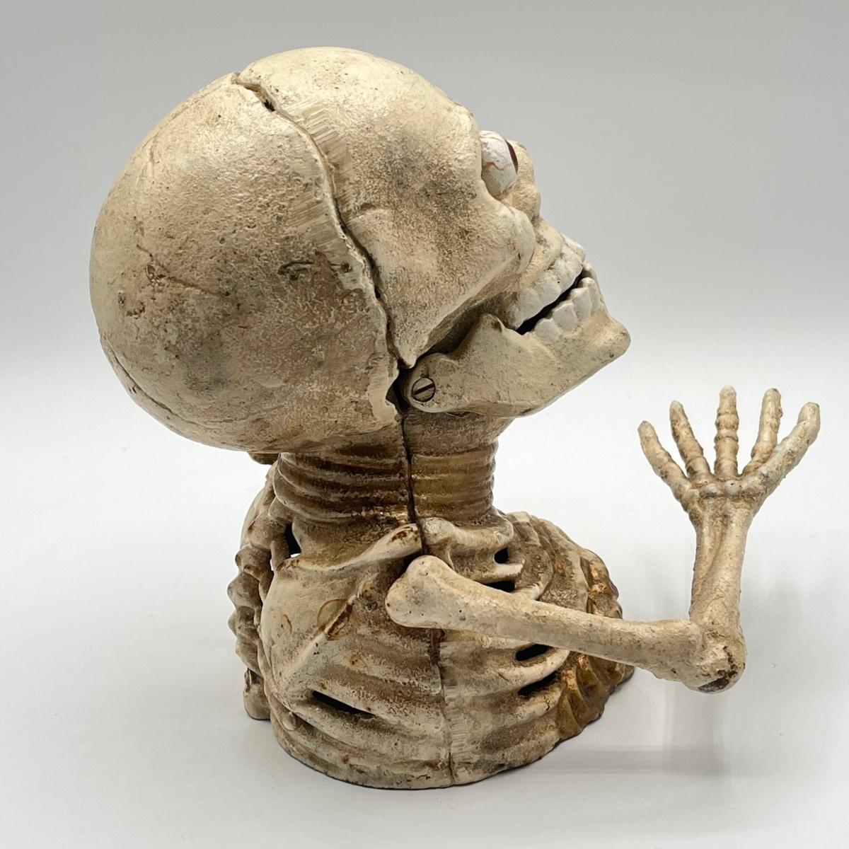 LOT 77F: Vintage 6.5" Cast Iron Mechanical Skeleton Bank - Popping Eyes Skull