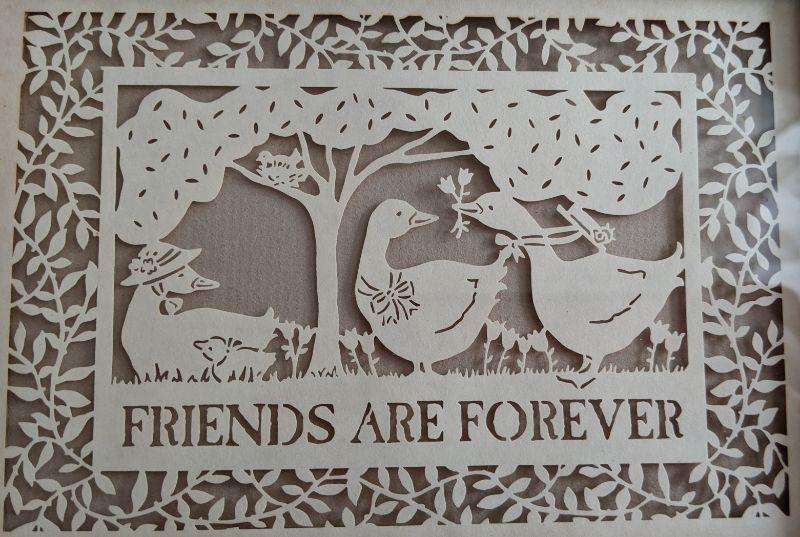 Lot# 77 s Friends are Forever Scherenschnitte Papercutting in wood frame