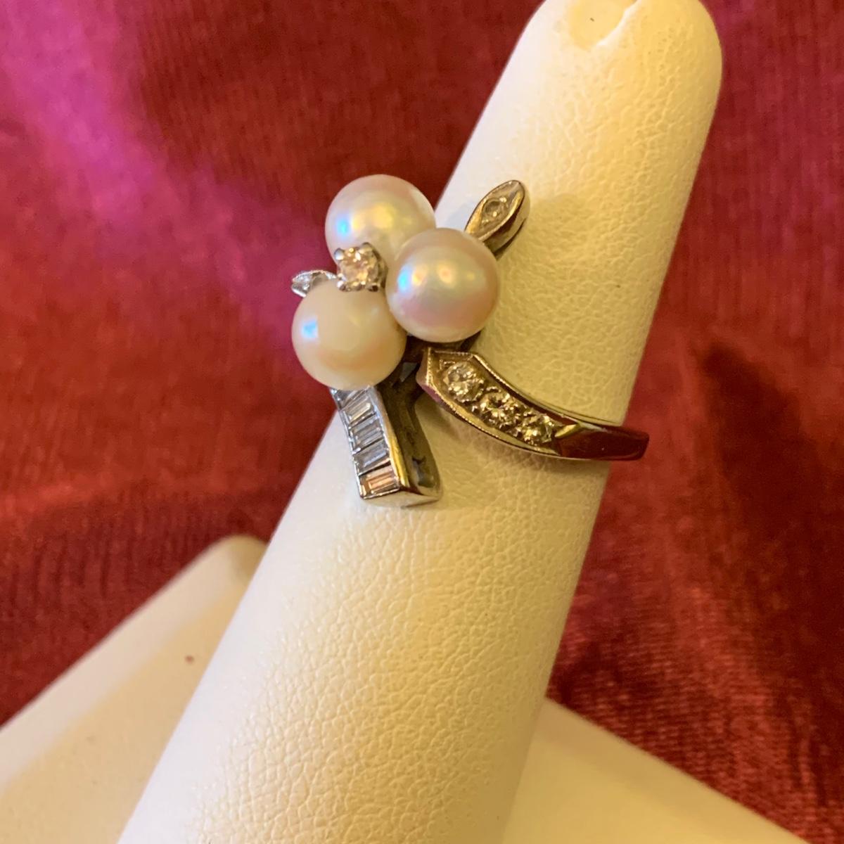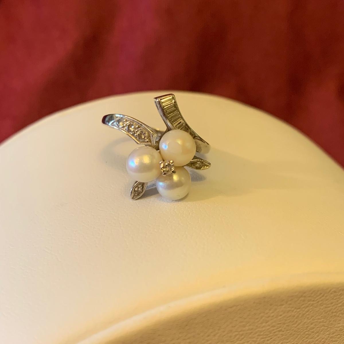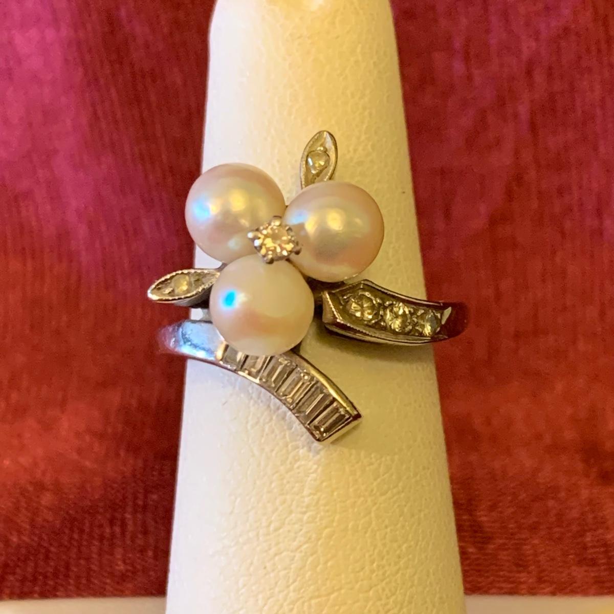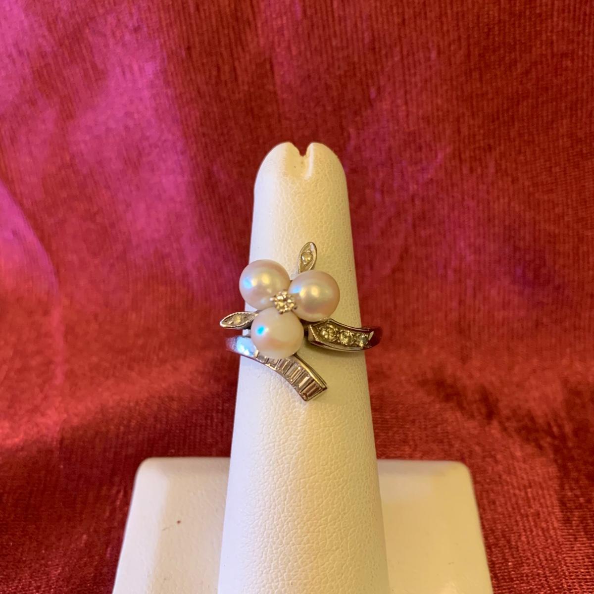 Lot 78: Genuine Pearl & Diamond 14k White Gold Ring: Tw 5.24g, Sz 5.5