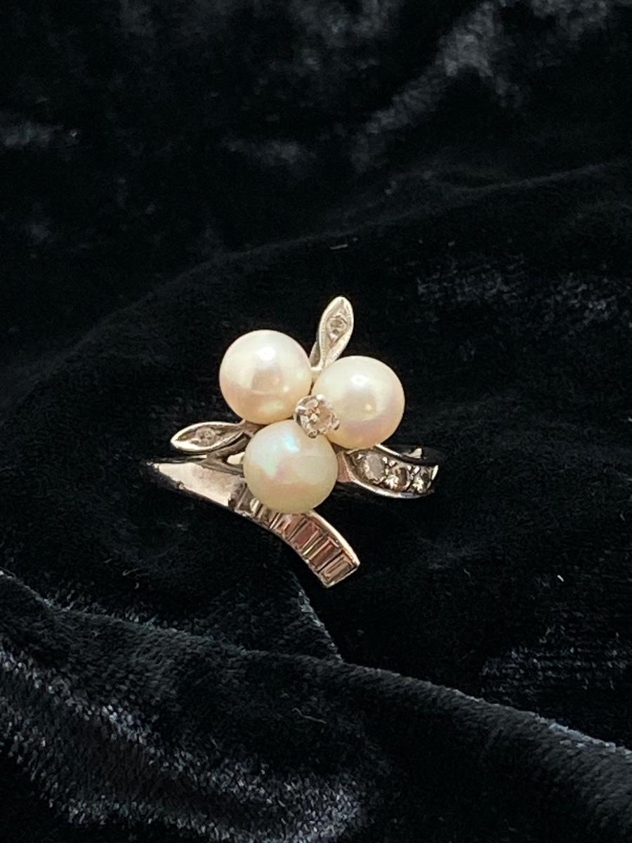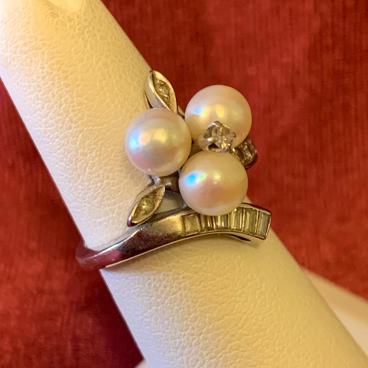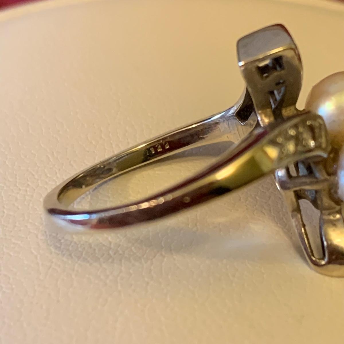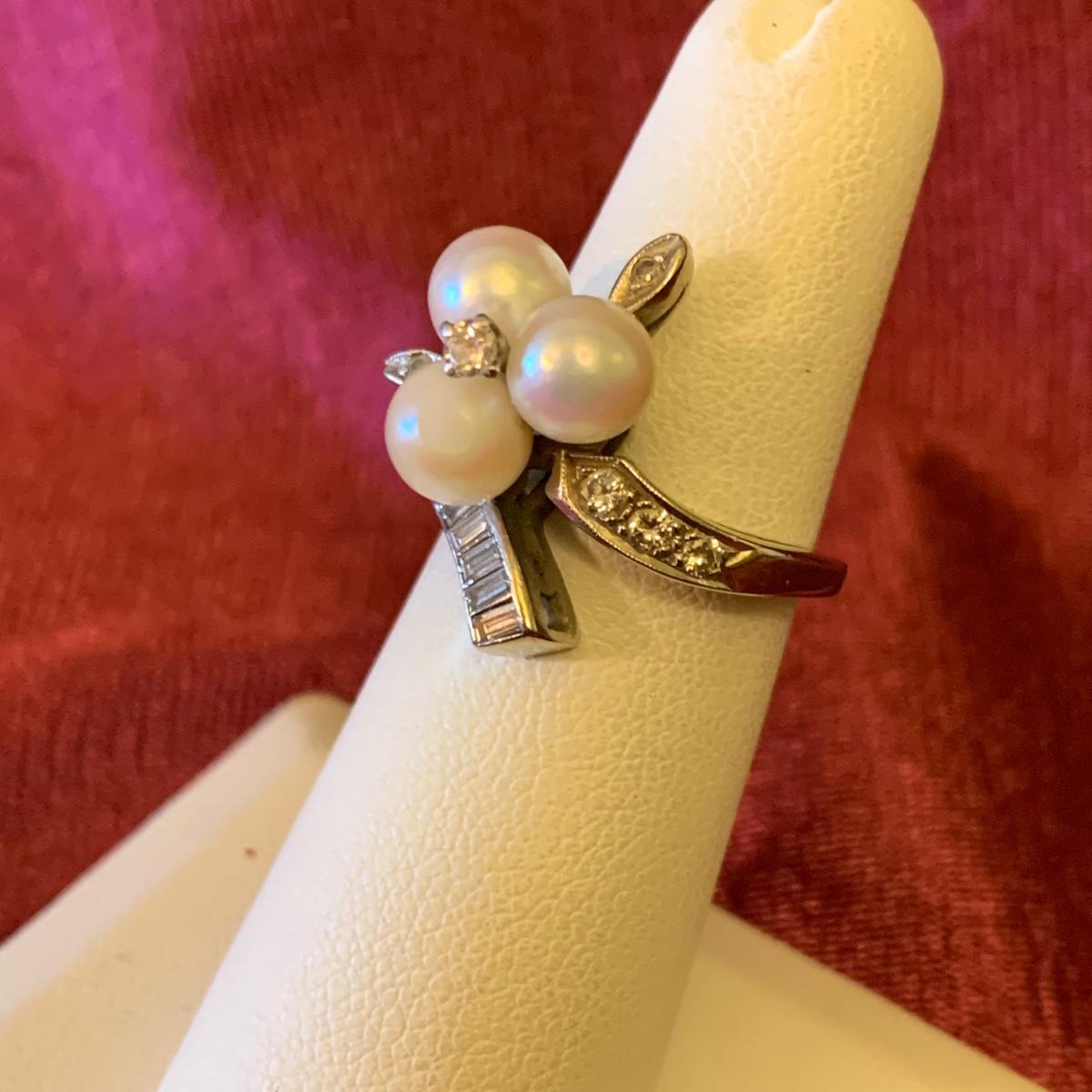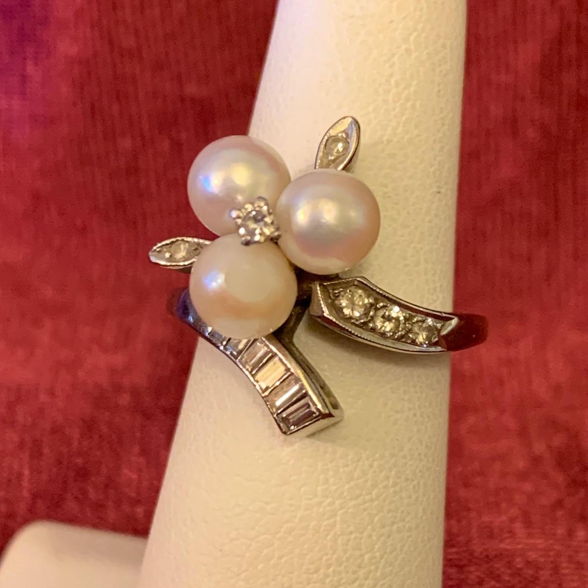 Lot 78: Genuine Pearl & Diamond 14k White Gold Ring: Tw 5.24g, Sz 5.5