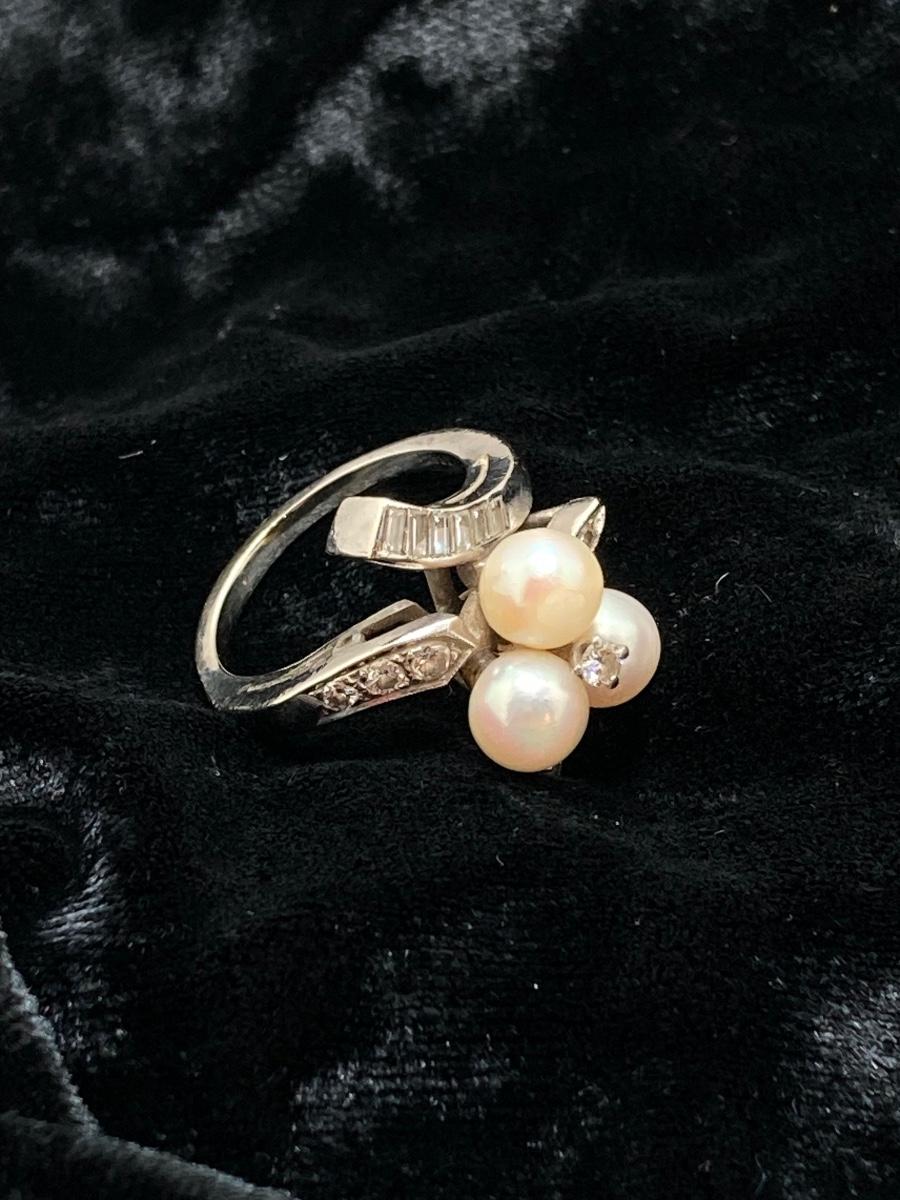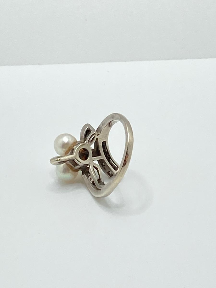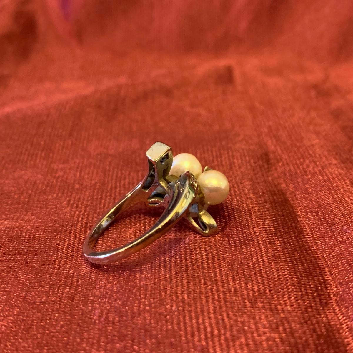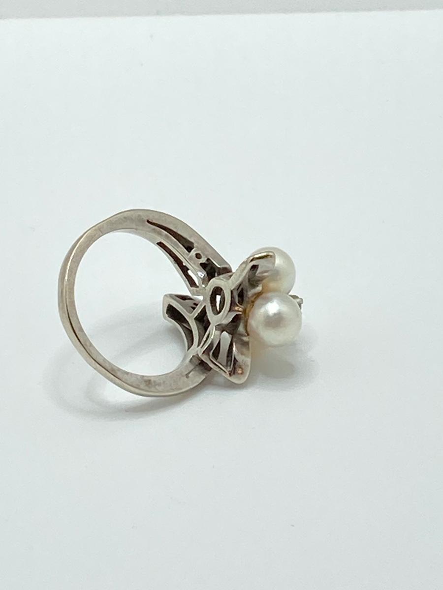 Lot 78: Genuine Pearl & Diamond 14k White Gold Ring: Tw 5.24g, Sz 5.5
