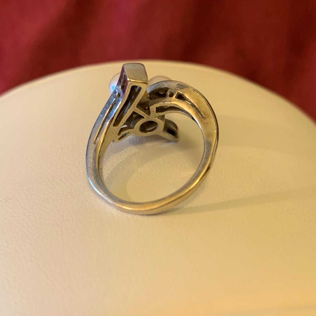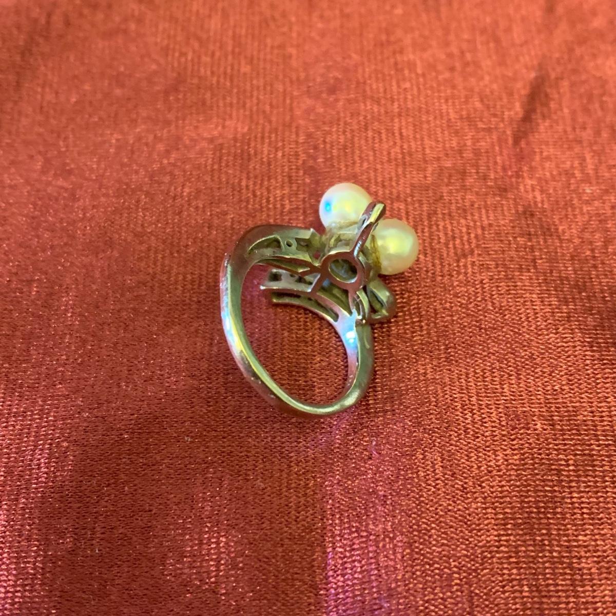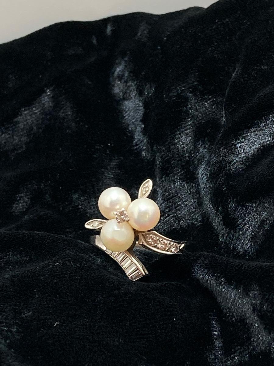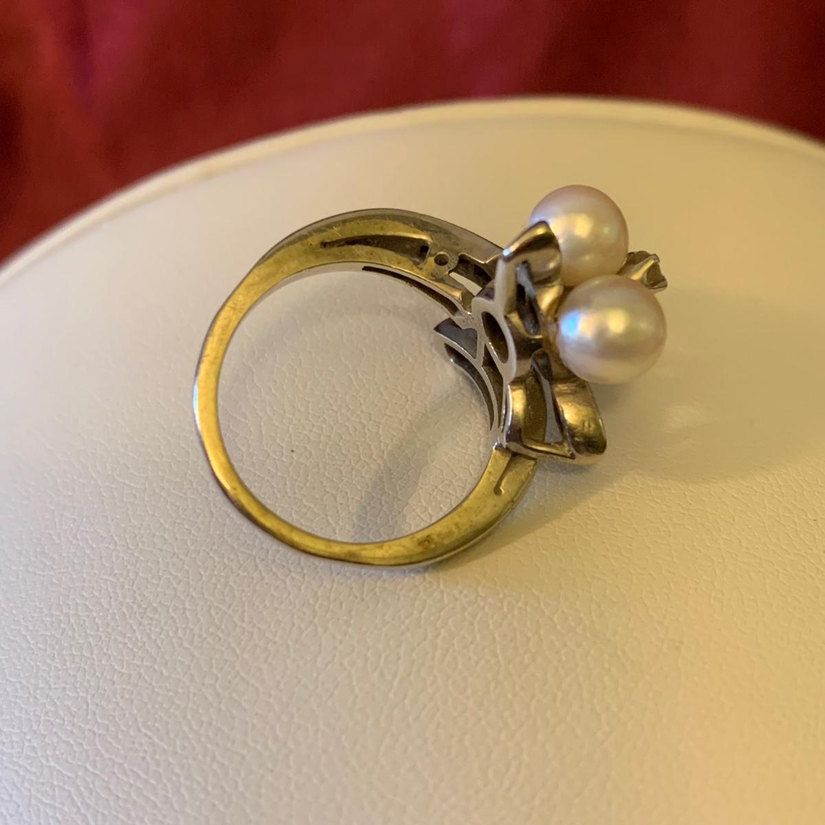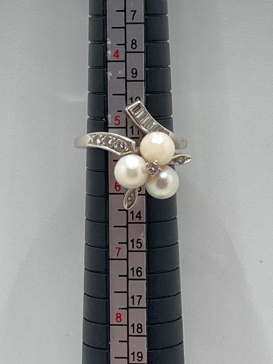 Lot 78: Genuine Pearl & Diamond 14k White Gold Ring: Tw 5.24g, Sz 5.5
