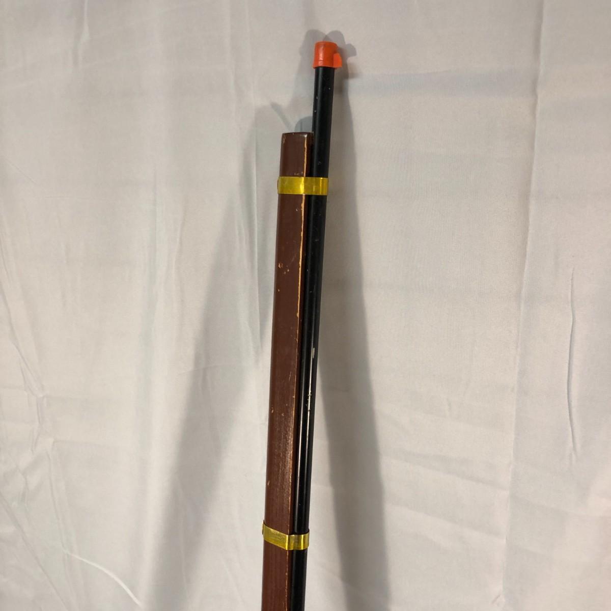 The Daisy rifle has been very well loved. It has a metal barrel and is about 29.5" long. The Kentuckian is in gently used condition and is made of wood and metal. It measures about 37.5" long. The Kentuckian was purchased at Ghost Town in the Sky which was a western themed amusement park in NC that operated from 1961-2002.